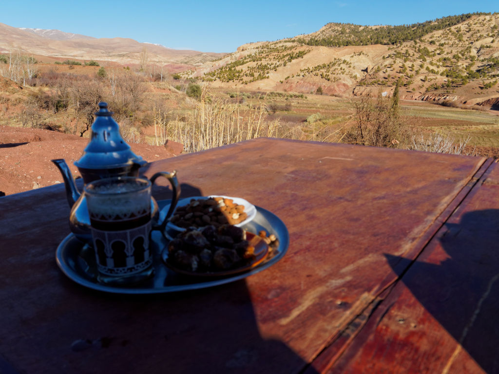 Je prends le thé sur la terrasse face à la vue. On est ici en montagne, à 1800m d’altitude et cela se sent car l’air est frais.