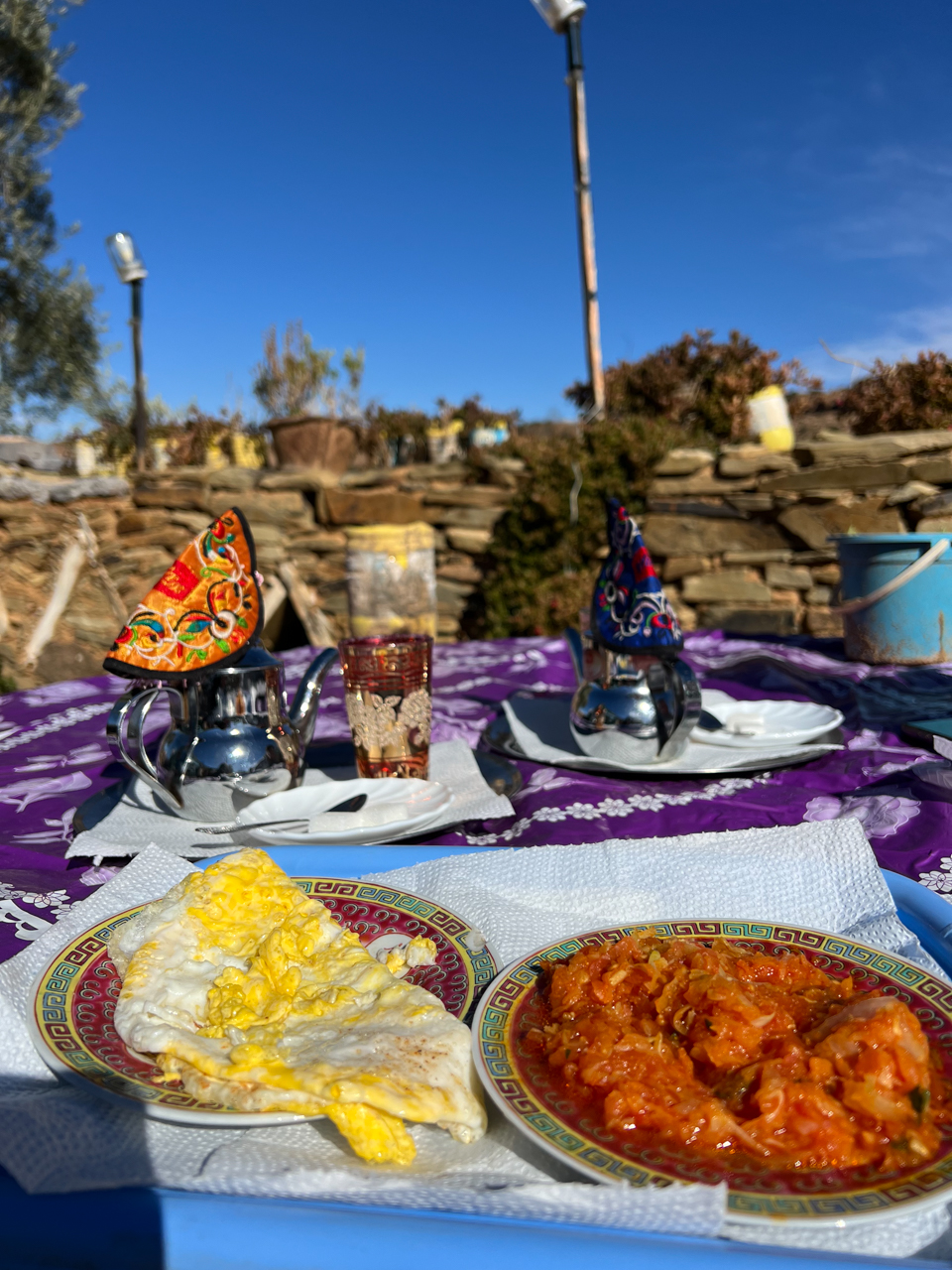Pour quelques Dirhams, ils nous concoctent une omelette avec des légumes, ce qui sera suffisant pour tenir jusqu’à Tafraout.