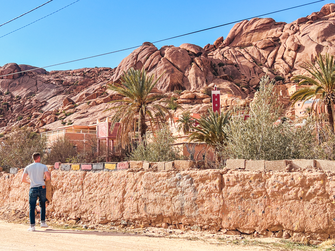 Au lieu de rejoindre directement notre hébergement, on décide de directement visiter les environs de Tafraout. On rejoint le petit village d’Aday, qui est posé au milieu des gros rochers arrondis qui ont fait la célébrité de Tafraout.