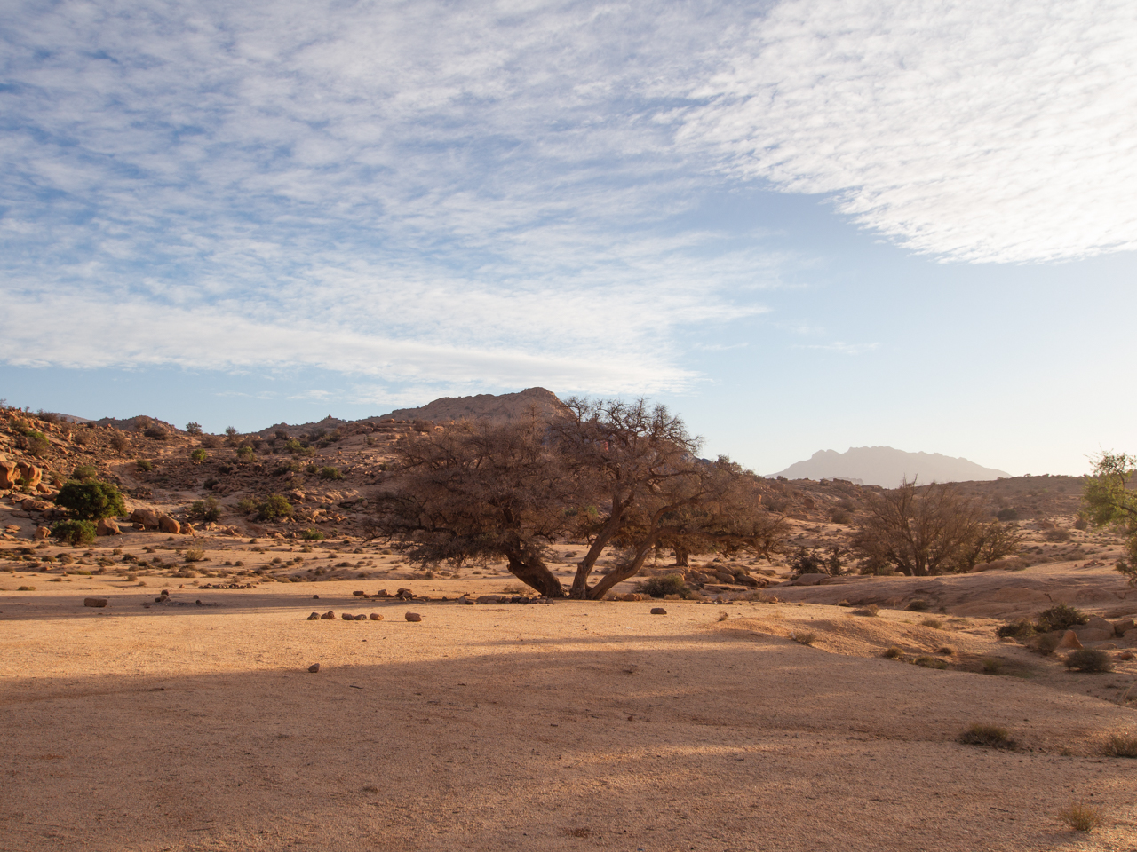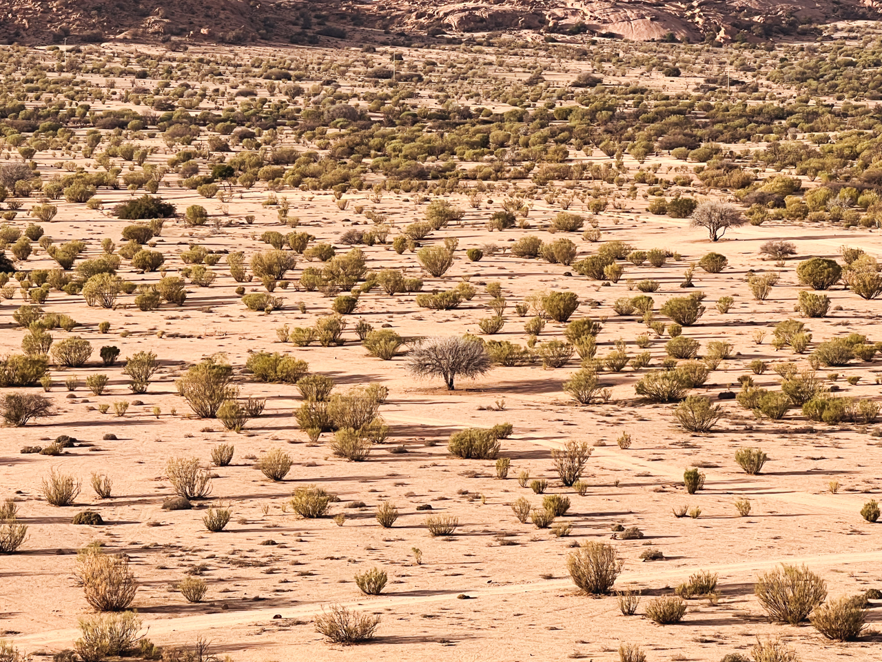 Sur le haut plateau, aride, les couleurs ocres sont mises en évidence par le soleil qui commence à descendre.
