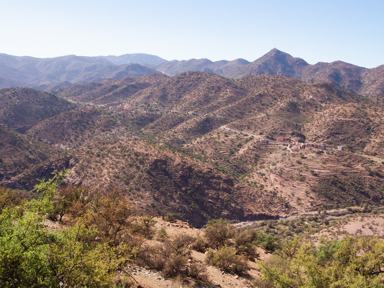 Les montagnes semblent avoir accueilli dans le passé une grande activité agricole. On voit des terrasses qui épouse le relief. Quelques villages subsistent mais on a bien l’impression que la plupart des terres sont abandonnées.