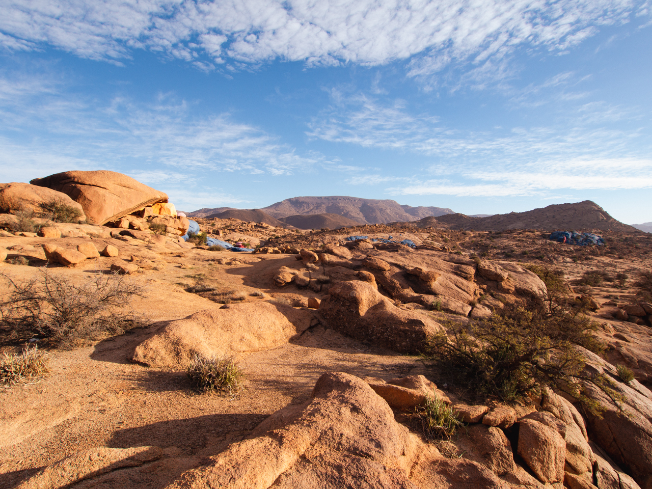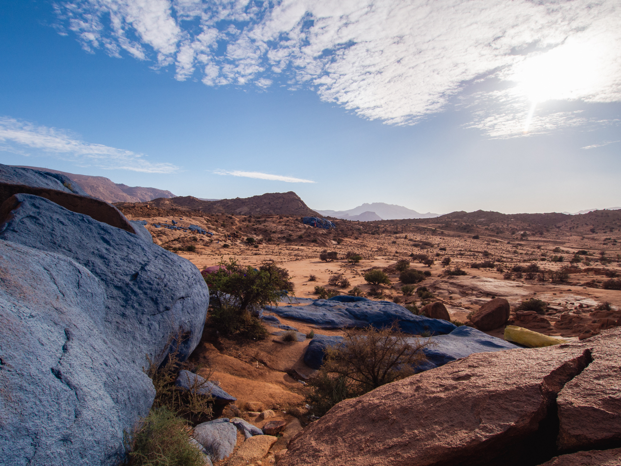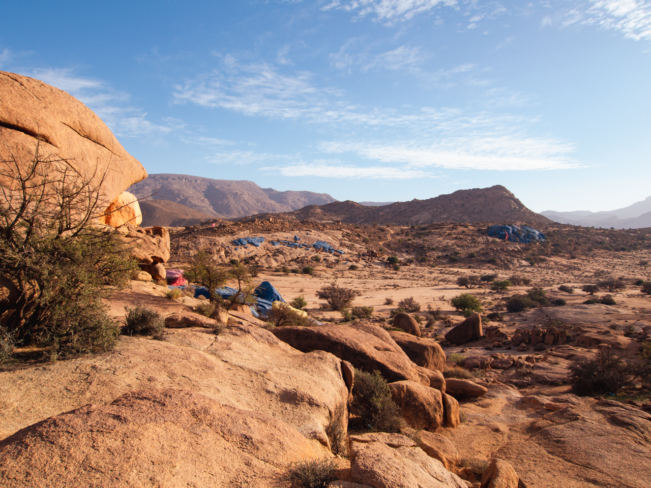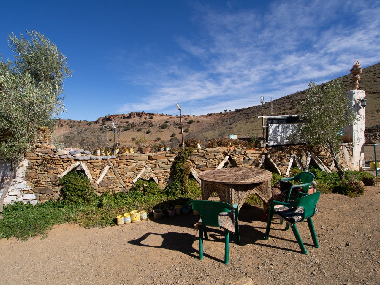 Le vent souffle fort et comme on est quand même à 1200 mètres d’altitude, il faut plutôt frais. On sort les doudounes que l’on avait mis avant de partir de Genève, elles seront bien utiles pour toutes les soirées dans l’Anti Atlas Marocain, malgré ce que l’on pourrait penser.