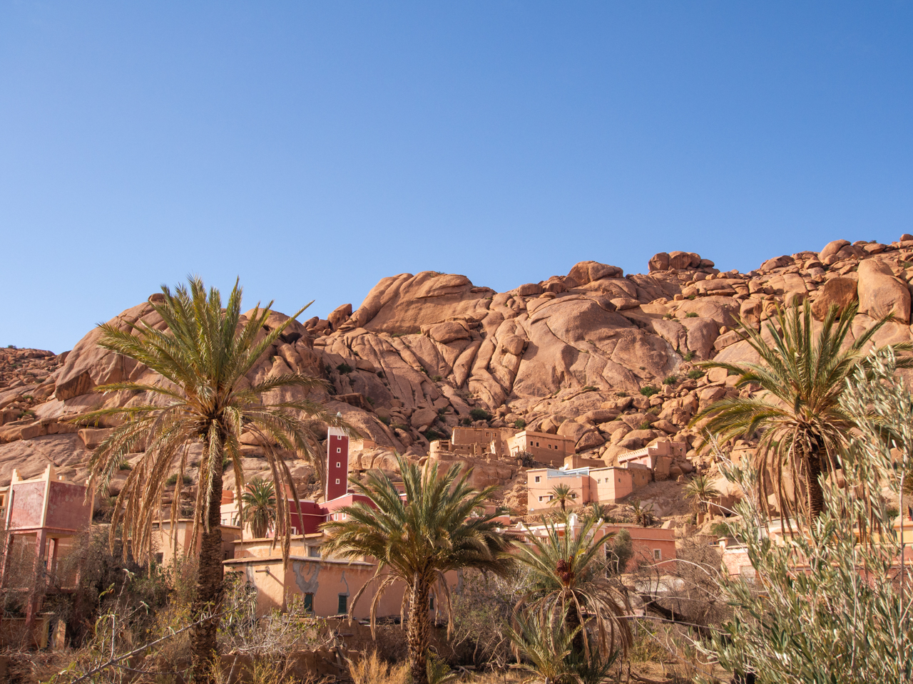 Ces blocs de granit semblent se trouver que dans le secteur de Tafraout car nous n’en avons pas vu ailleurs que dans cette vallée. Mais les habitants ont construit leurs maisons autour et le décor est superbe.
