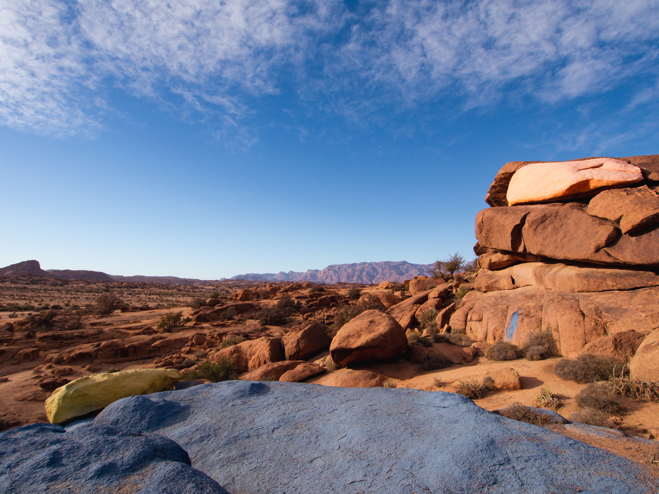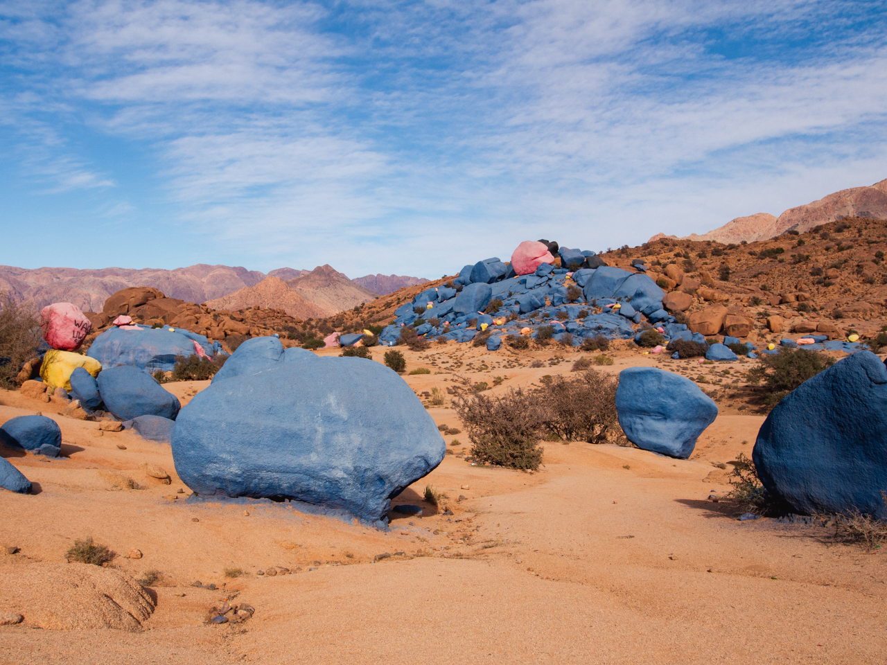 Certains rochers sont peints en différentes couleurs, non ce n’est pas un mirage, ce n’est pas le soleil qui nous tape sur la tête. C’est le résultat du travail initié par un artiste belge en 1984, depuis chaque année des habitants repeignent les rochers, qui attirent beaucoup de touristes et sont devenus une attraction de la région.