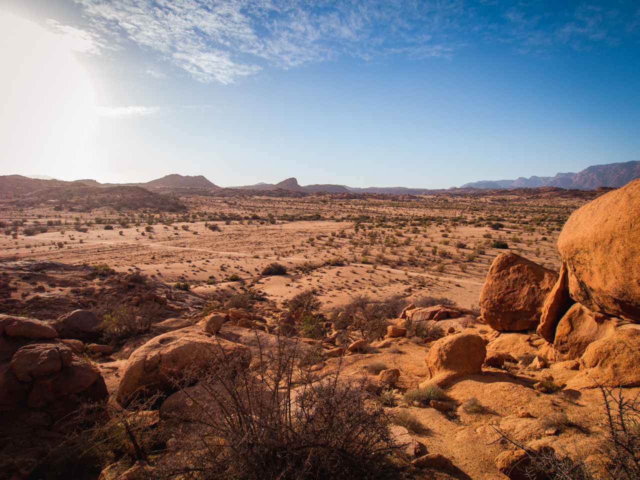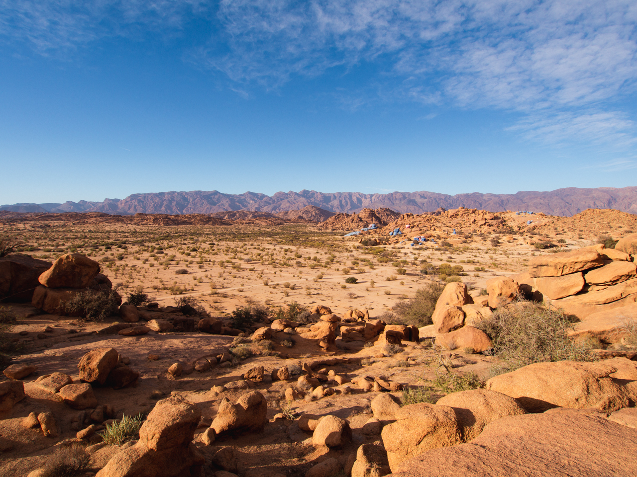 Une semaine sur les routes de l’Anti Atlas, au départ d’Agadir, station balnéaire baignée par la grandeur de l’océan atlantique et un climat parfait en fin d’année qui nous mènera découvrir les paysages désolés et les oasis le long des routes sinueuses du dernier grand massif montagneux avant les étendues sableuses du Sahara. Région moins touristique du Maroc, on y trouve un rythme plus lent et des relations plus simple sans pression touristique comme on peut avoir dans d’autres régions plus visitées du Nord du pays. Cette région est parfaitement adaptée à un road trip comme on l’a fait, quel plaisir : nous avons parfois roulé des heures sans croiser un seul véhicule alors que le paysage grandiose change si rapidement sous nos yeux. Première étape entre Agadir et Tafraout, sur les routes de l'Anti Atlas.