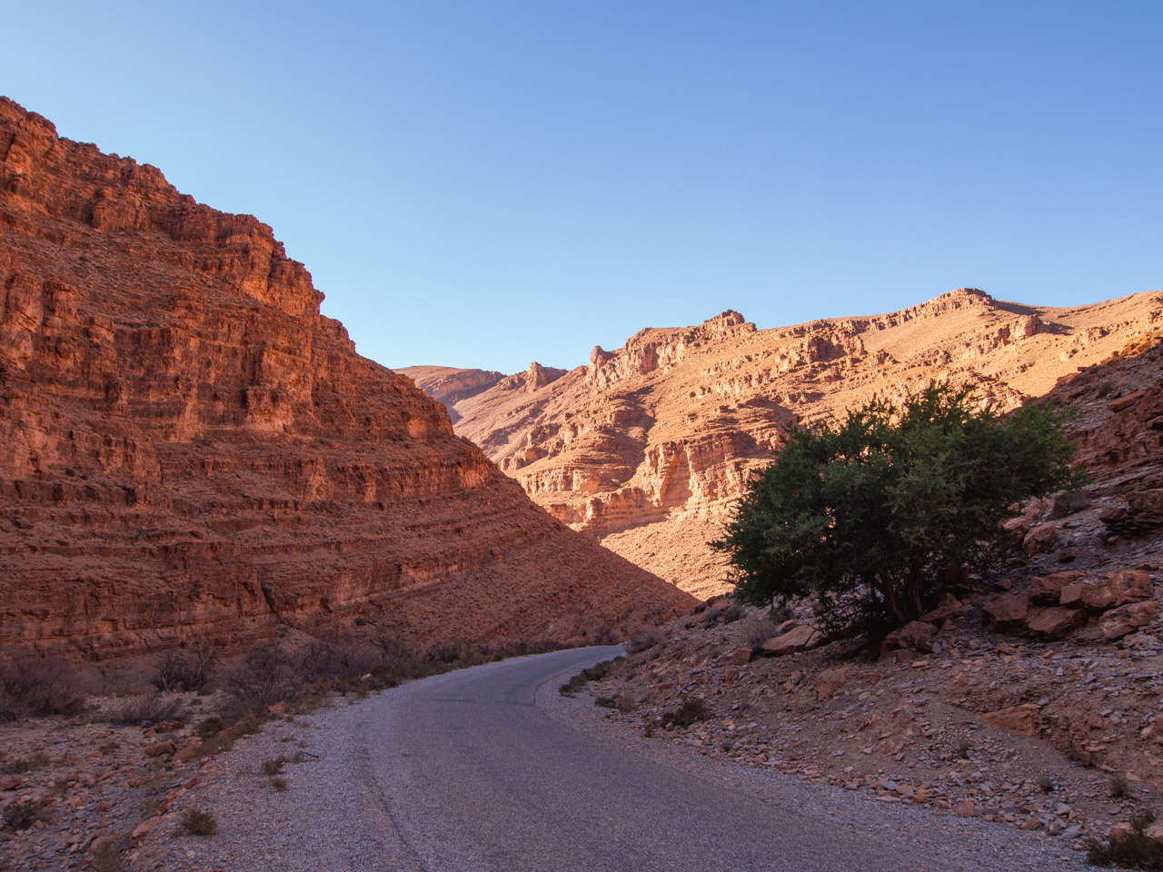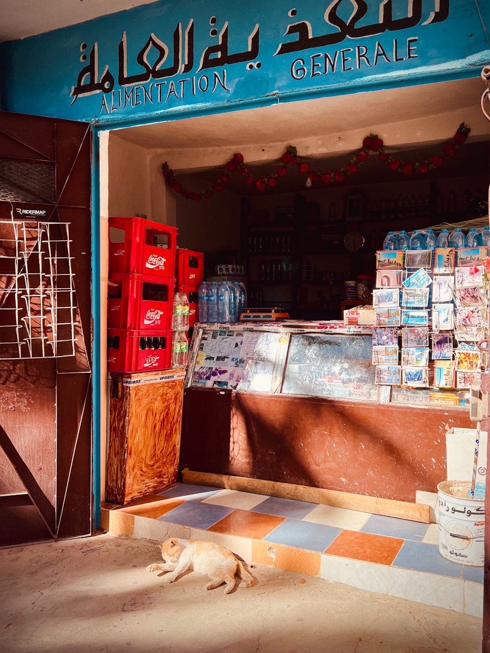 On rentre maintenant sur Tafraout. En passant devant l’auberge, on salue Abdou qui discutait avec son voisin. Il nous demande si on peut le déposer au marché en ville avec lui. Un sacré personnage avec une facilité de communication assez incroyable. Sur la route nous discutons avec lui de l’activité touristique dans la région mais aussi on lui demande pourquoi toutes les cultures en terrasse semblent abandonnées. Il regrette l’exode rural mais le comprend mais c’est sur que ces régions ont perdu beaucoup de population et sont à l’écart du développement du pays. C’est le jour de marché à Tafraout, on en profite pour faire des achats de souvenirs avec les incontournables babouches de Tafraout puis on mange chez Nour, un restaurant chez l’habitant vraiment succulent que l’on recommande. C’est notre dernière soirée à Tafraout, lors de notre diner, on est assis à côté d’une table avec un couple de presque 80 ans qui sont venus avec leur Peugeot 5008 depuis la France pour visiter le Sud du pays. Une belle soirée de discussion, c’est aussi ça les voyages, ces rencontres fortuites avec d’autres voyageurs, c’est ce qui donne cette saveur que l’on apprécie tant. Tafraout nous a comblé, on pense que l’on aurait pu avoir une dernière journée pour vraiment prendre le temps d’apprécier les environs du village, en louant un vélo par exemple afin de laisser un peu la voiture au parking, mais nous avons décidé de changer nos plans pour le lendemain et prévoyons un lever matinal pour rejoindre le désert.