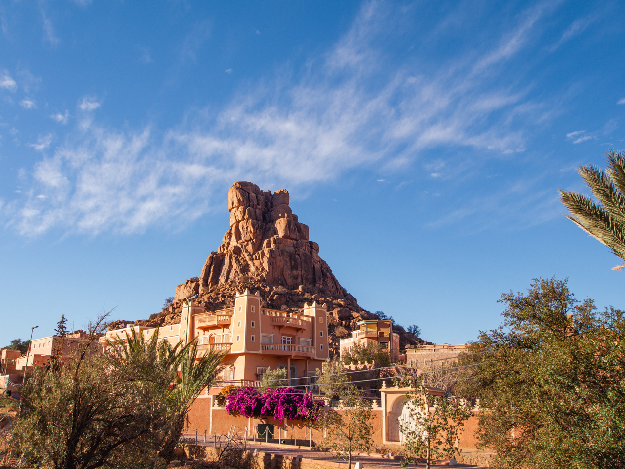 En partant de Tafraout, on traverse d’abord le village de Aguerd-Oudad qui est connu pour son étrange rocher qui surplombe les toits et qui a été surnommé le chapeau de Napoléon à cause de sa forme