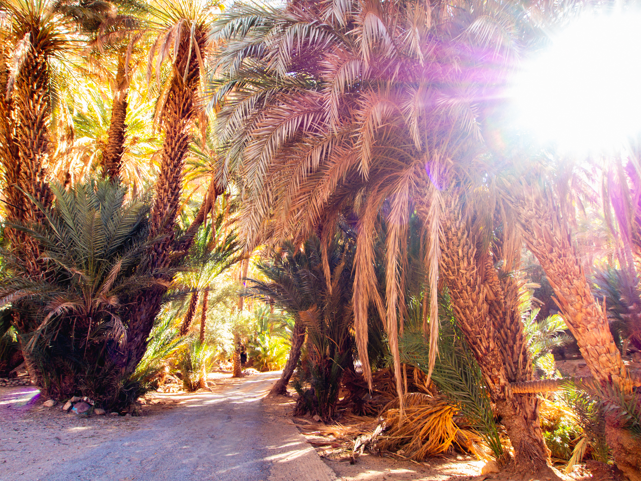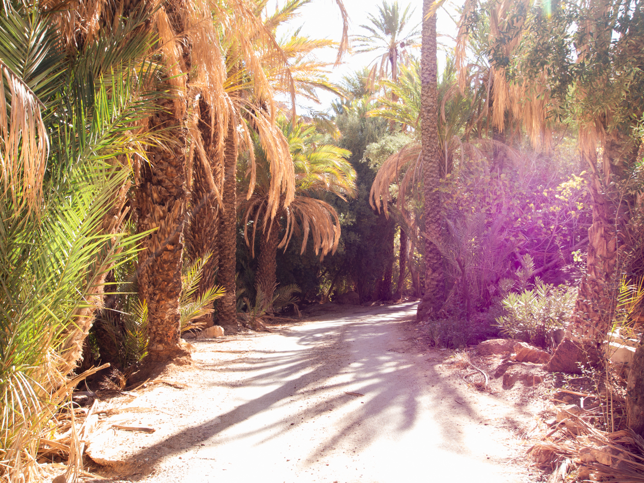 On souhaite parcourir la palmeraie à pieds, on ne veut pas trop conduire aujourd’hui après la longue journée sur la route d’hier.