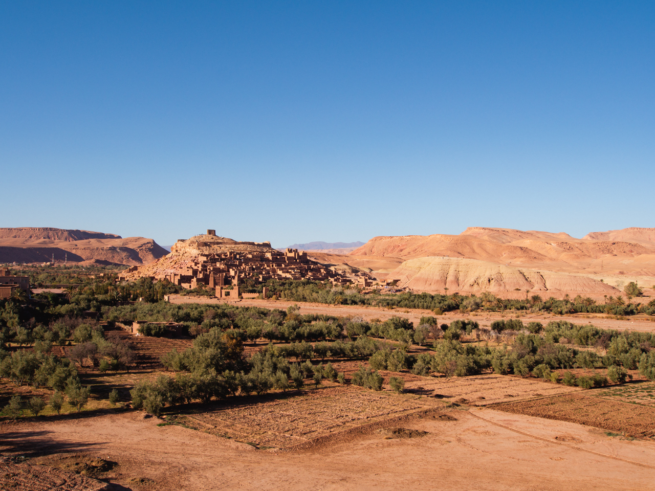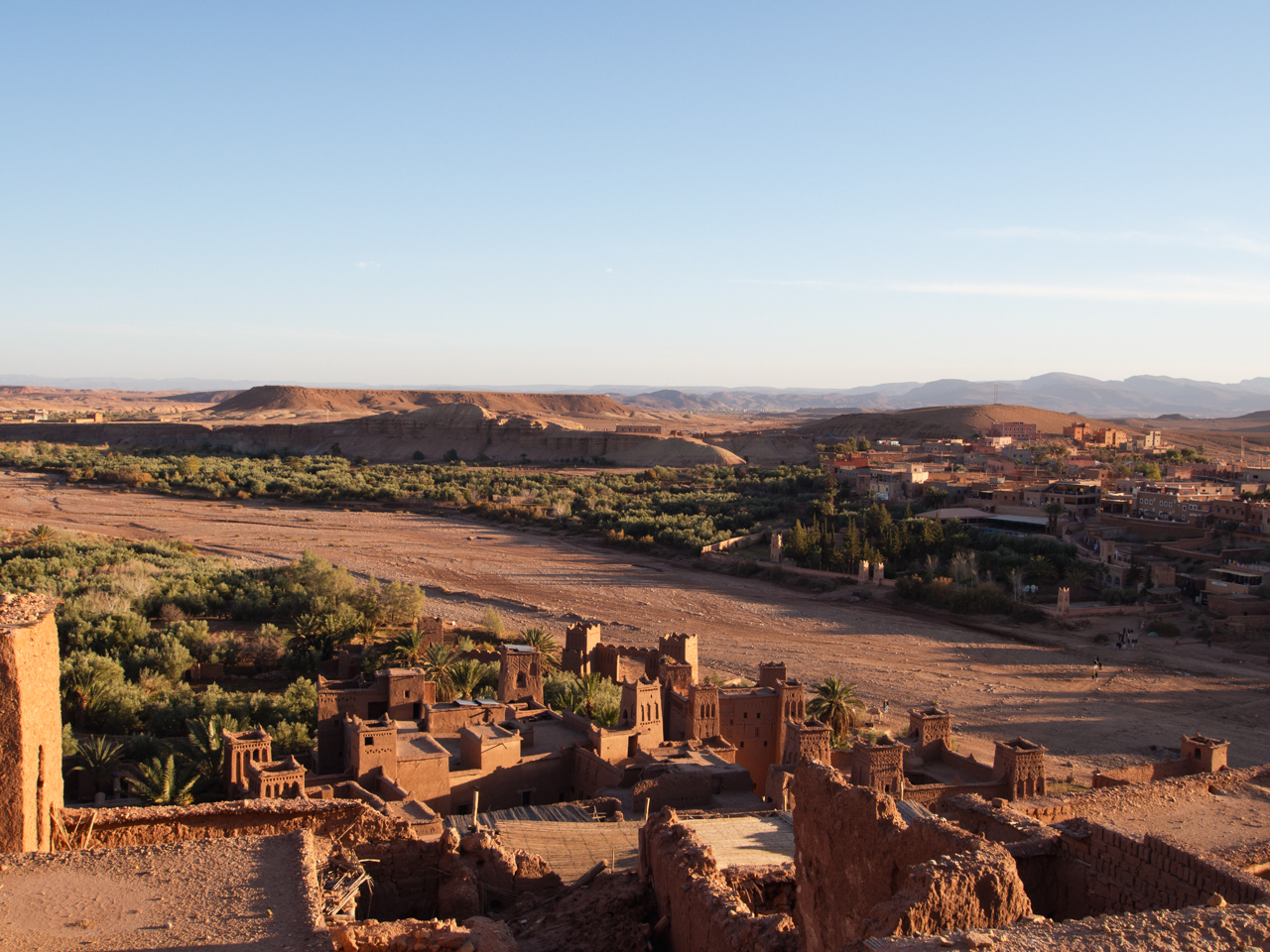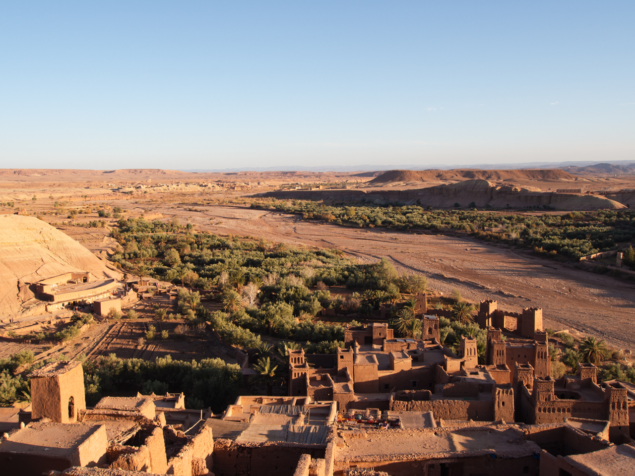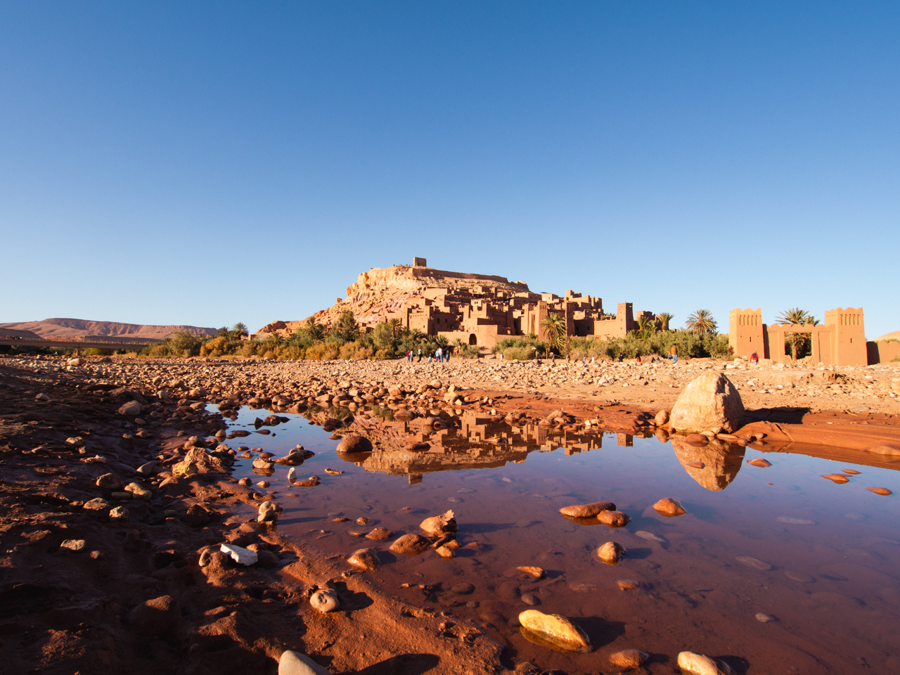Depuis Foum Zguid, nous remontons la route de Ouarzazate jusqu’à la plus belle kasbah du pays, celle d’Ait Benhaddou. Un édifice architectural unique et monumental, installé au bord d’une rivière qui fait partie des lieux touristiques les plus visités du Sud du pays.