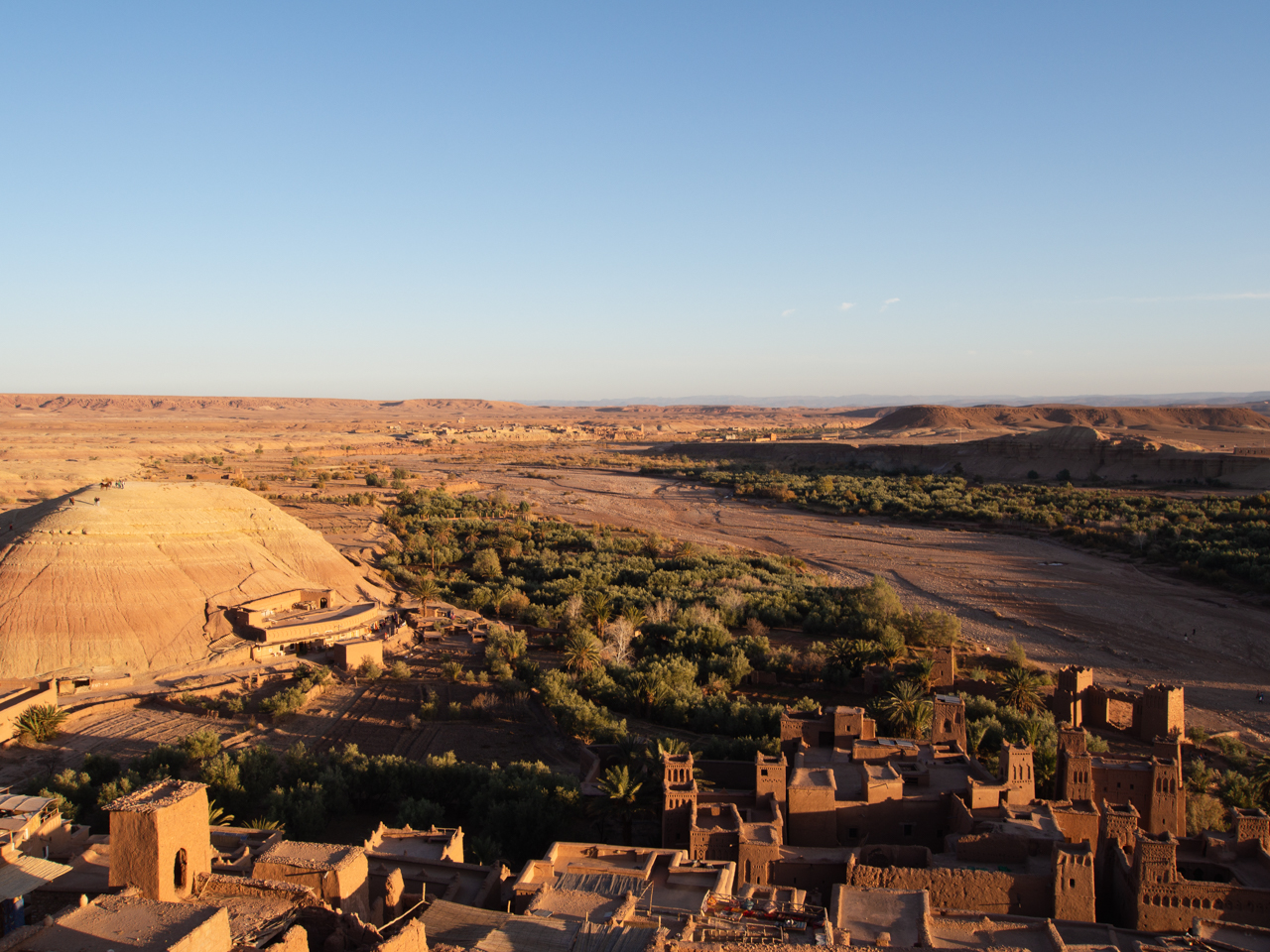 Encore une belle journée sur les routes du Maroc, qui a commencé dans les dunes du désert de sable et qui fini dans une pension sur la route de l’Océan, après la visite d’Ait Benhaddou, ça a été intense.
