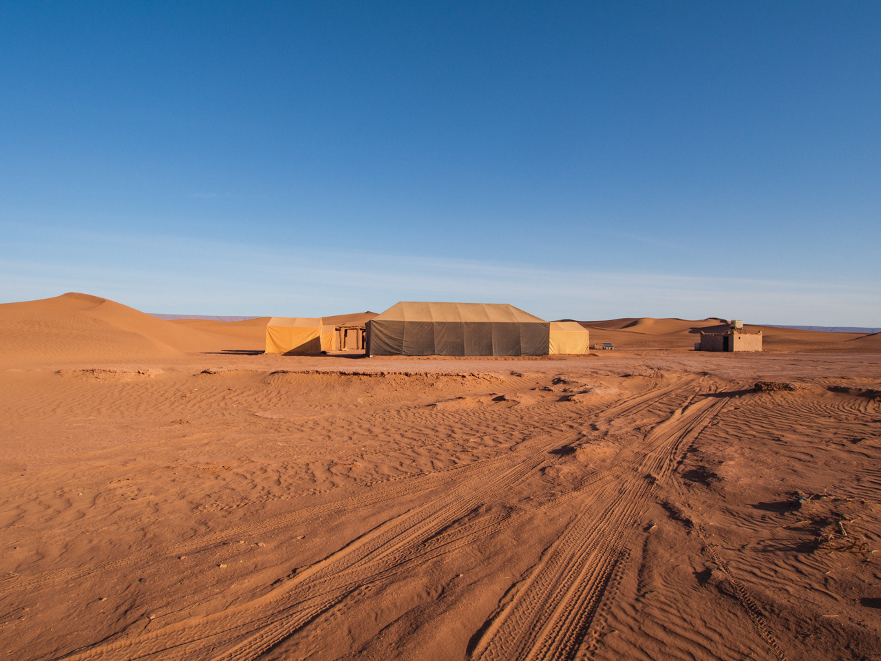 Mis à part ces deux endroits, nous avons toujours réservé au jour le jour et nous avons trouvé de la place à chaque fois. L’offre est abondante et très abordable dans le Sud du Maroc. Nous avons environ payé une vingtaine d’euro par nuit, avec parfois le petit déjeuner inclus, mais la chambre est spartiate. Il y a une salle de bains attenante mais il n’y a pas de chauffage, parfois une climatisation, donc il faut bien se couvrir. Dans le bivouac du désert, il est encore plus froid. Les toilettes sont partagées mais on a été surpris de la propreté des lieux.