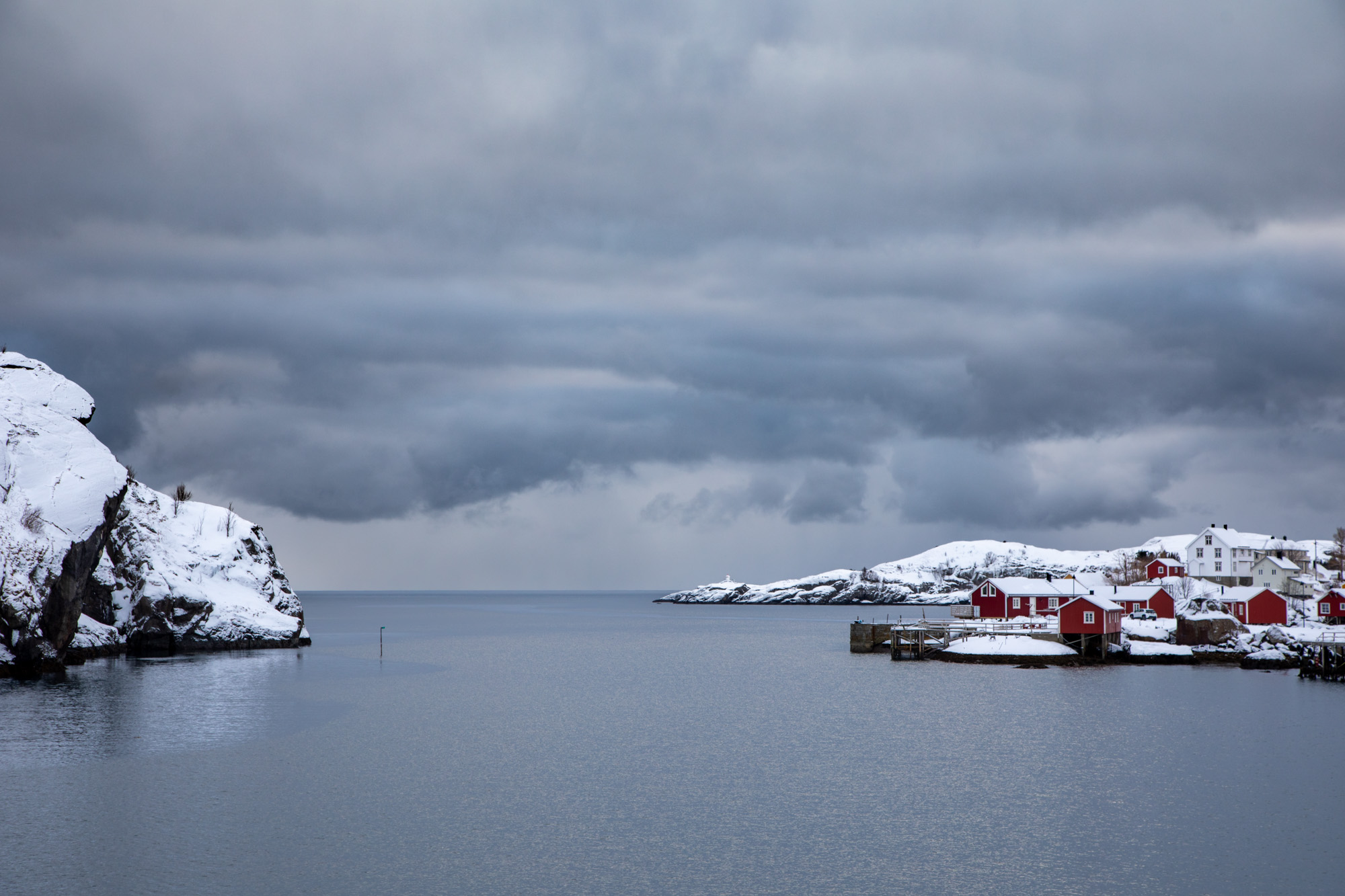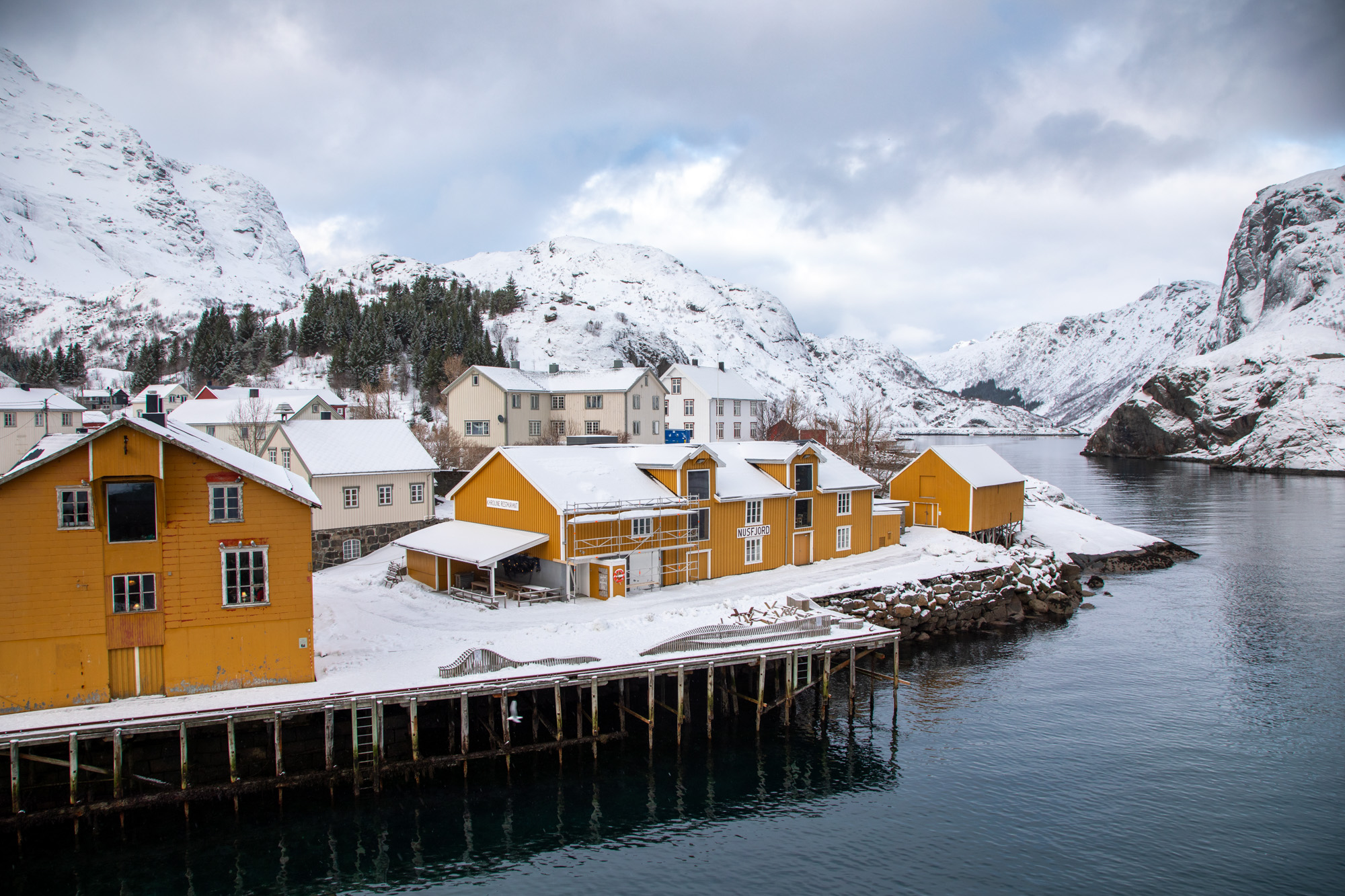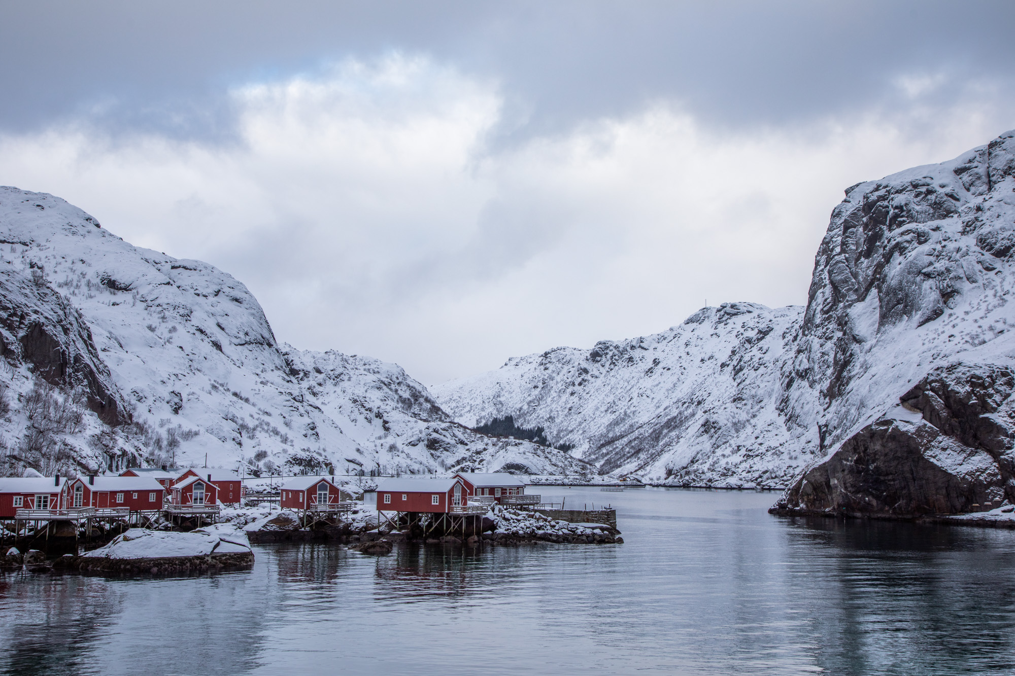 On arrive au Nusfjord en longeant la mer qui s’est frayée un passage très étroit au coeur de la montagne, au loin on peut voir le village restauré avec ses maisons rouges qui accueillent les touristes. C’est un village de carte postale, il eut été un temps ce village était un grand centre de pêche, il est aujourd’hui un vestige de ce passé glorieux, complètement dédié au tourisme qui peut d’imaginer la vie dans les Lofoten il y a très longtemps.