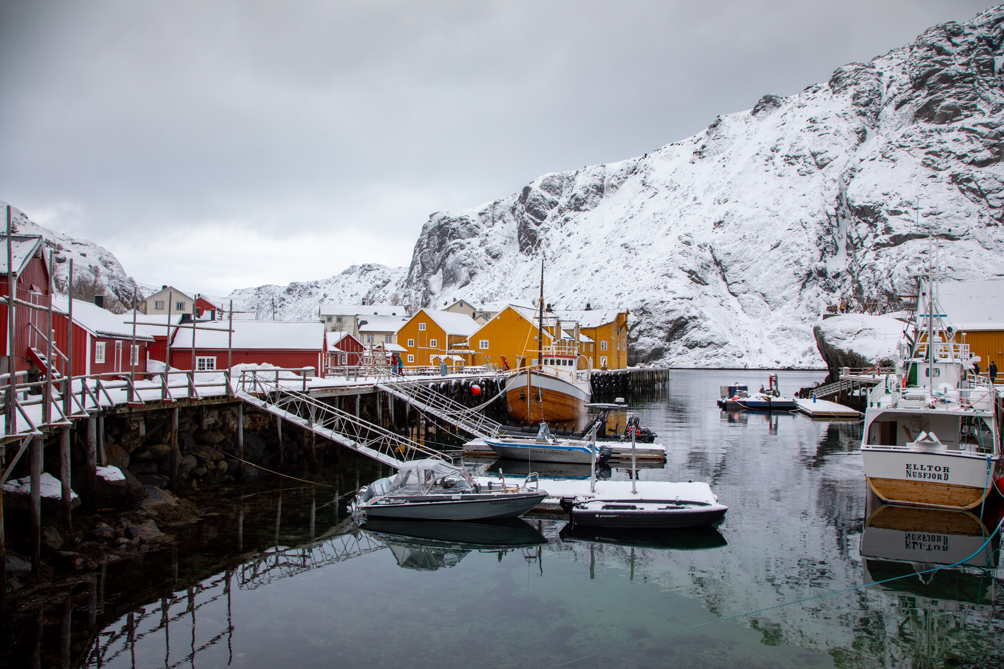 Nous passons la journée dans le Nusfjord un des villages de pêcheurs typiques de la Norvège et qui a été restauré pour recevoir les touristes. Ses maisons jaunes et rouges sont lovées au coeur d’un profond fjord que l’on rejoint en bifurquant hors de la route principale et traverse une zone sauvage. C’est une étape très agréable dans notre itinéraire des Lofoten où l’on peut poser la voiture et ralentir le rythme avec les mouettes qui crient au-dessus du toit de notre rorbu.