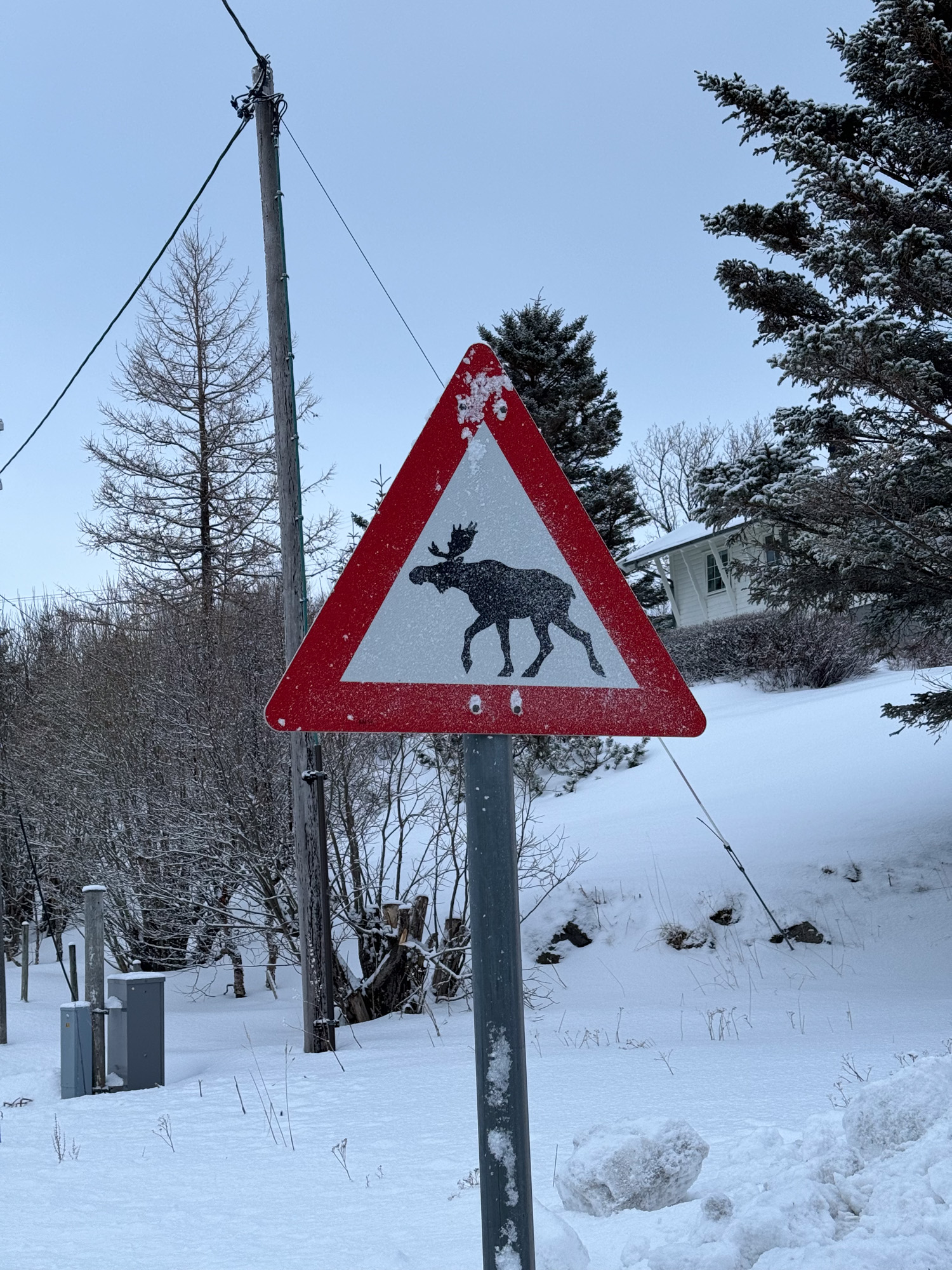 Nous traversons de nouveau Leknes et continuons de suivre la route en direction de l’Ouest, on passe d’île en île soit par des ponts ou des tunnels, les infrastructures routières sont idéales. Beaucoup de panneaux indiquent la présence de Moose mais aujourd’hui nous n’en verrons aucun.