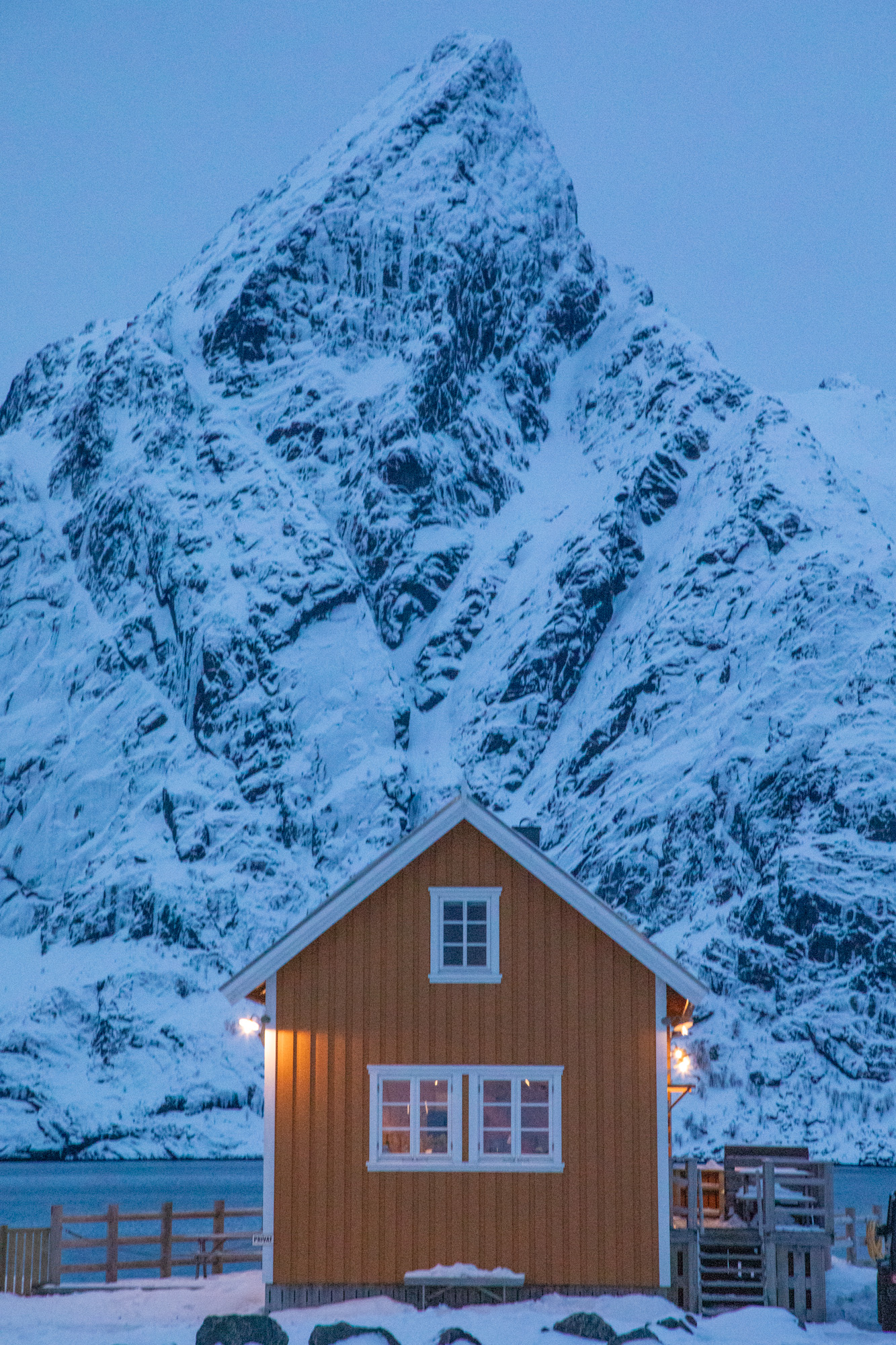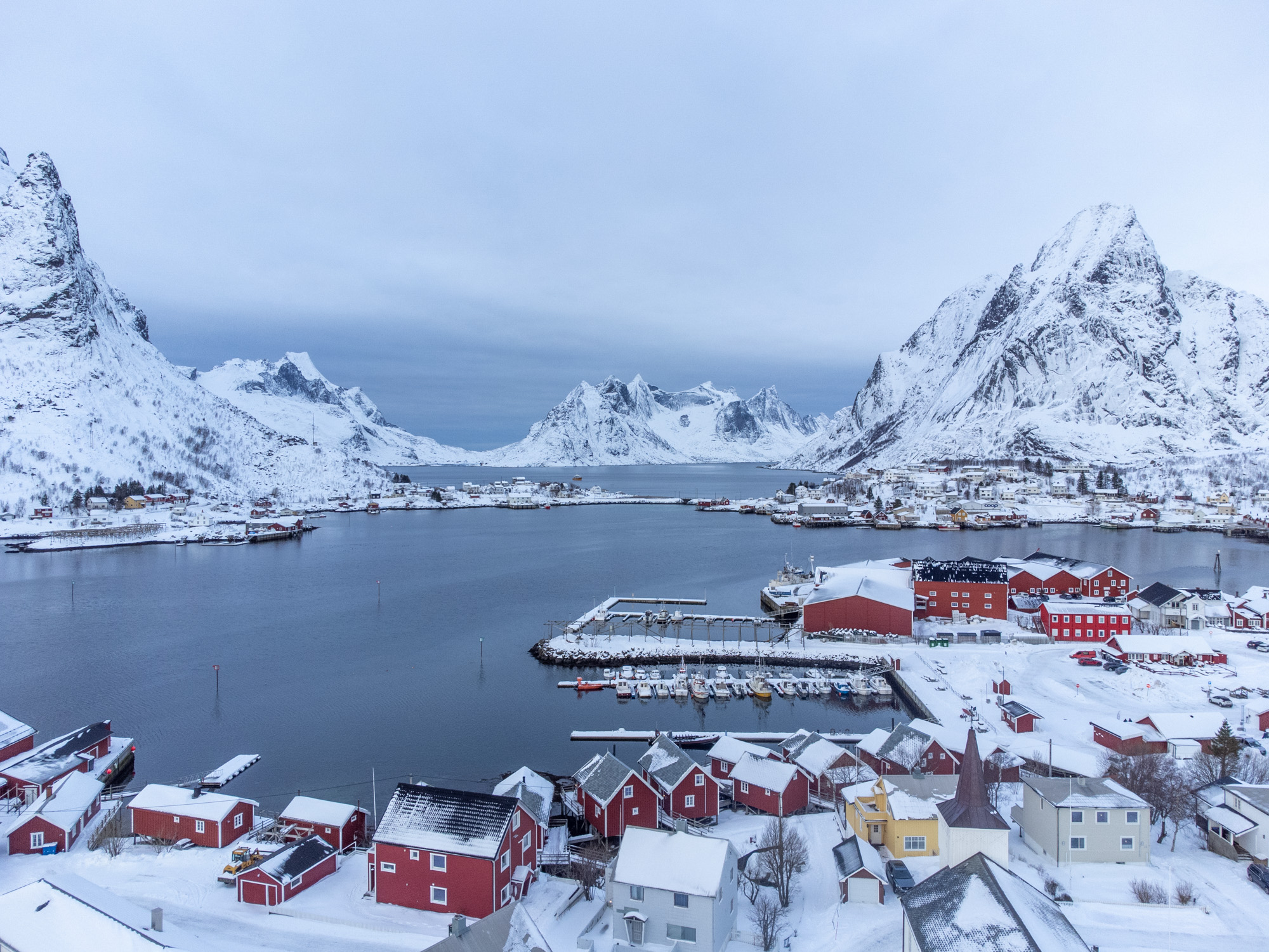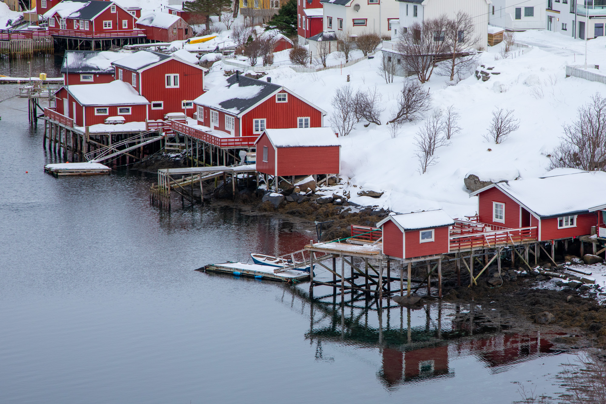 Le village de Reine a vraiment un cadre incroyable. On a souvent vu des images de Reine en été mais on se dit qu’avec la neige sur les montagnes c’est encore plus fascinant.