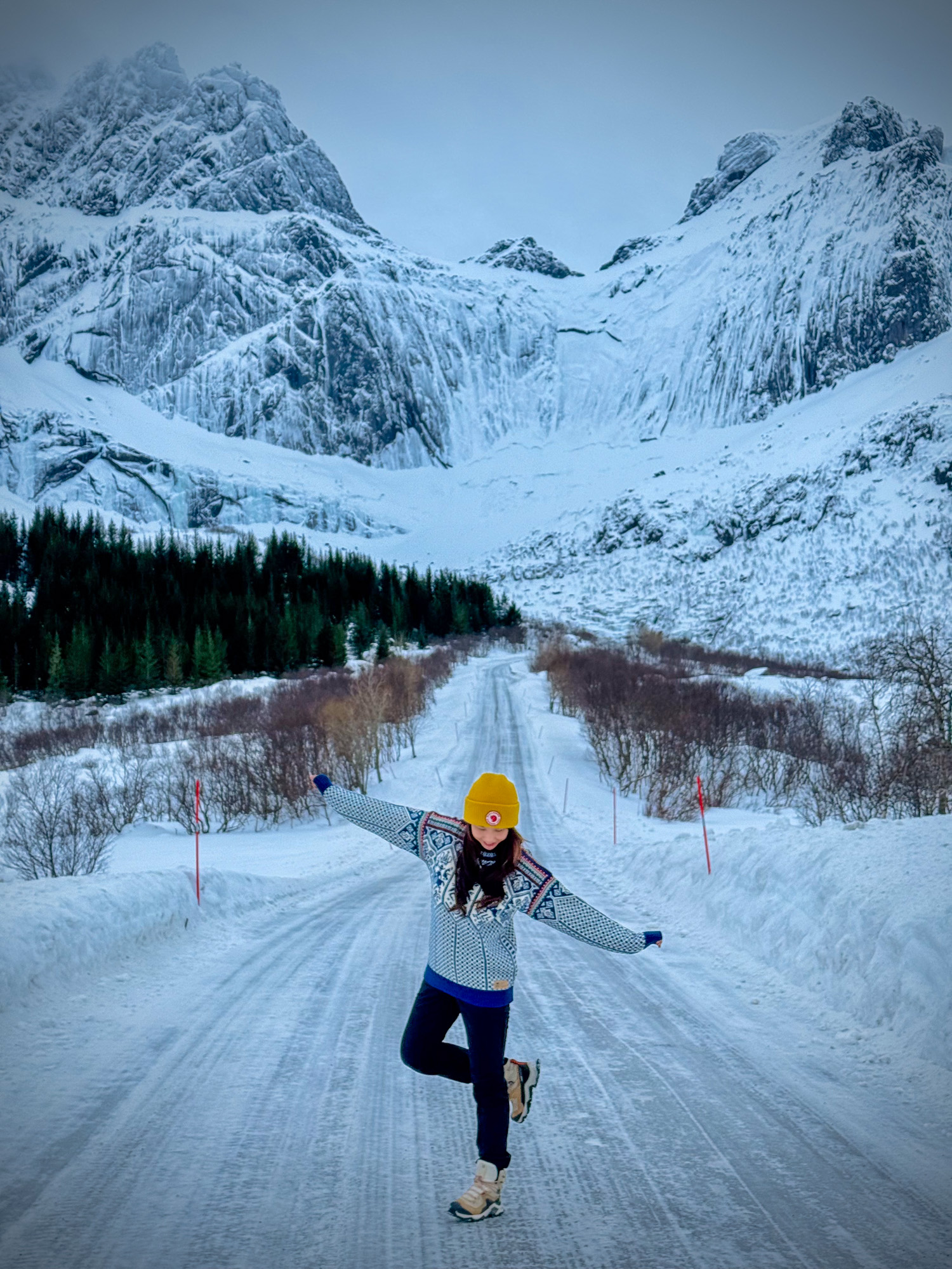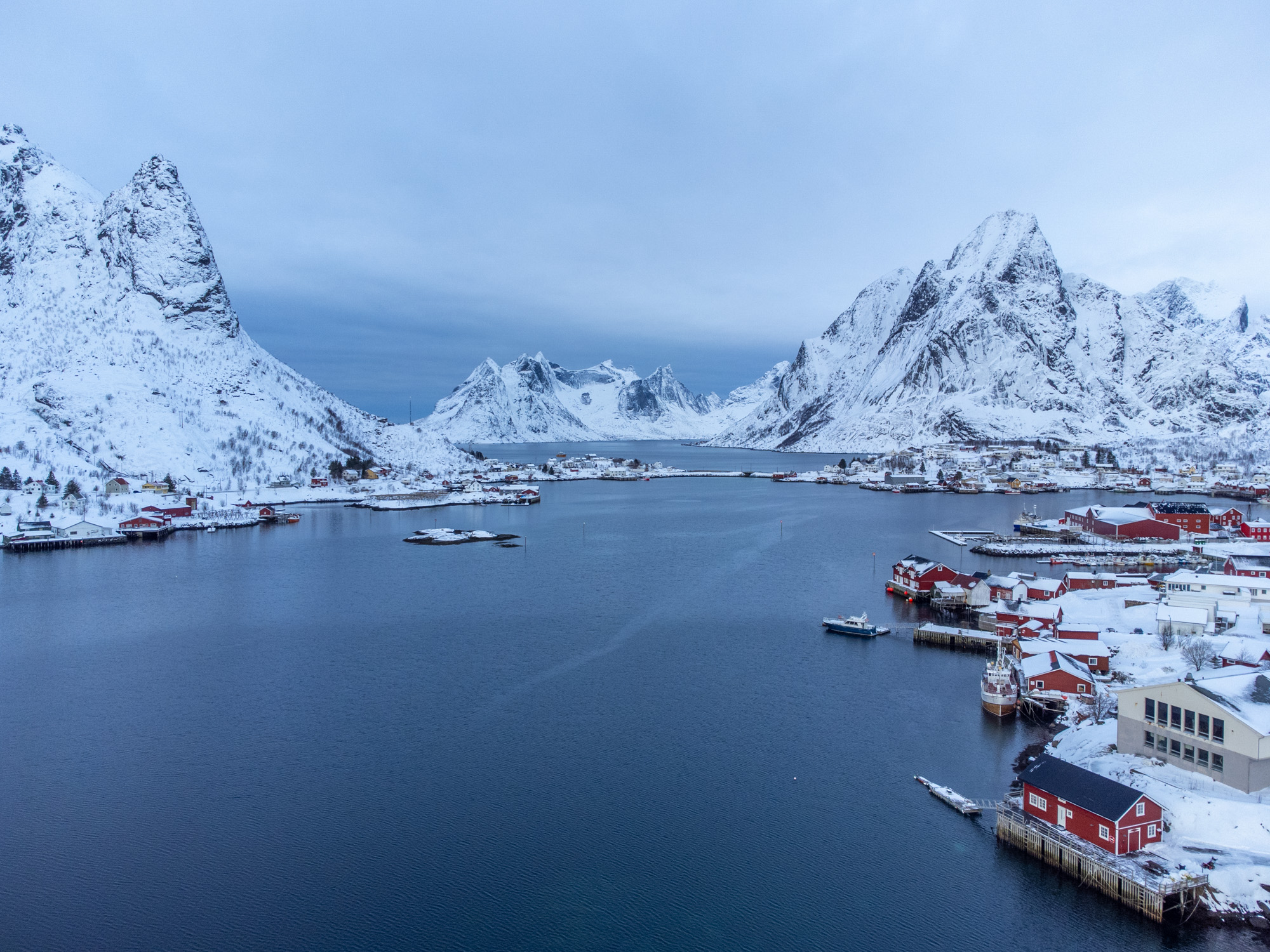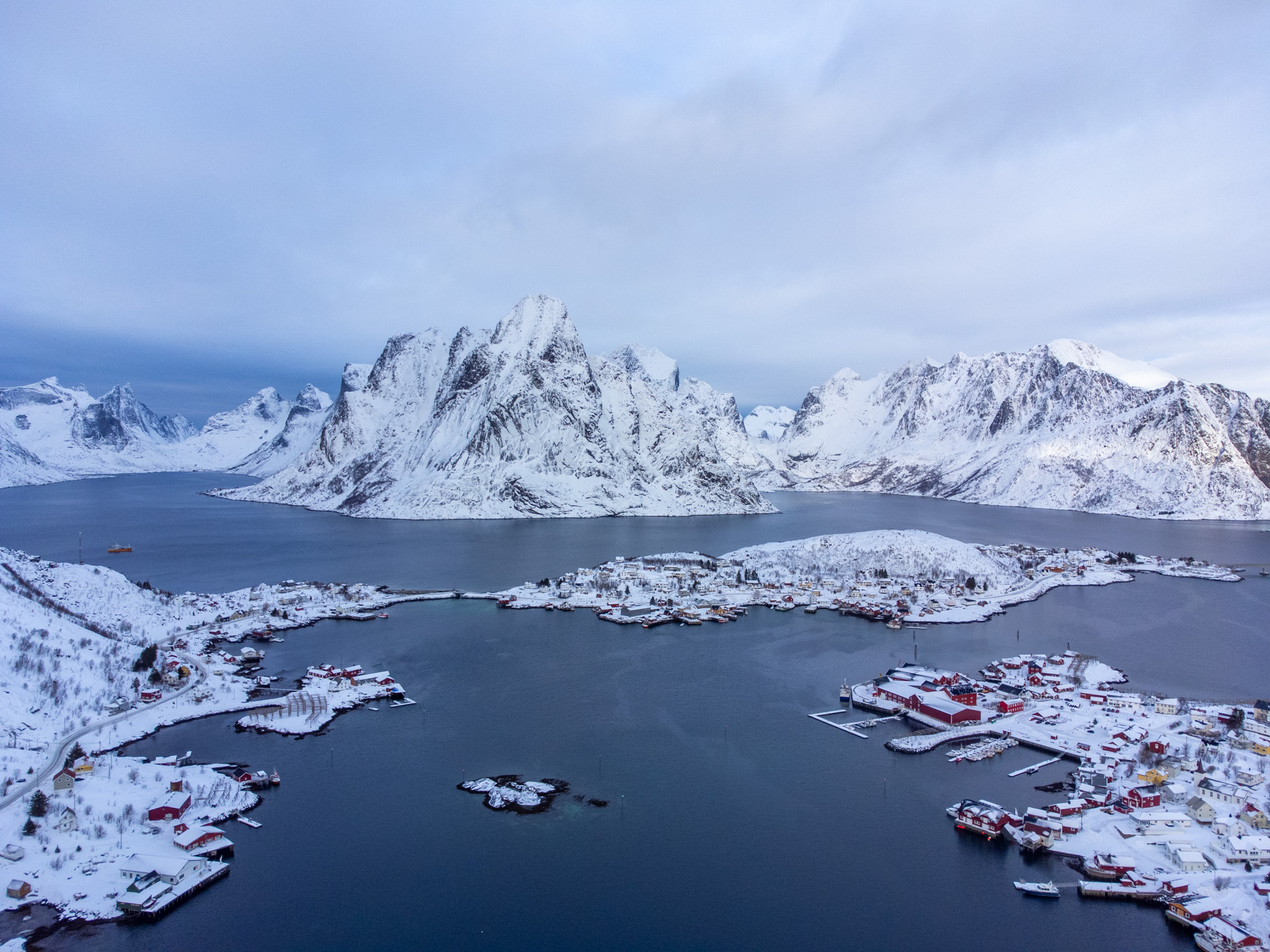 Le village de Reine a vraiment un cadre incroyable. On a souvent vu des images de Reine en été mais on se dit qu’avec la neige sur les montagnes c’est encore plus fascinant.