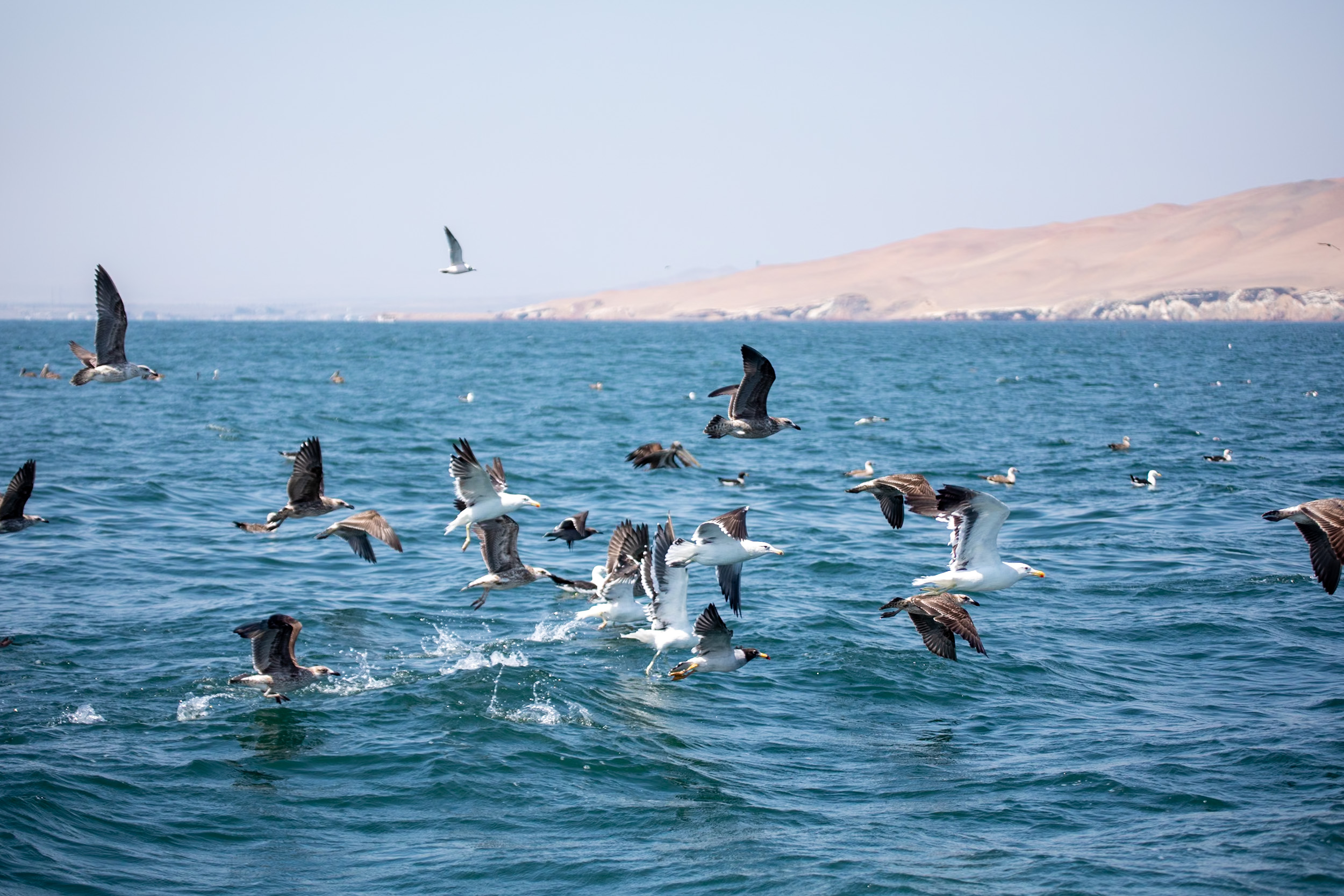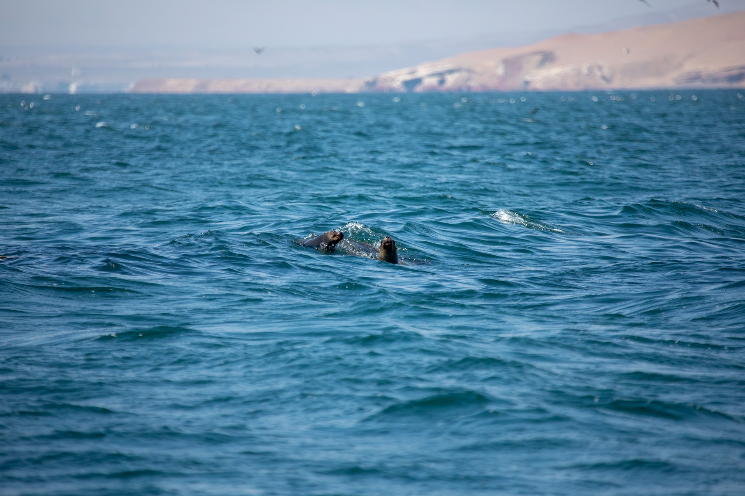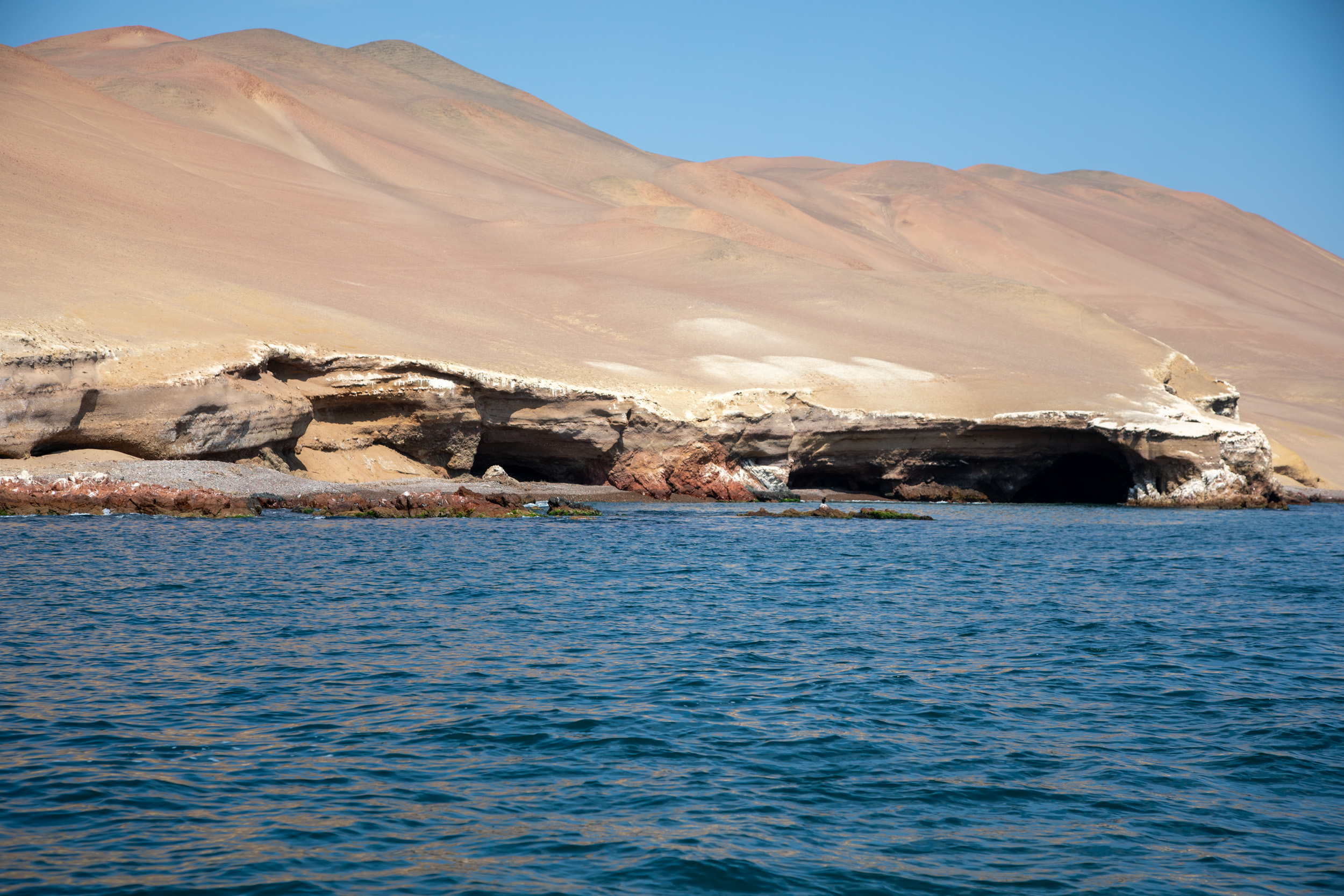 Encore une fois, on a voulu jouer la carte de la facilité. Nous avons réservé un tour avec un groupe plutôt que faire ce trajet par nos propres moyens. Et on va quand même le regretter. En rentrant à Lima de notre séjour dans la région de Cusco, il nous reste deux jours pour profiter de la région de la capitale. Avant de rentrer en France, on veut aller voir les îles de Paracas pour en découvrir une faune très différente de la forêt Amazonienne, et aussi la très photogénique oasis de Huacachina, tous les deux à 4 heures de route au Sud de Lima. On aurait pu se débrouiller et organiser la journée par nous même. J’étais tenté de louer une voiture pour aller par nous même à Paracas et dormir à Huacachina pour rentrer le dernier jours et directement aller à l’aéroport, ca aurait une option que l’on a considéré puis finalement on s’est dit que ca allait être plus compliqué. L’autre option aurait été de prendre le bus, mais là le problème était plutôt le manque de temps. Donc au final on s’est retrouvé au bord de la route devant notre hotel de Miraflores à 5h30 du matin pour attendre un bus qui récupère pleins de touristes en ville pour aller passer la journée à Paracas et Huacachina. Le bus et on retrouve nos compagnons du jour, on roule environ 3 heures, on sort de Lima et on traverse une zone aride désertique avec l’océan sur la droite, jusqu’au village de Paracas, un très mignon village touristique qui nous donnerait envie d’y passer au moins une nuit. C’est le milieu de la matinée. Il y a une odeur d’iode dans l’air, il fait bon. On rejoint le quai pour monter dans un bateau avec un guide, direction les îles Ballestas. Les îles Ballestas sont réputées pour accueillir une faune riche en oiseaux, pingouins, lions de mer et parfois des baleines. La côte du Pérou est baignée par le courant de Humboldt qui remonte depuis le Sud du continent, proche de l’Antarctique, c’est un courant froid qui permet à des espèces qui apprécient le climat plus froid de remonter jusqu’à ces latitudes, et les îles Ballestas fait parmi des meilleurs endroits pour les approcher.