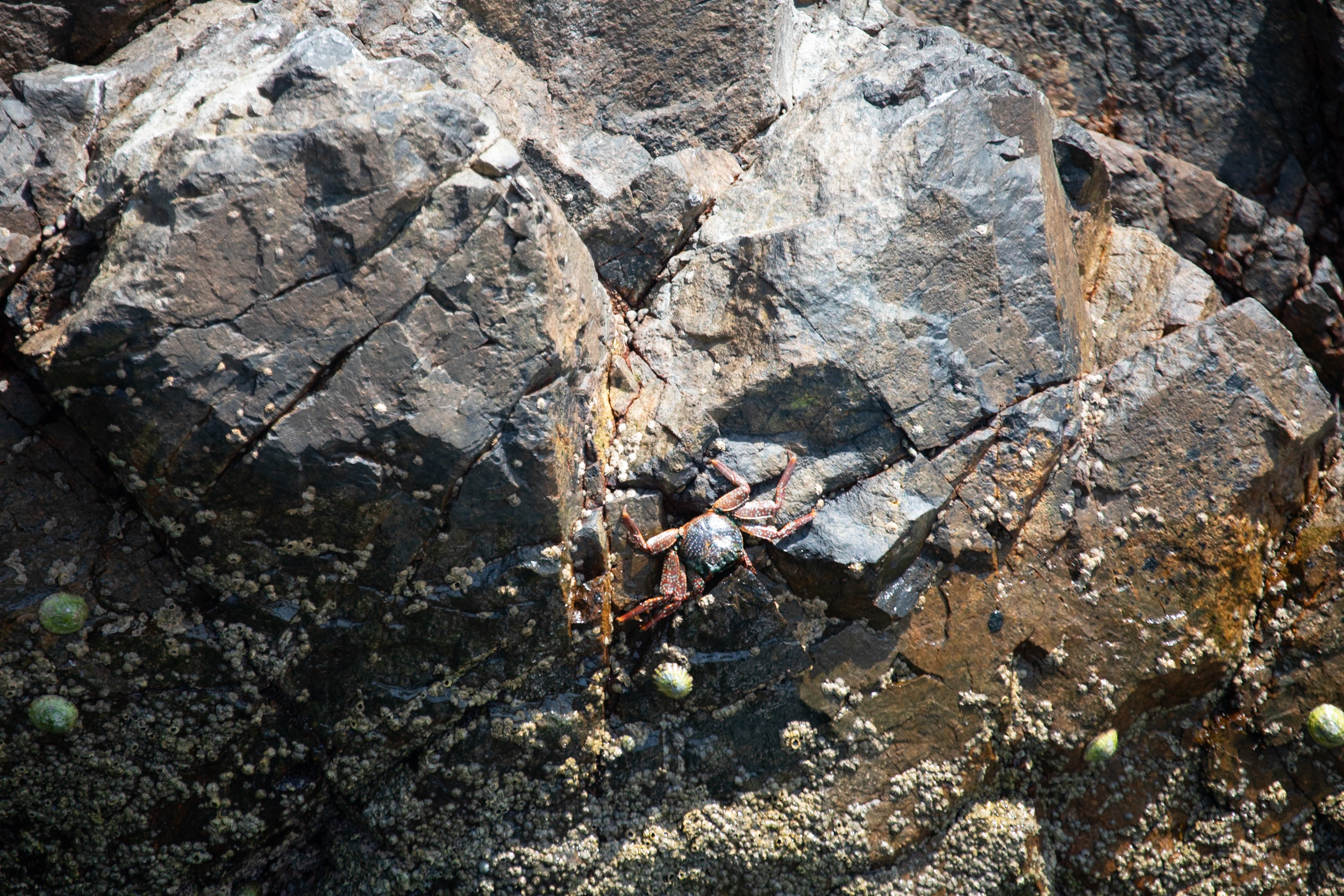 Sur les rochers, notre guide arrive à apercevoir un crabe. Incroyable, comment fait elle pour le distinguer alors qu’il a presque la même couleur que les rochers ?