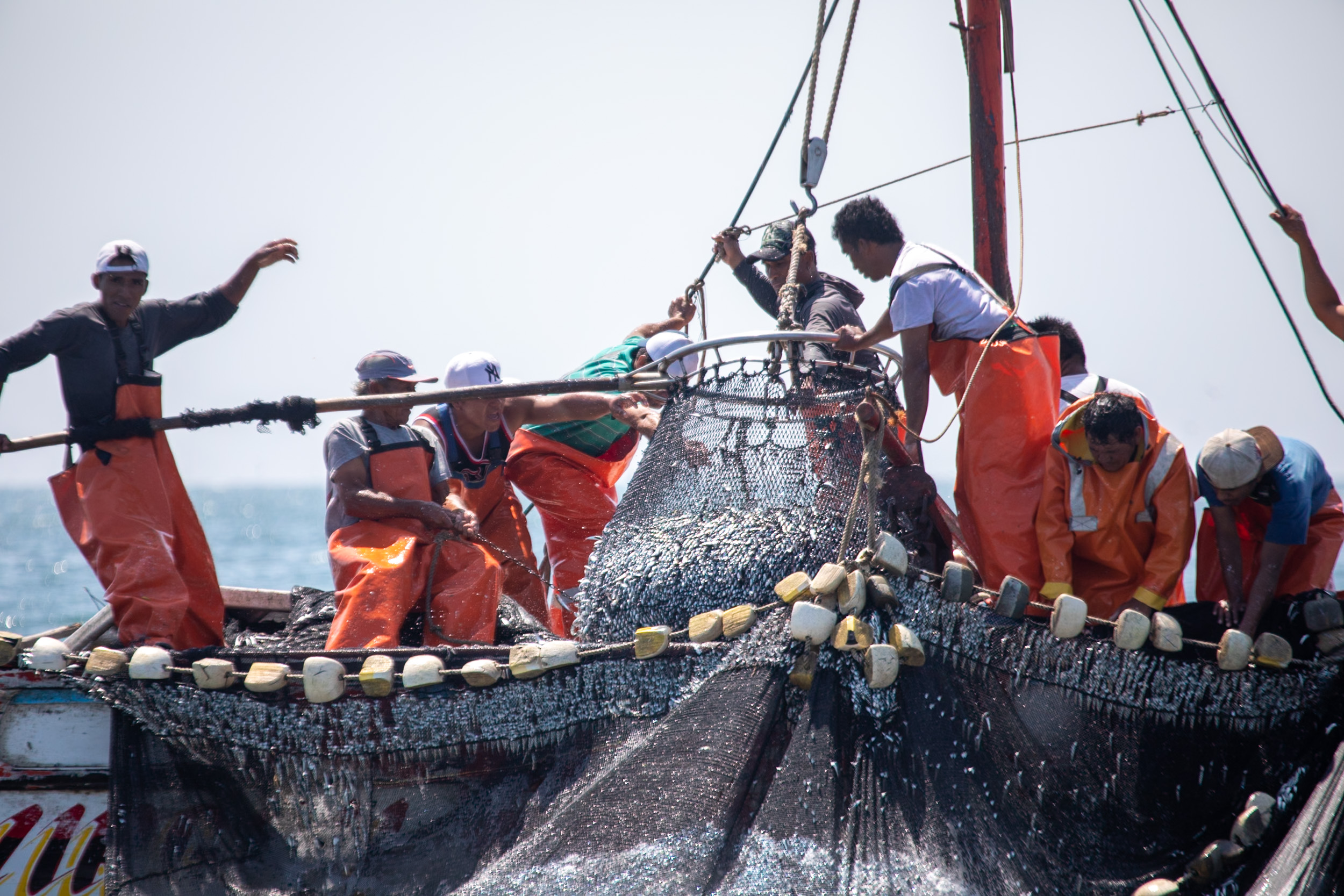 Sur le chemin du retour, le bateau passe à côté de nombreux pêcheurs, on reste à côté d’eux, ils sont en train de tirer leur filet de pêche, il est plein de poissons.