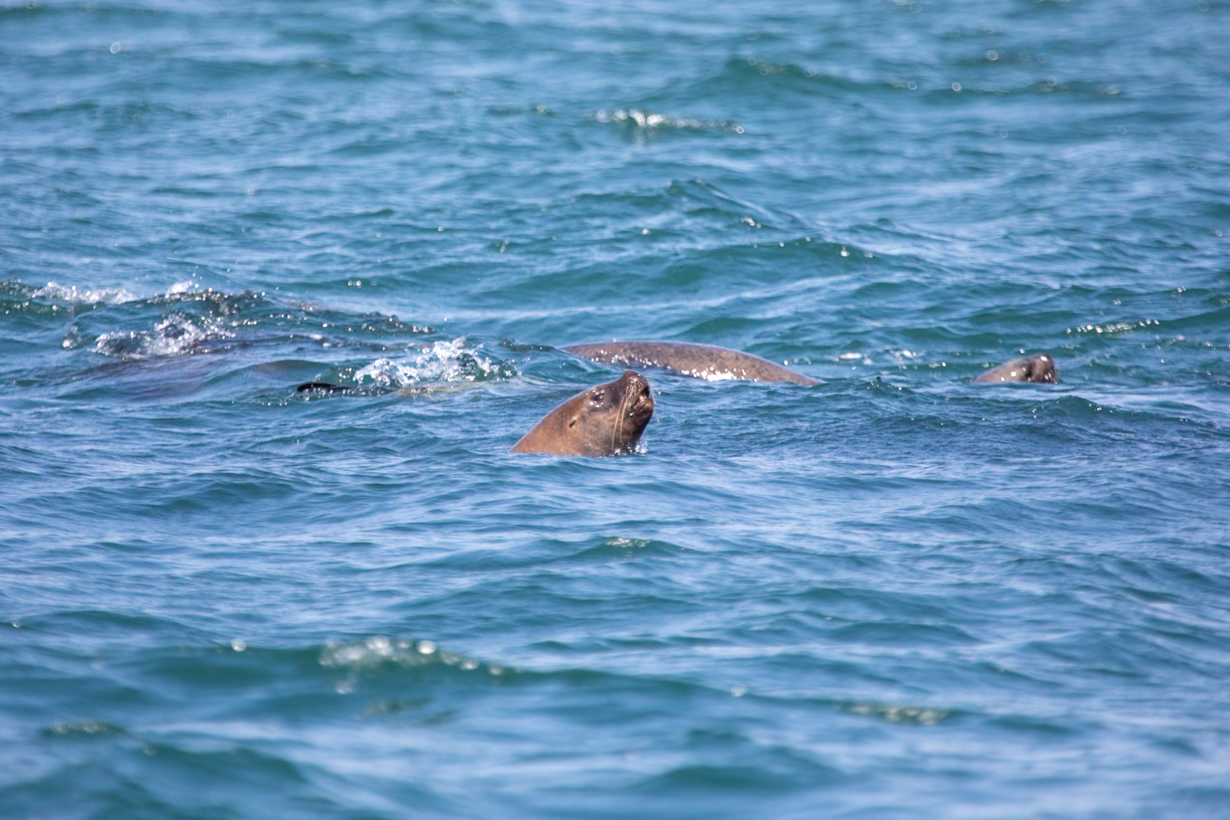 Les otaries s’en donnent à coeur joie, il y en a même une qui arrive à sauter dans le filet pour se gaver de poissons avant de ressortir.