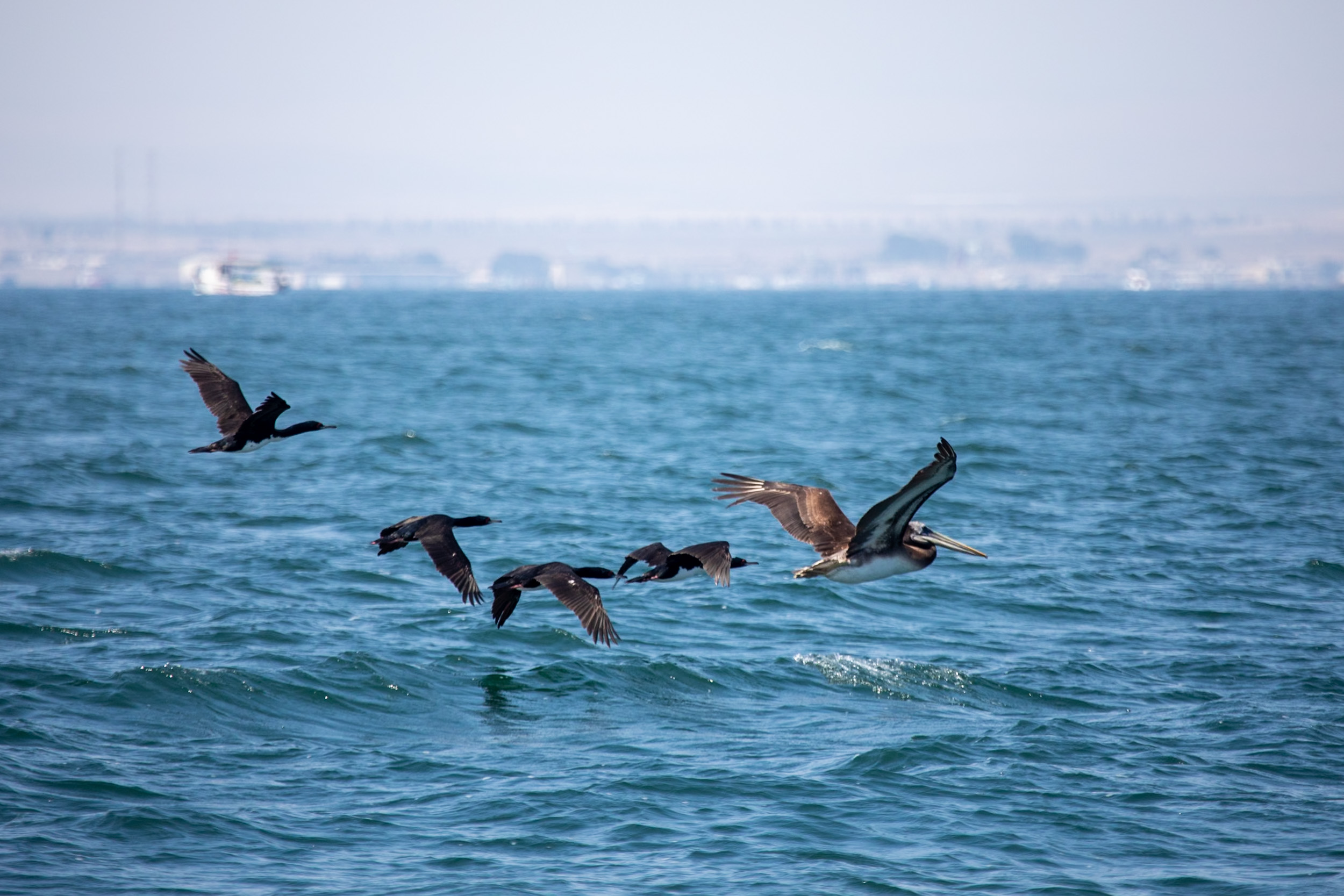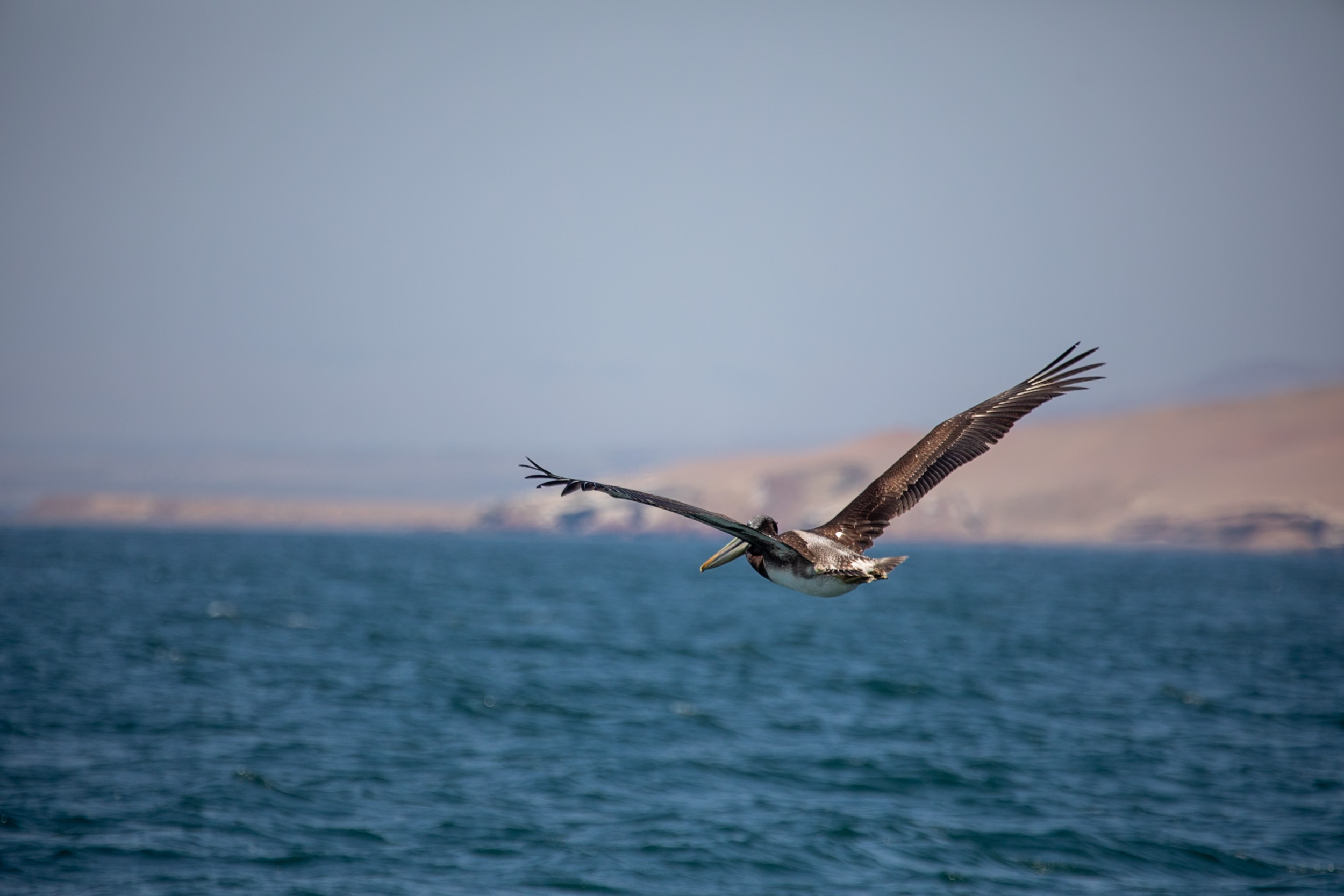 On retourne maintenant à Paracas, on a vraiment vu beaucoup d’animaux pendant ce tour qui aura duré à peu près deux heures. Et ce n’est pas fini, alors que l’on navigue vers le village, on a encore la chance de voir voler à côté de nous plusieurs beaux spécimens.