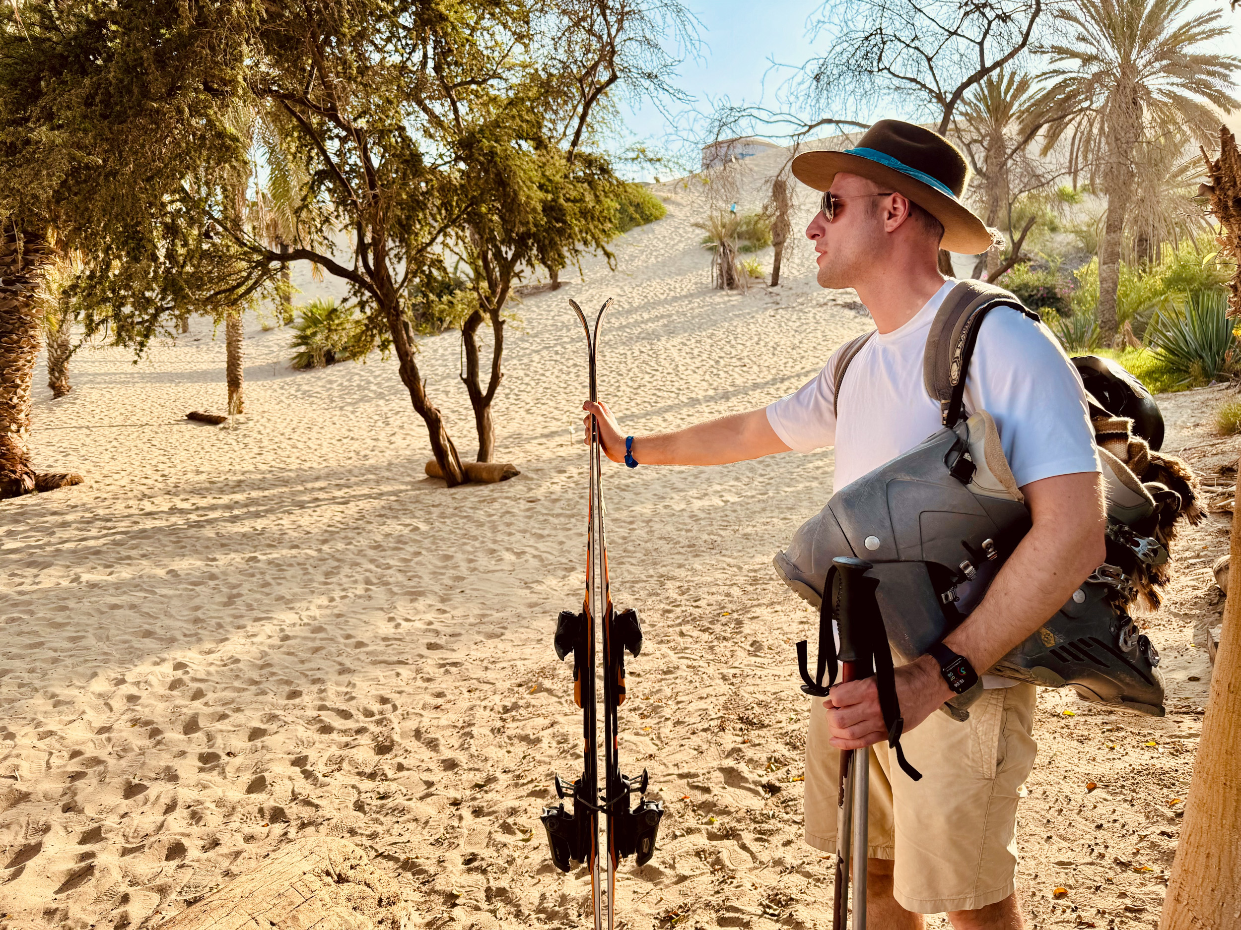Avant de partir, je loue une paire de ski que l’on peut embarquer dans le buggy pour faire quelques descentes de dunes sur les planches.