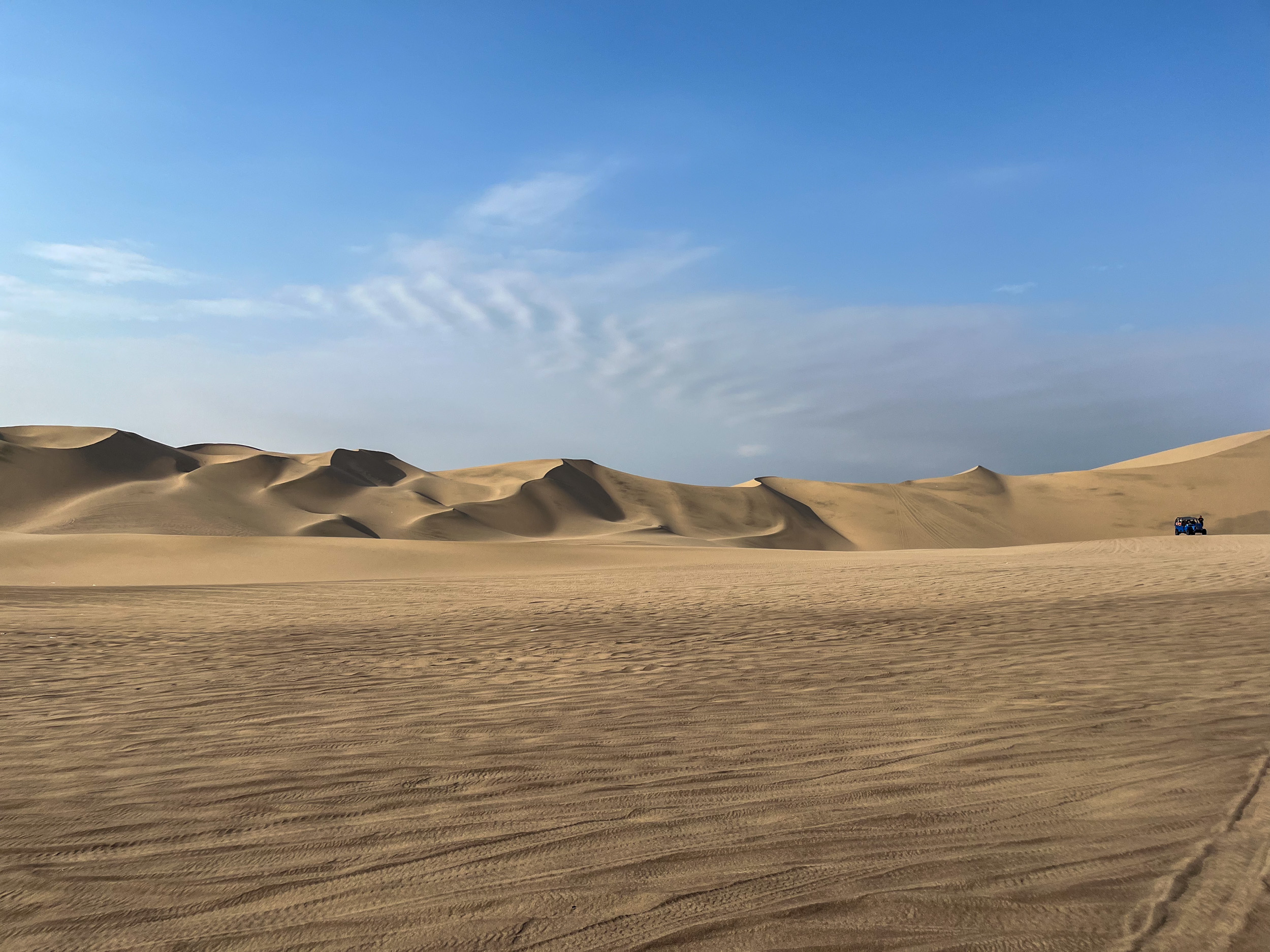 Les buggys nous emmènent dans les dunes puis on s’arrête au milieu du désert pour faire une pause et admirer le désert.