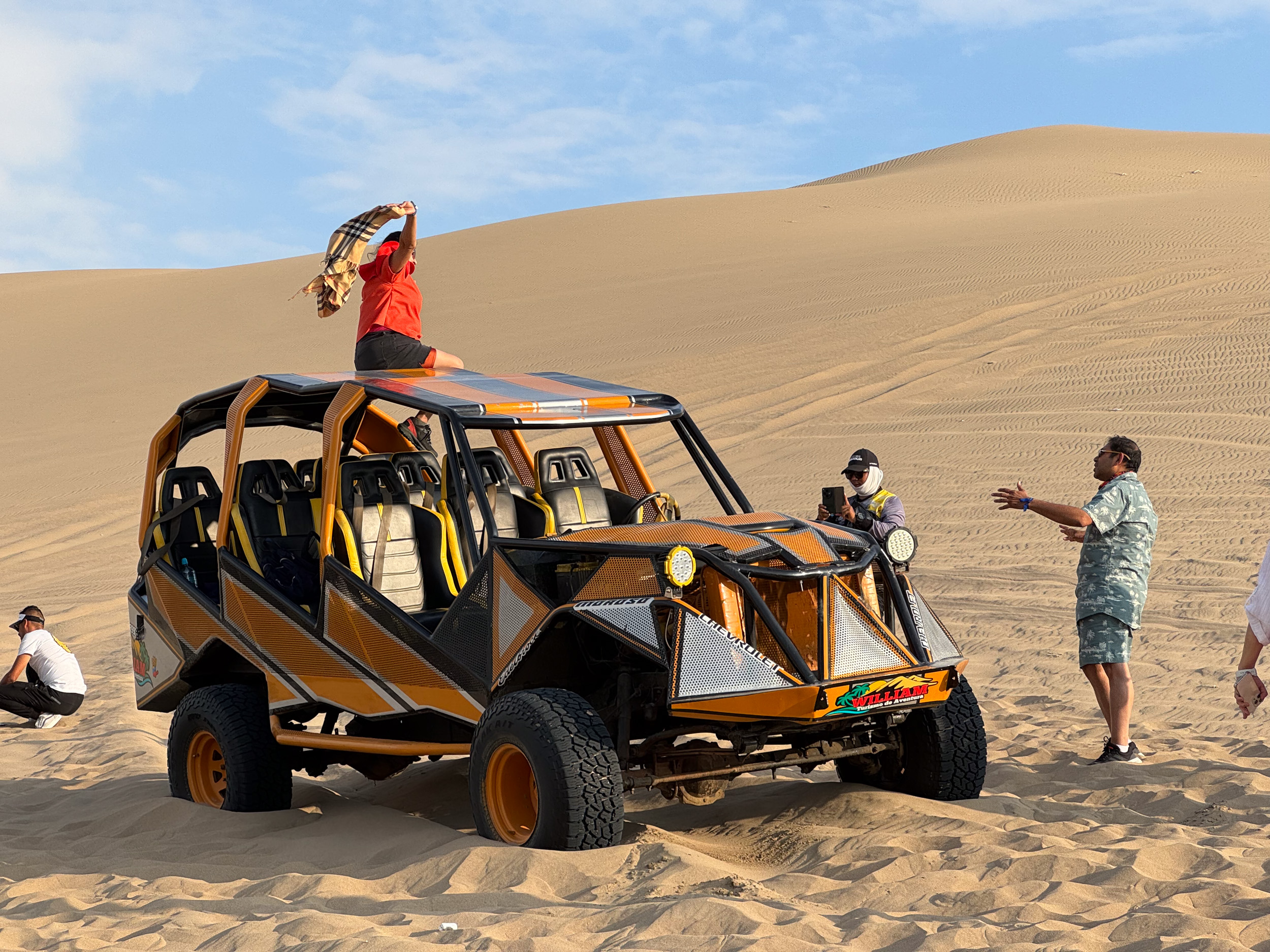 Nos compagnons de voyage sont un groupe d’indiens qui se prend en photo avec le buggy. On décide de se joindre à eux et nous aussi on se prend en photo avec cet engin tout droit sorti d’un film. On est habituellement pas très fan de ce genre d’activité mais on se prend au jeu avec ce groupe d’indiens.