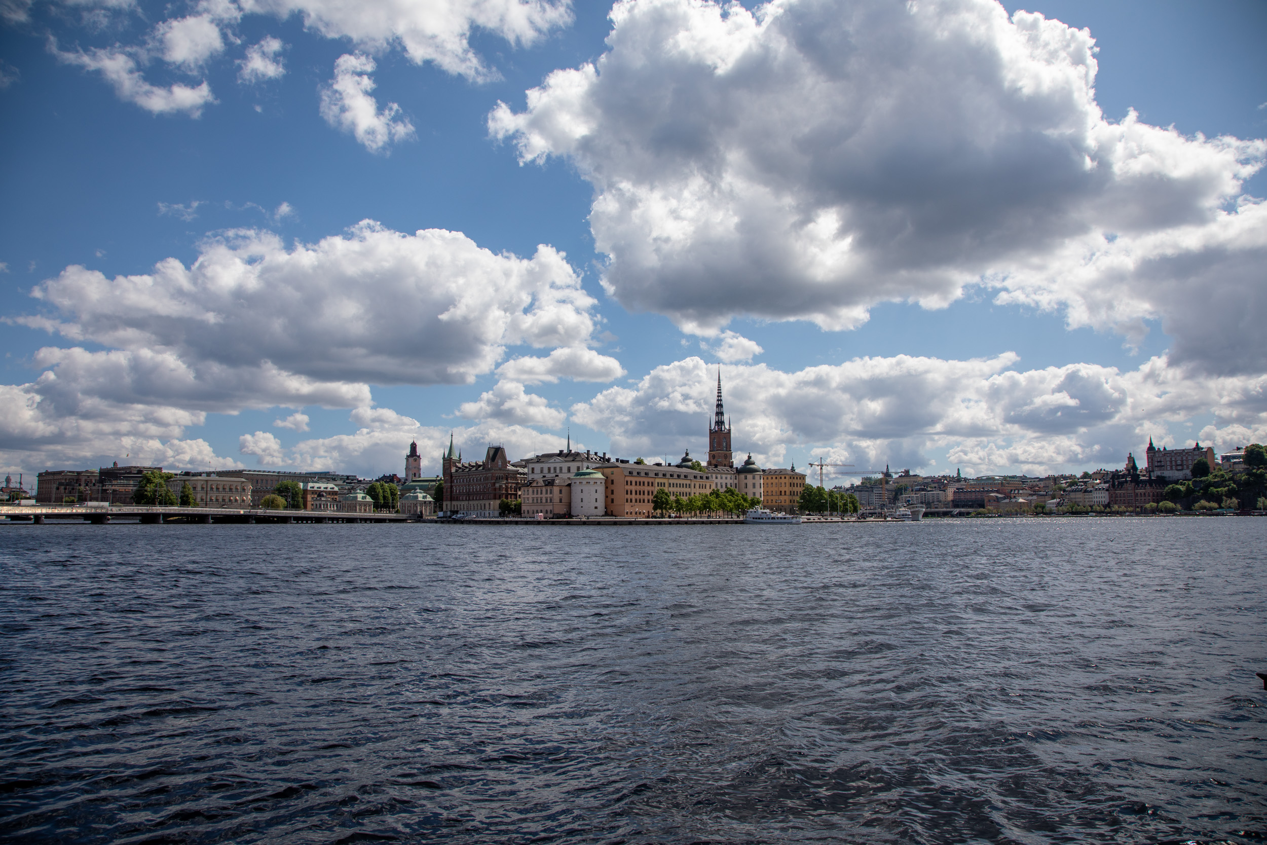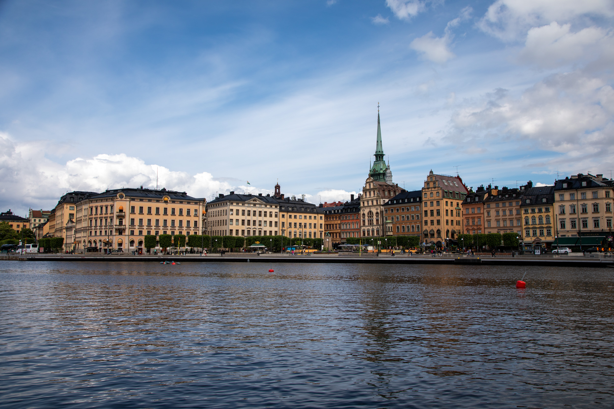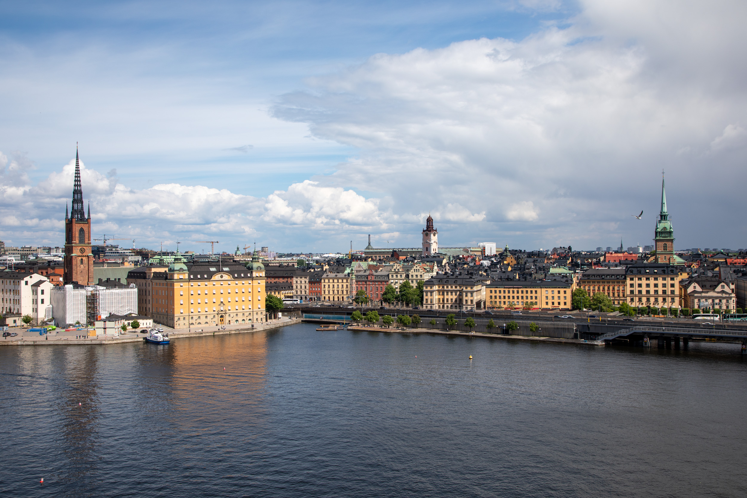 On a une très belle vue sur les façades de Gamla stan.