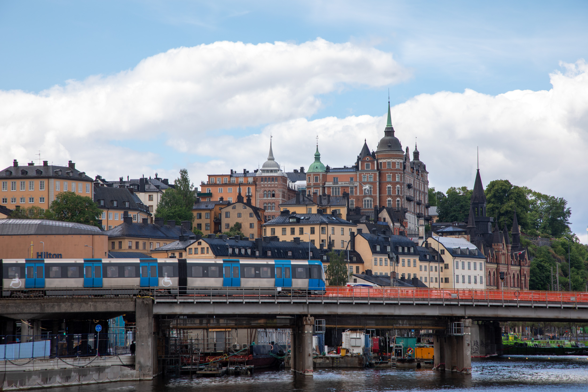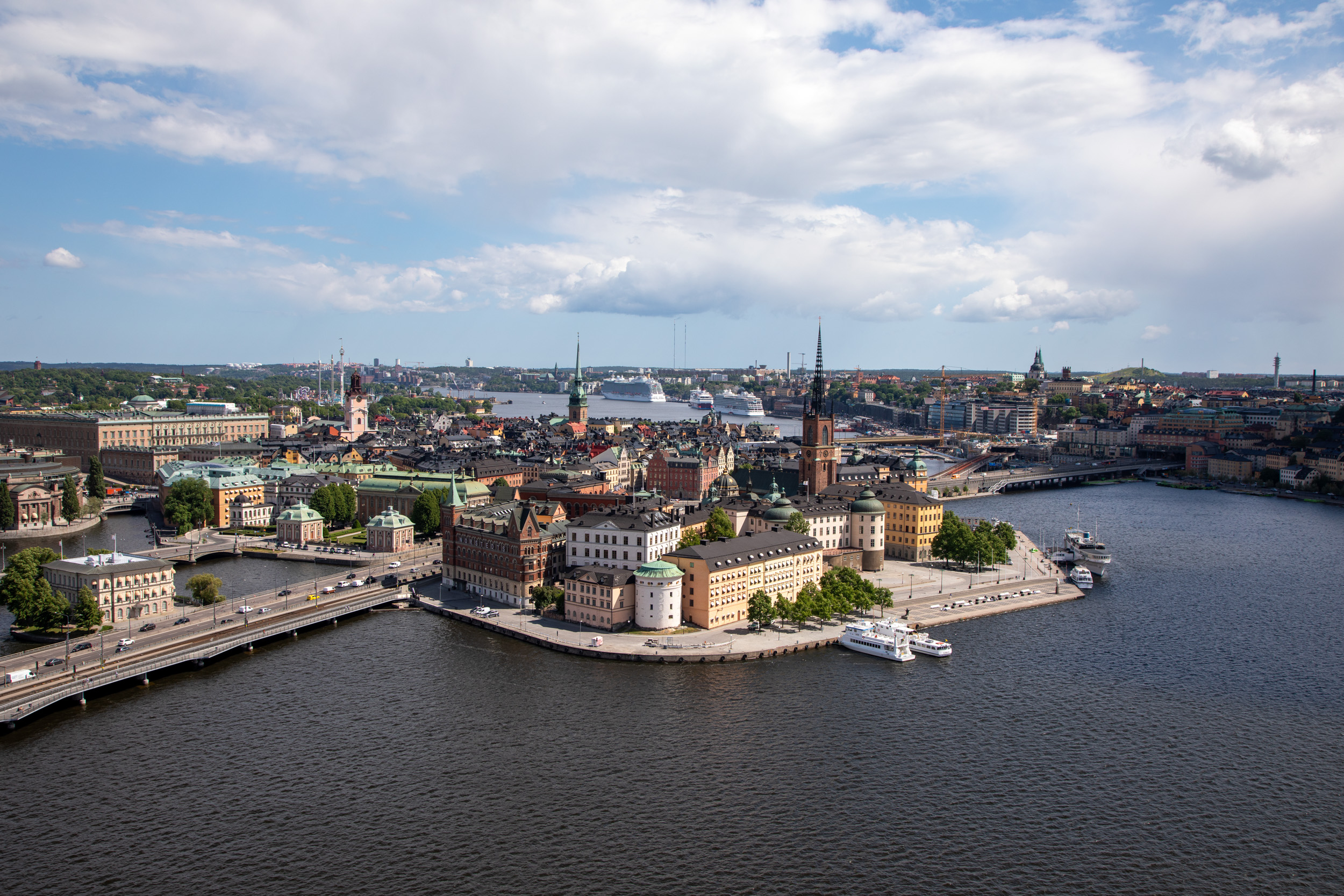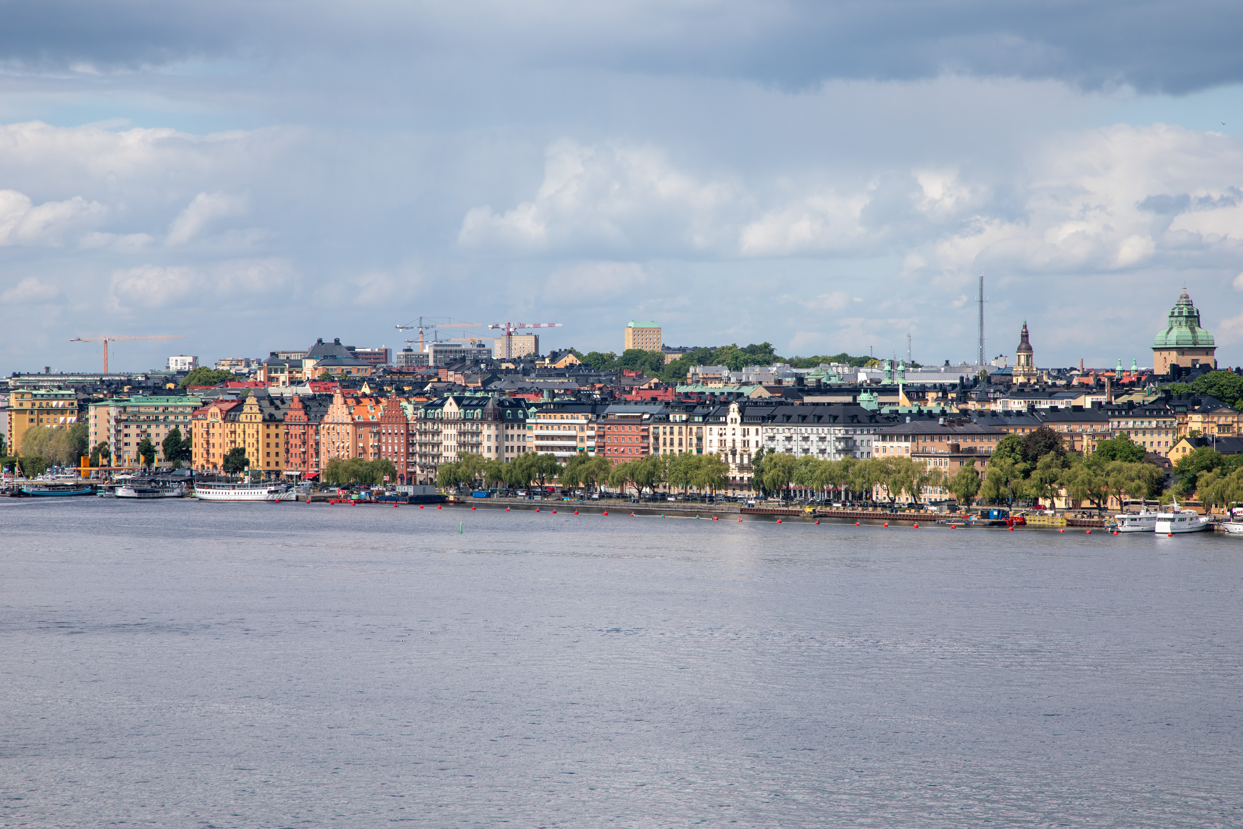 On a une très belle vue sur les façades de Gamla stan.