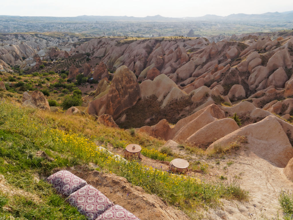 Depuis ce promontoire naturel, on domine toute la vallée de Gorëme avec ses formations rocheuses plus étonnantes les unes que les autres.