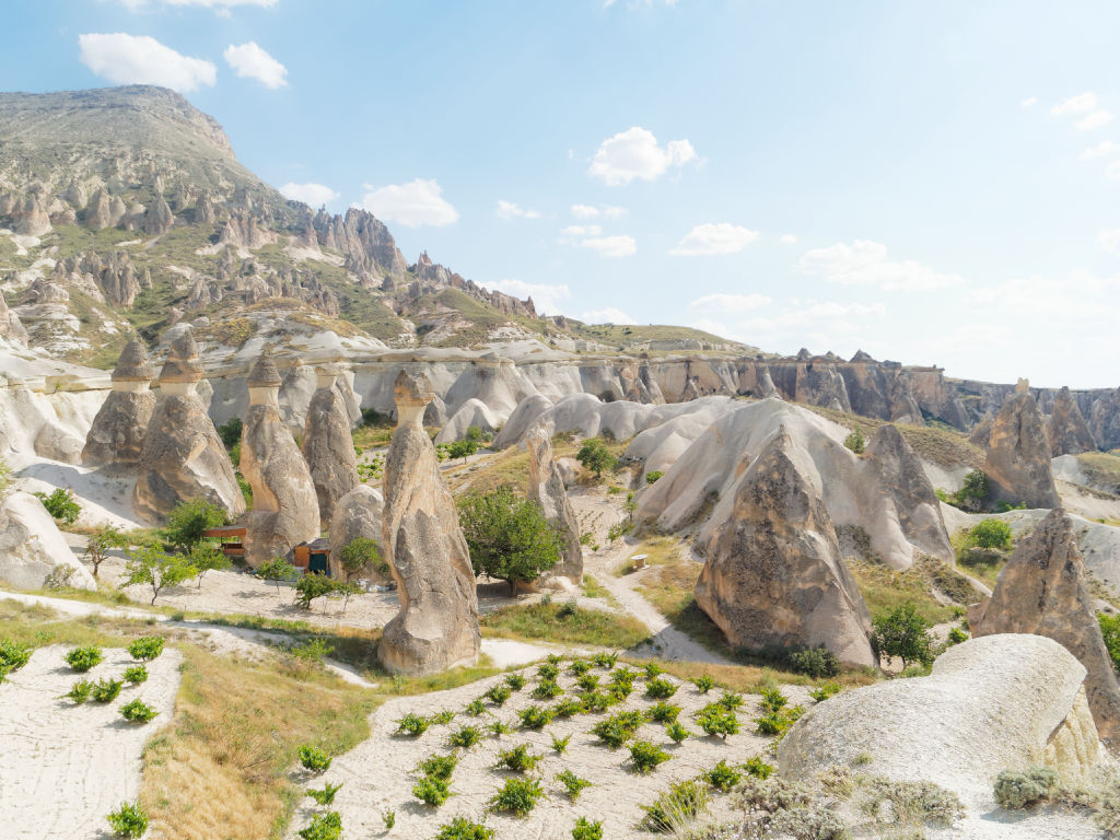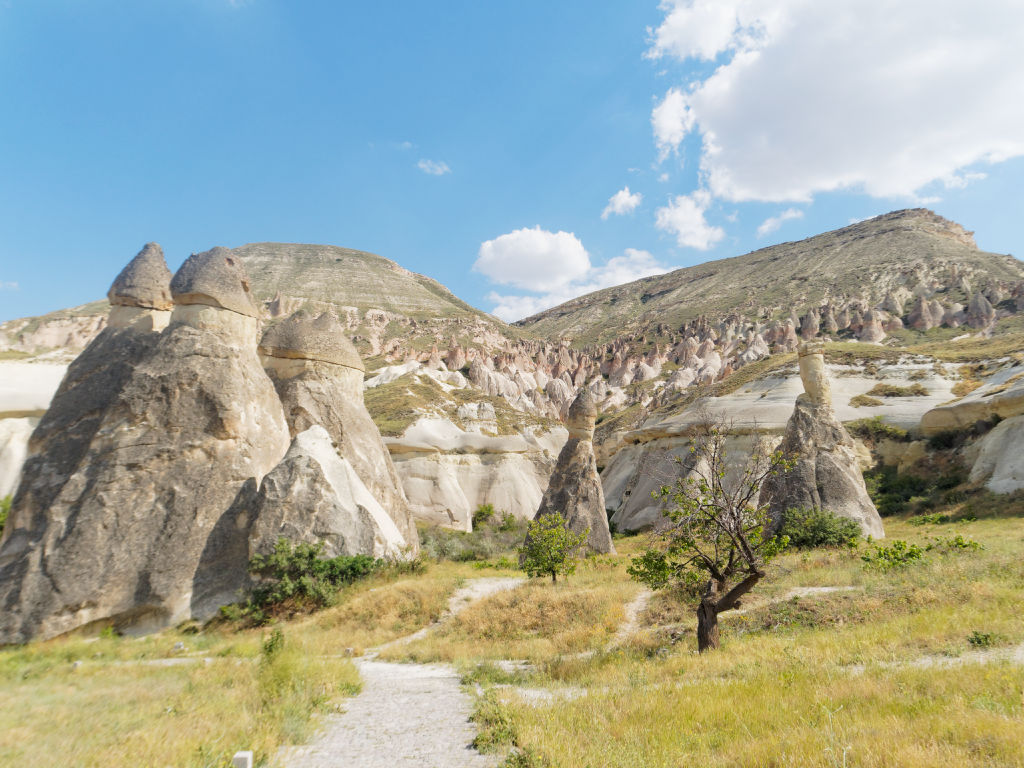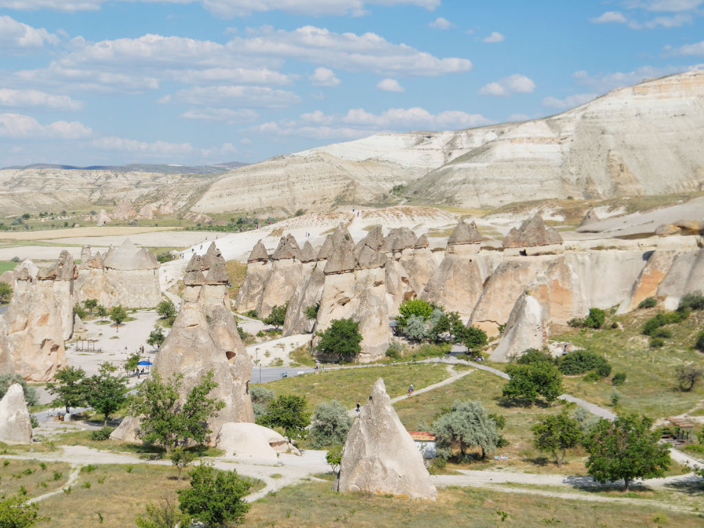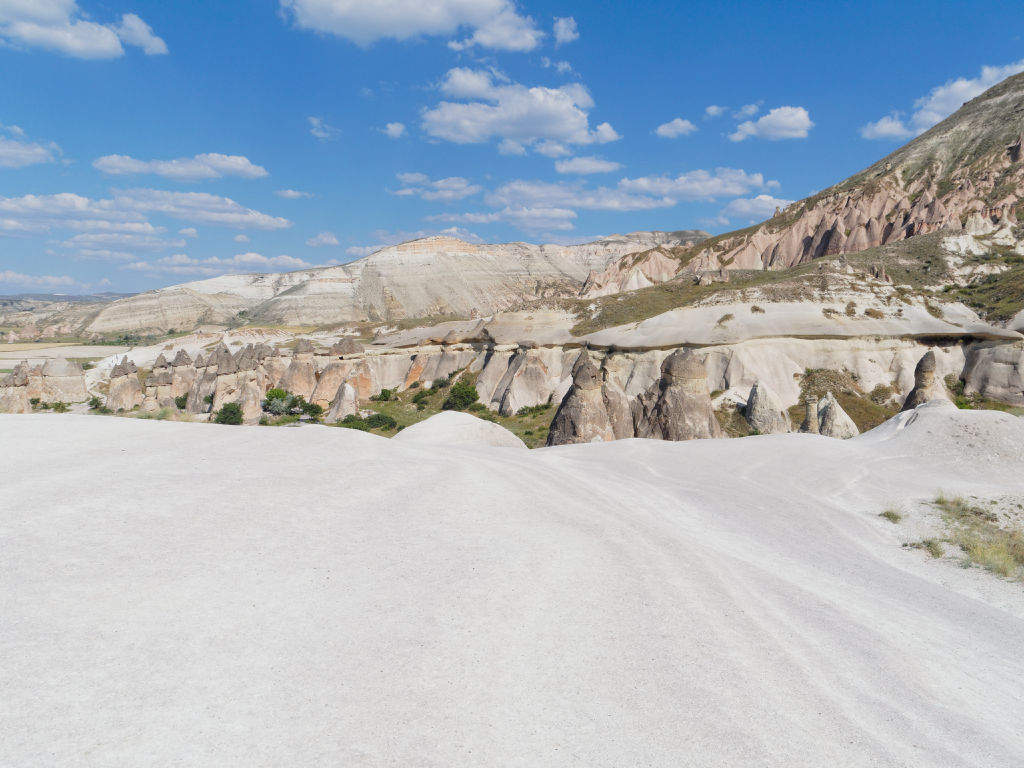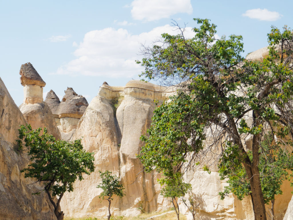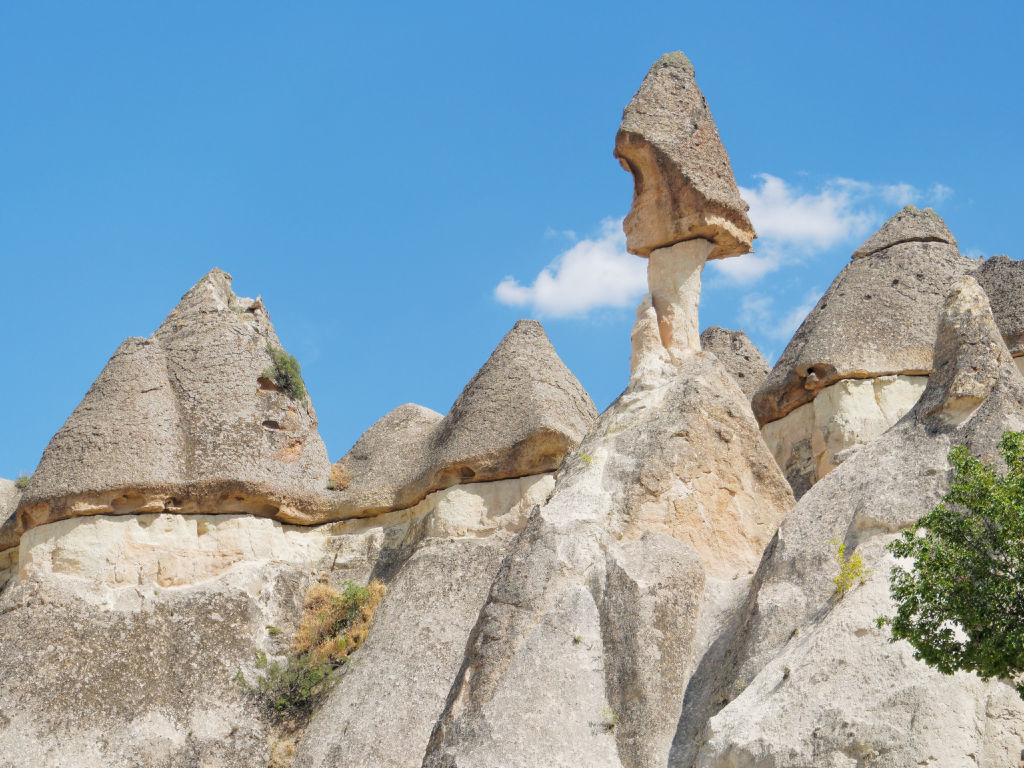 Ce soir, nous devons reprendre l’avion pour Istanbul. Sur la route de l’aéroport on fait une dernière étape dans la zone d’Aciksaray. Ici les bâtiments creusés sont moins impressionnants mais on trouve une particularité géologique qui est le symbole de ce parc, il s’agit d’un rocher en forme de champignon.
