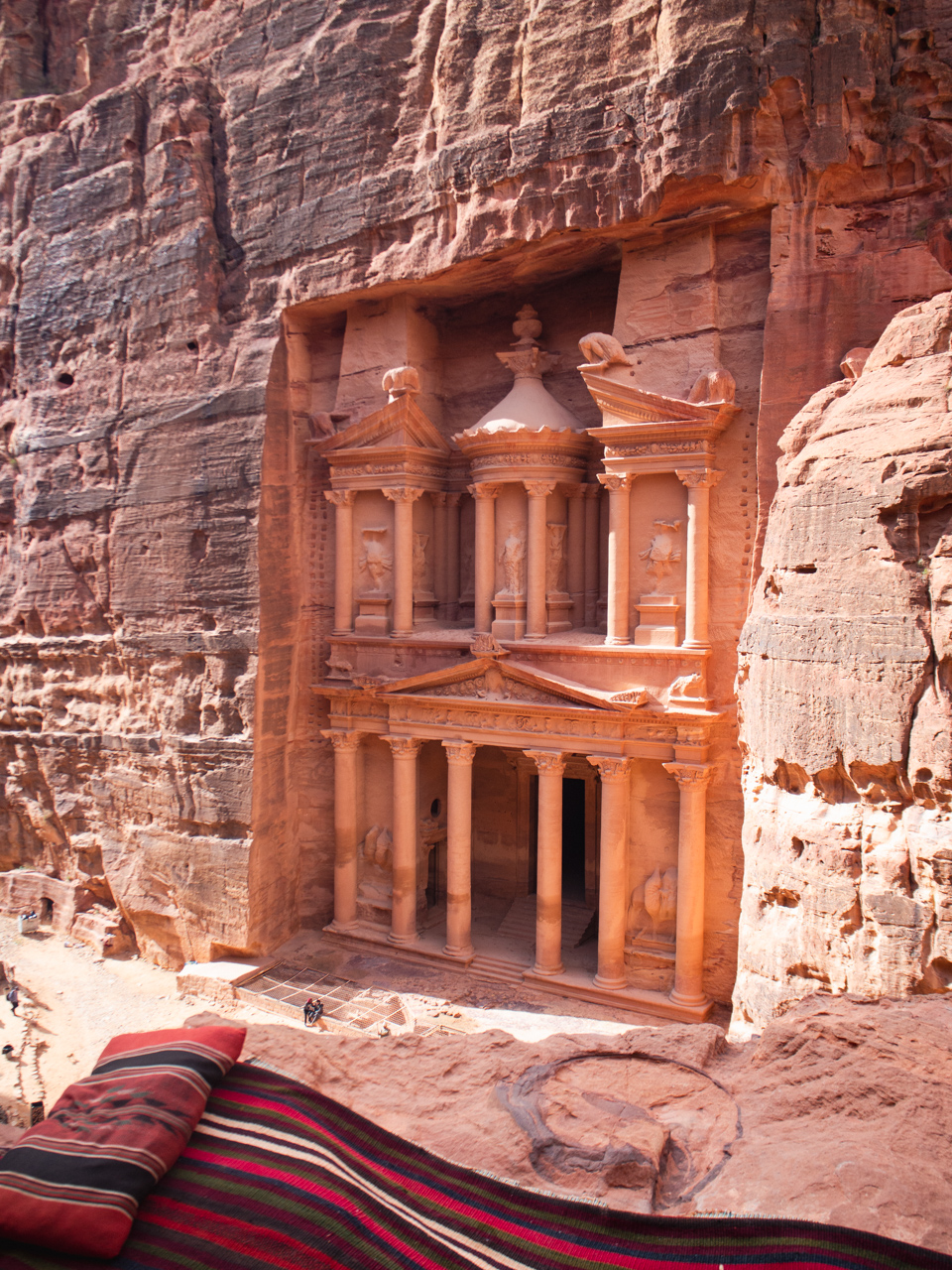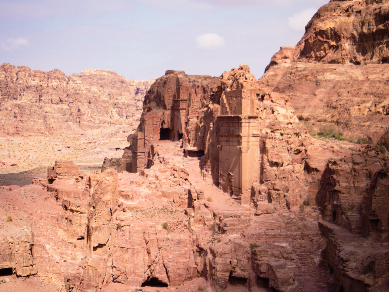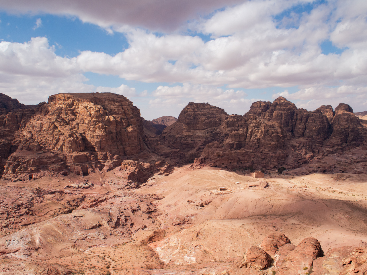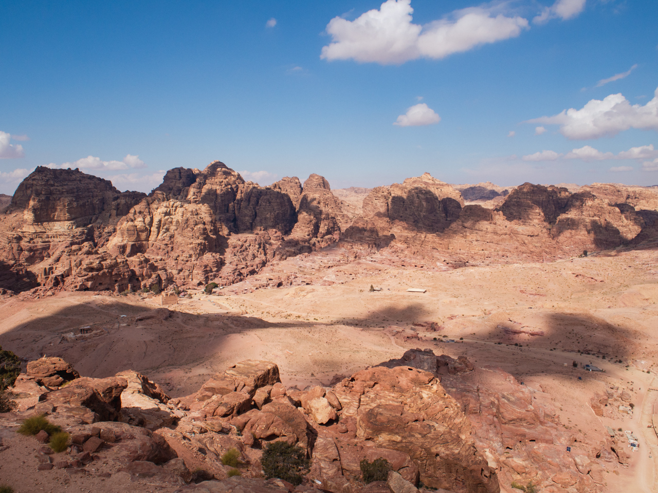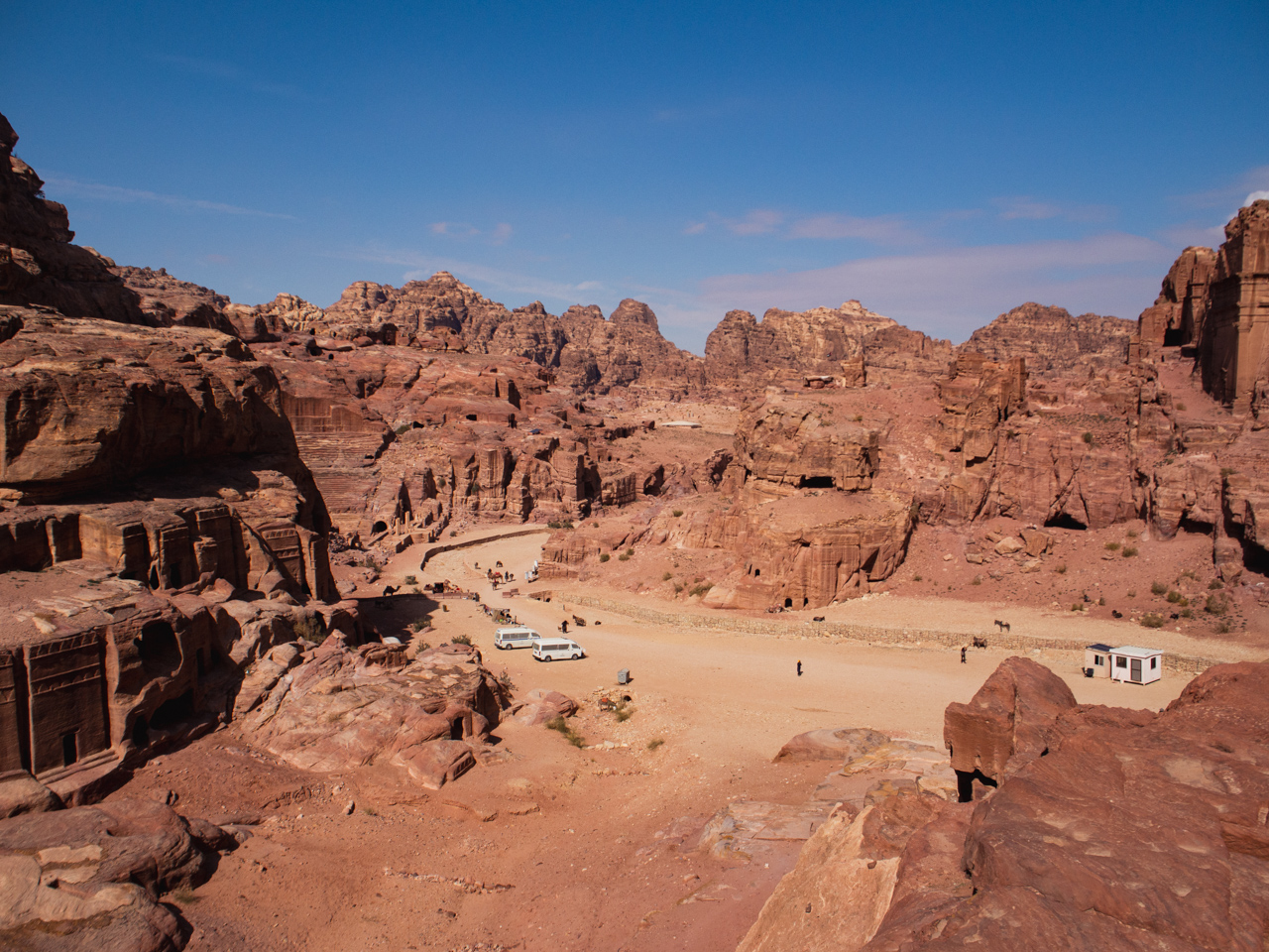 On prend ensuite de la hauteur, on rejoint la place des sacrifices tout en haut d’une des montagnes de Pétra, ce qui nous donne un point de vue magnifique sur tout le site et les tombes royales juste en contrebas.