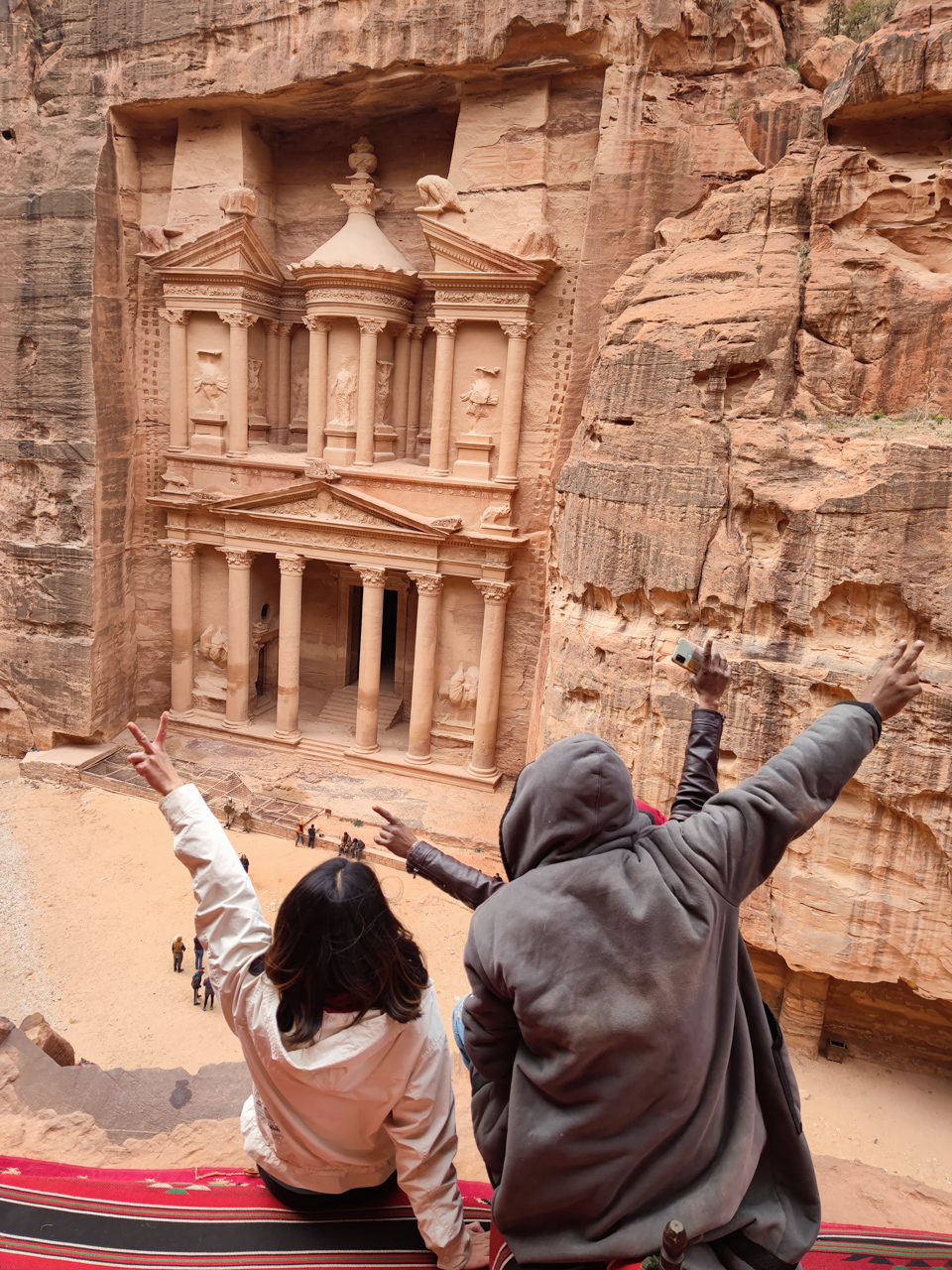 Pétra mérite deux jours au moins pour en faire le tour principal. Après une magnifique journée hier, nous retournons sur le site archéologique pour prendre de la hauteur et admirer Pétra d’en haut. On finira la soirée avec des guides locaux dans une cave bédouin pour un souvenir inoubliable malgré l’annulation de Pétra by Night.