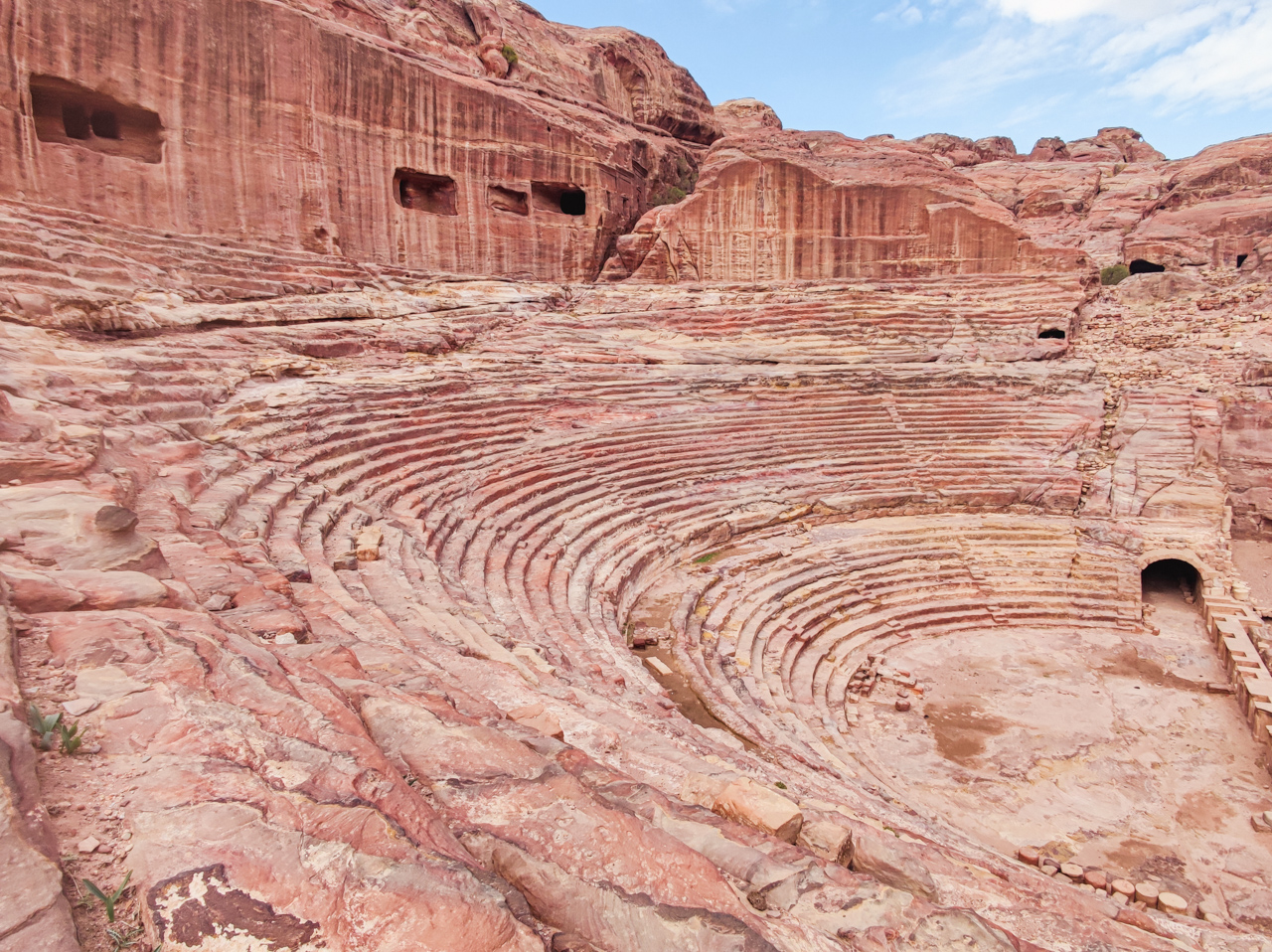 Après la redescende, Ahmed nous propose de le rejoindre en fin de journée pour manger avec lui dans sa cave avec son ami avant d’aller à Pétra by Night. On nous avait déjà un bédouin qui nous avait fait une proposition similaire la veille mais le courant passe bien avec eux, on s’entend très bien alors on accepte. On se donne rendez vous vers les tombeaux royaux puis on continue notre chemin vers l’amphithéâtre romain.