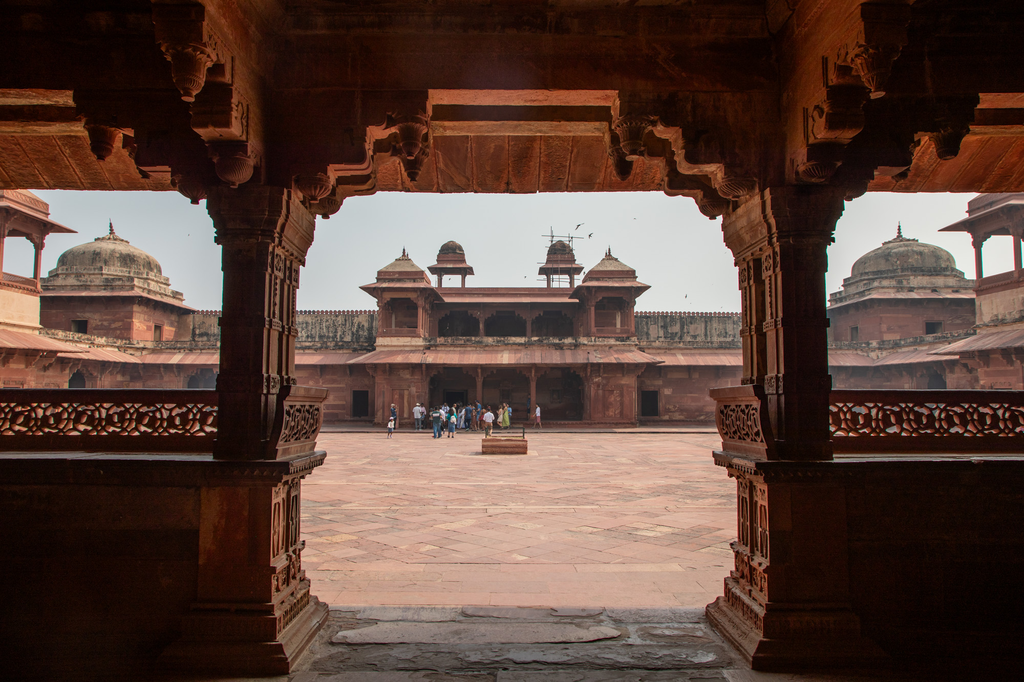 Notre chauffeur nous attend le matin devant notre hotel d’Agra, et on part pour notre première étape pour notre journée ensemble, la ville impériale de Fatehpur Sikri qui se trouve à une première heure de route depuis Agra. On roule jusqu’à un parking à l’intérieur des anciennes murailles de la ville démolies. On prend un guide qui va nous accompagner au sein du complexe qui est plutôt grand.