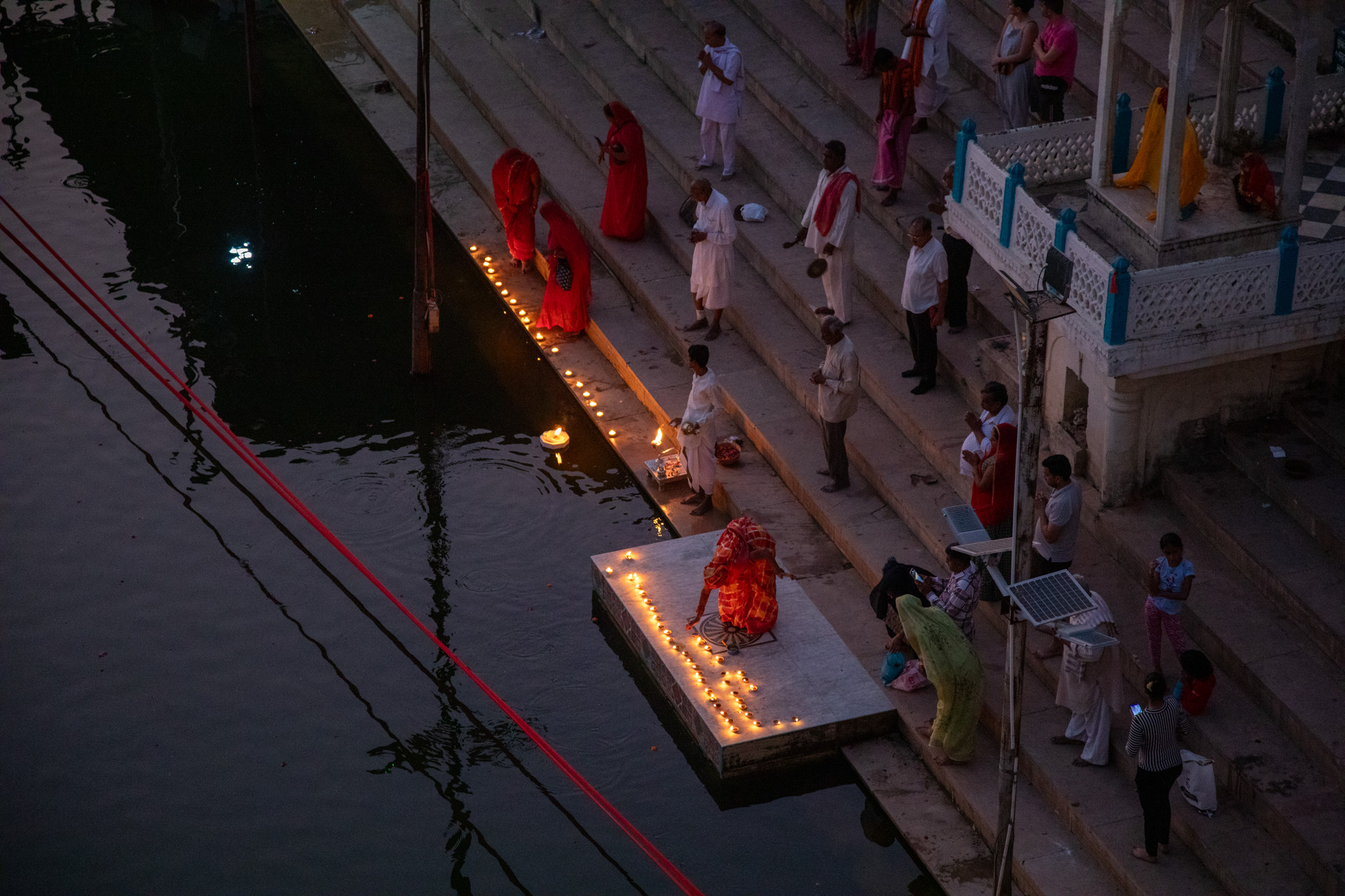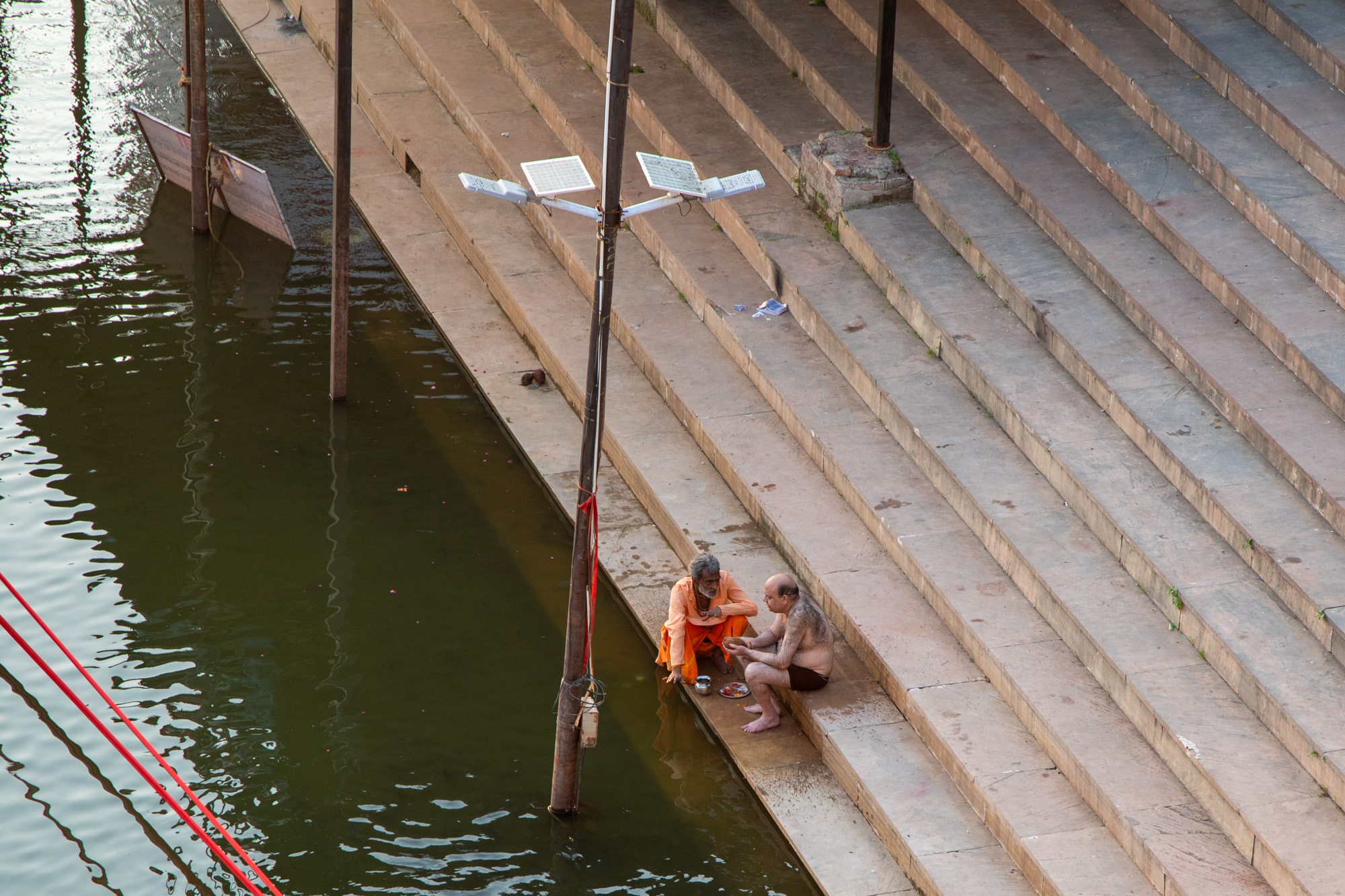 Le matin est tout aussi magique depuis notre chambre qui donne sur les ghats. Le soleil se lève doucement et le passage des pèlerins vient rythmer ce début de journée calme.