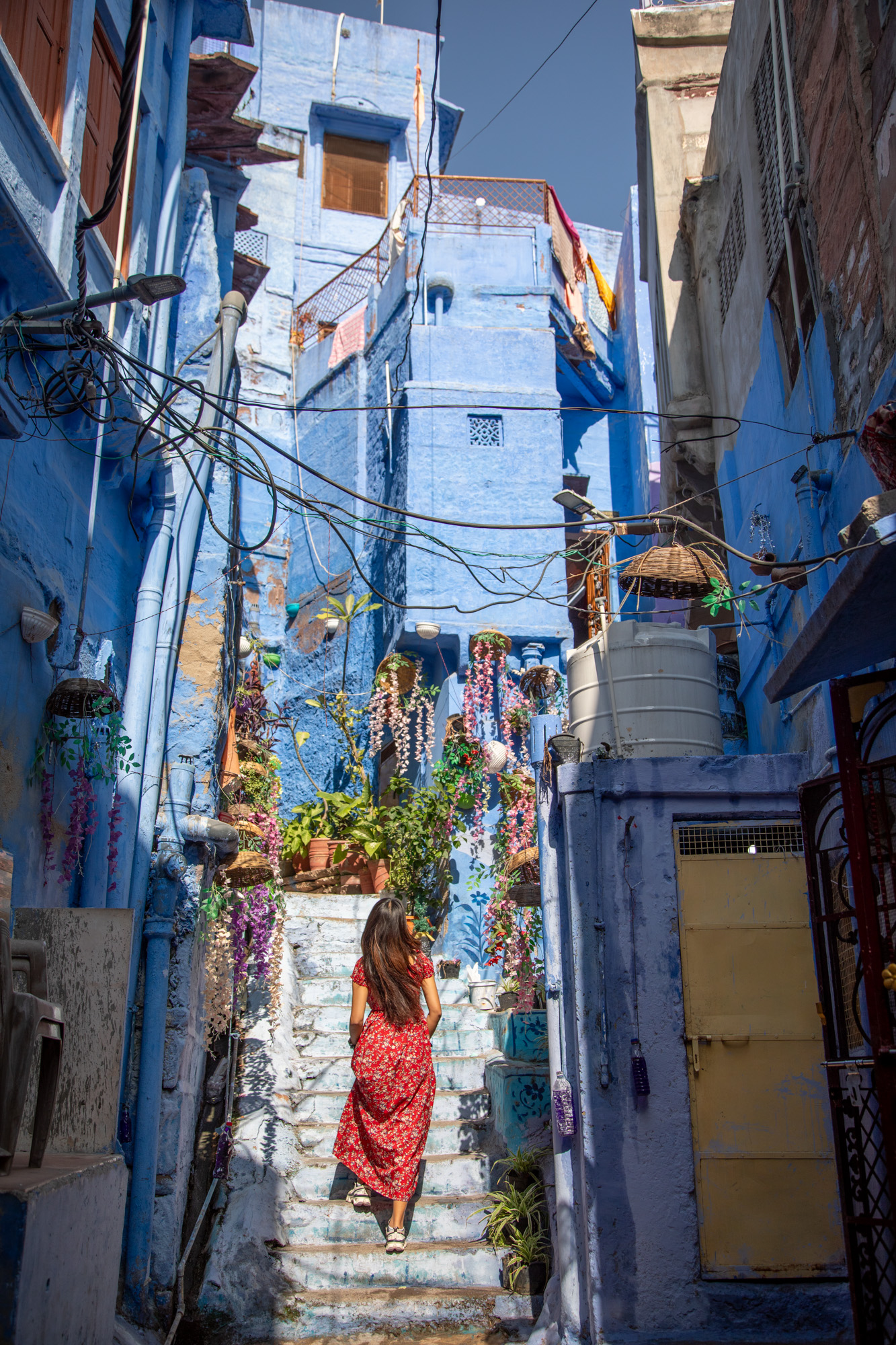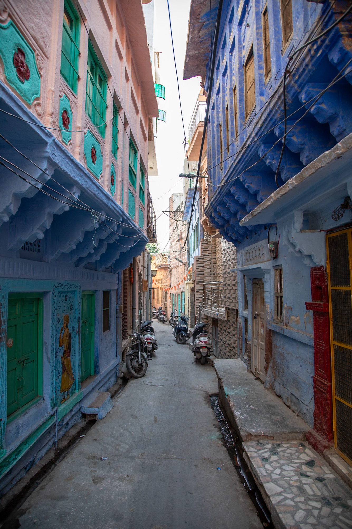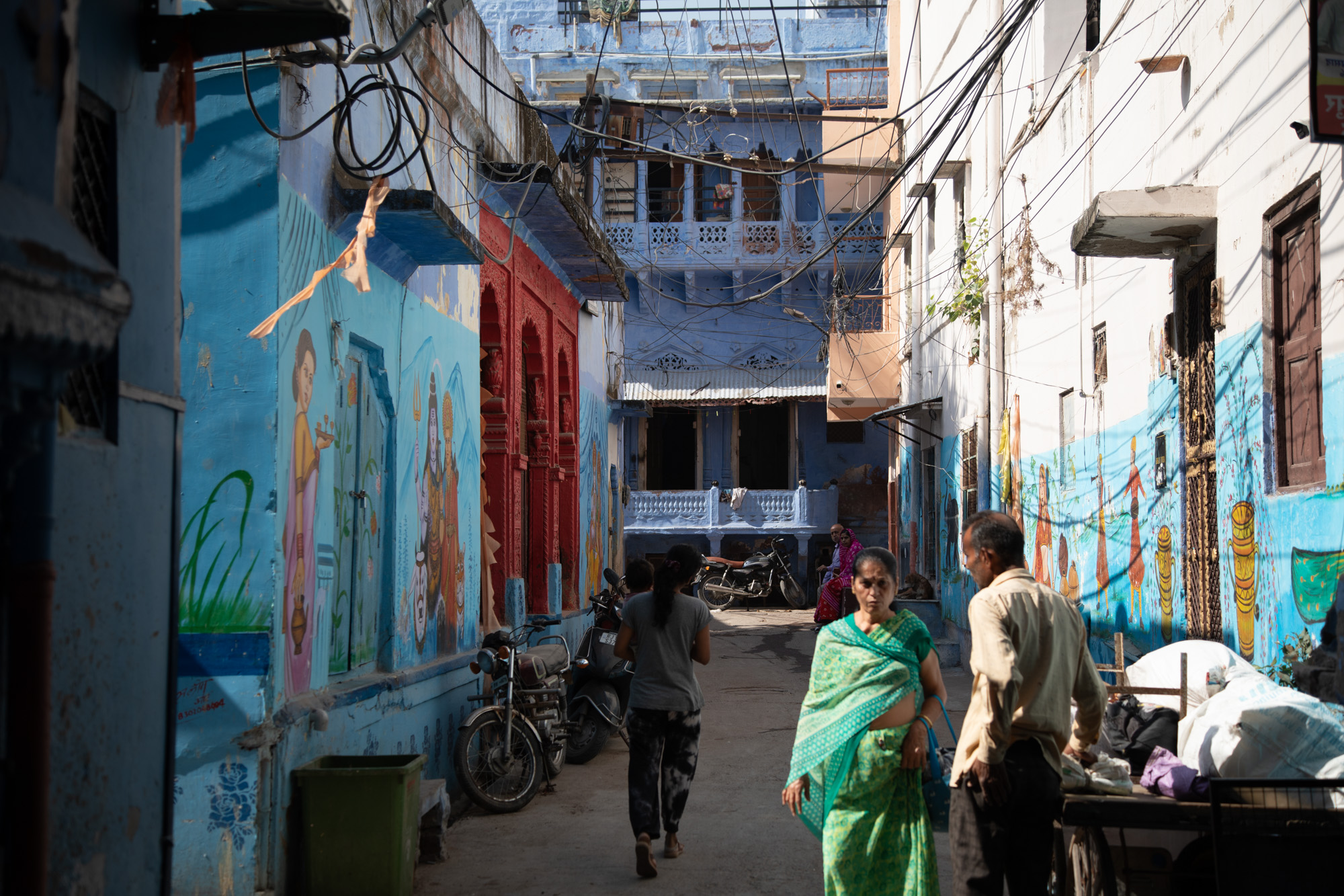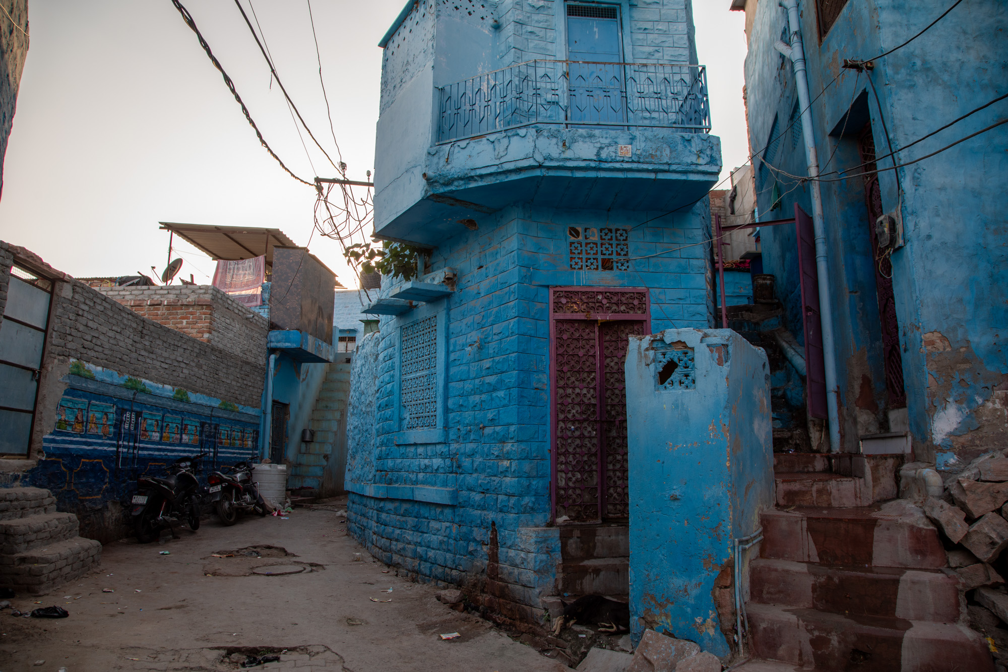 La vieille ville de Jodhpur a vraiment des airs de ville du désert, comme dans un conte des mille et une nuits. Les ruelles sont étroites, les bâtiments très hauts, le soleil ne passe pas, il y a des odeurs, des chiens rodent, les motos nous frôlent, la mosquée fait les appels à la prière. Il y a déjà pas mal de boutiques pour les touristes mais on sent que le quartier a gardé encore son âme.