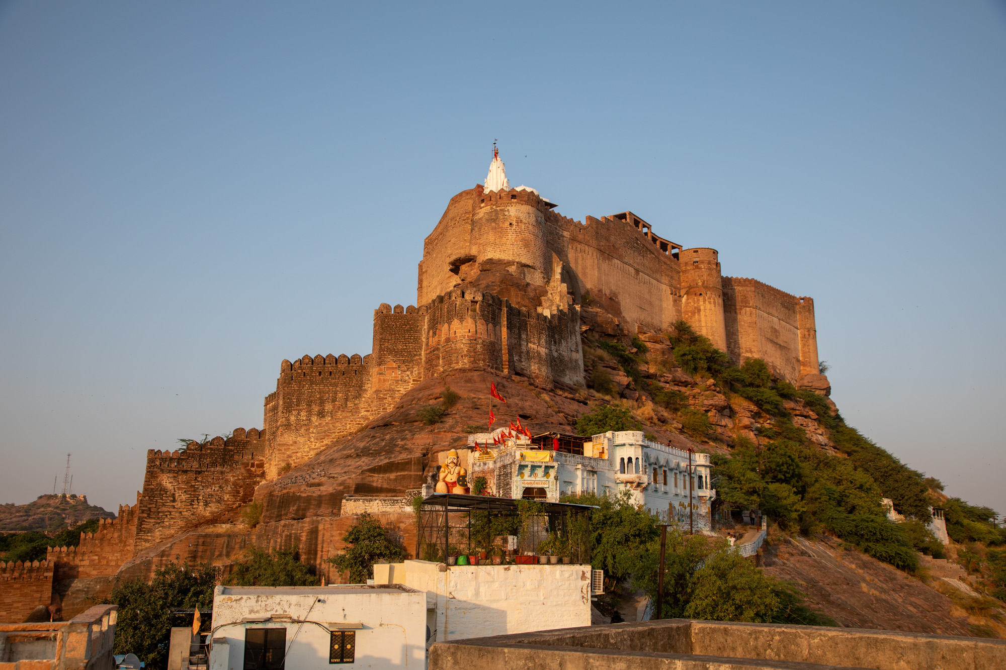 Arrivé sur ce piton rocheux, on est tout au bout de la muraille du fort qui domine la ville de Jodhpur et la ligne d'horizon depuis des siècles.