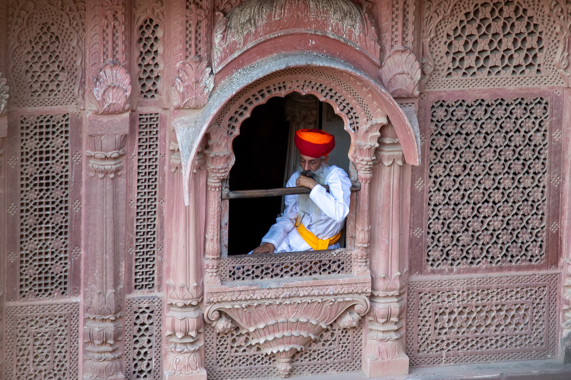 Le fort est encore ouvert un peu plus d’une heure, le soleil rasant rougit les pierres de Mehrangarh sublimant son architecture. Effectivement, l’heure est parfaire pour la visite.