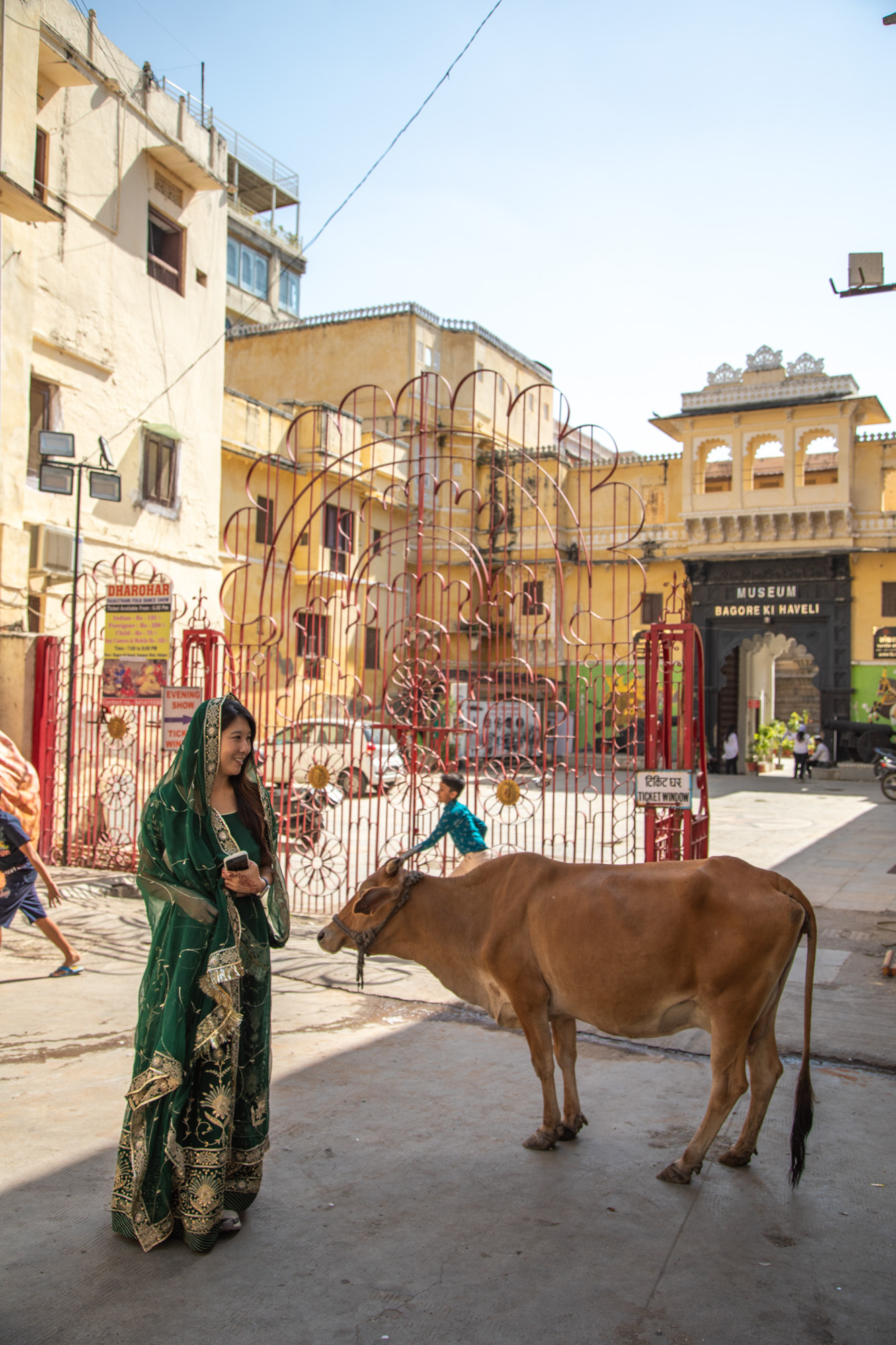 Pour le déjeuner, on s’installe dans un restaurant qui a une vue parfaite sur le temple de Jagdish. Amusant, on entend parler français à la table d’à côté. On engage la discussion et on fait la rencontre d’un adorable duo de voyageurs qui viennent de Paris et que l’on aura même la chance de revoir en France quelques mois plus tard. L’Inde a décidément cette capacité de rapprocher les gens, les rencontres semblent si faciles et si fluides, c’est vraiment incroyable et donne une saveur tellement agréable à ce séjour.