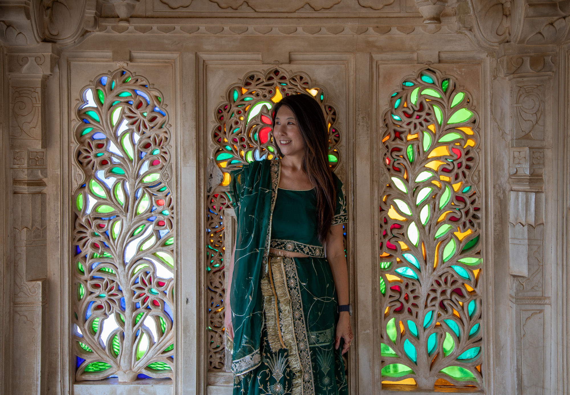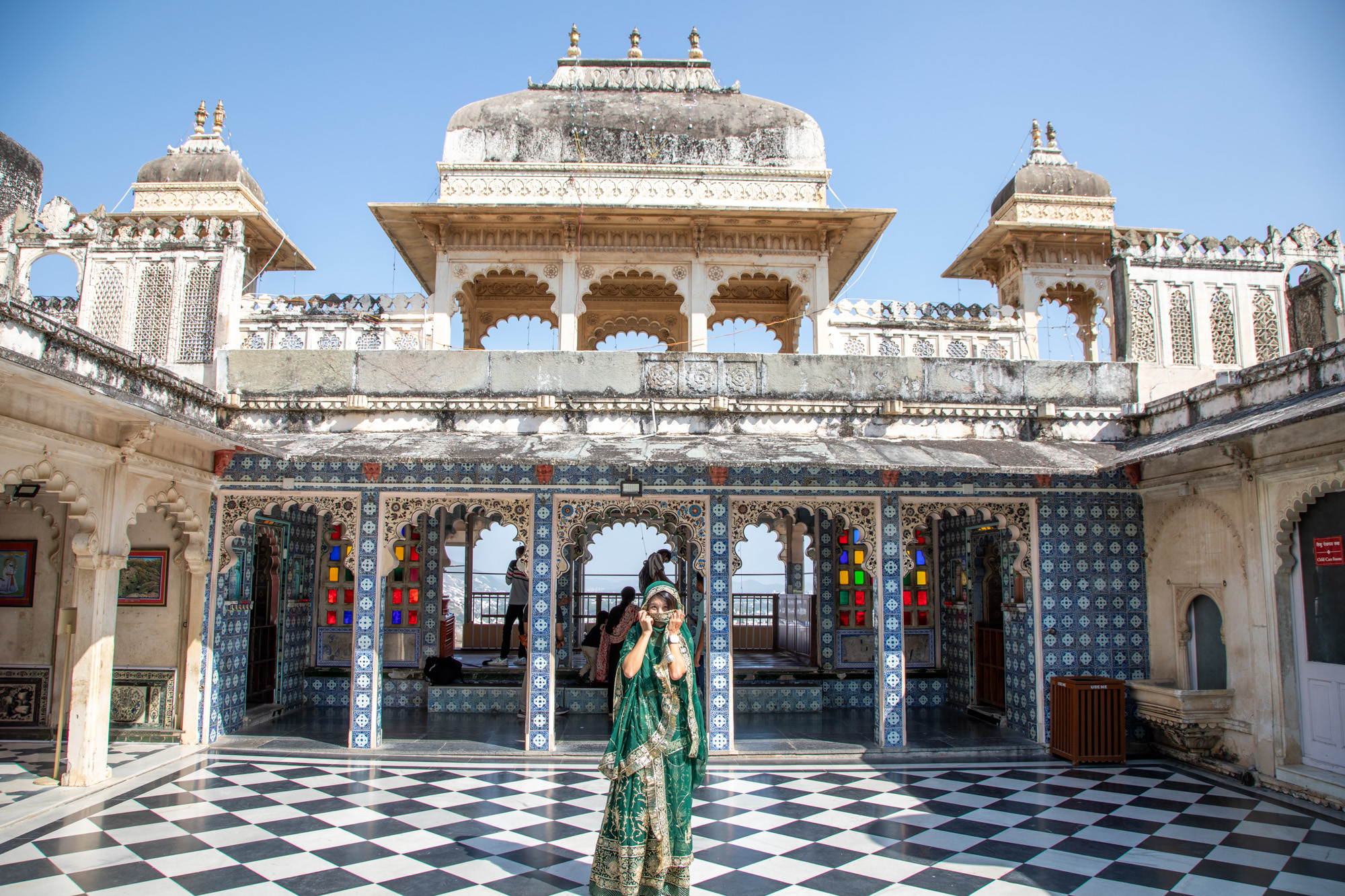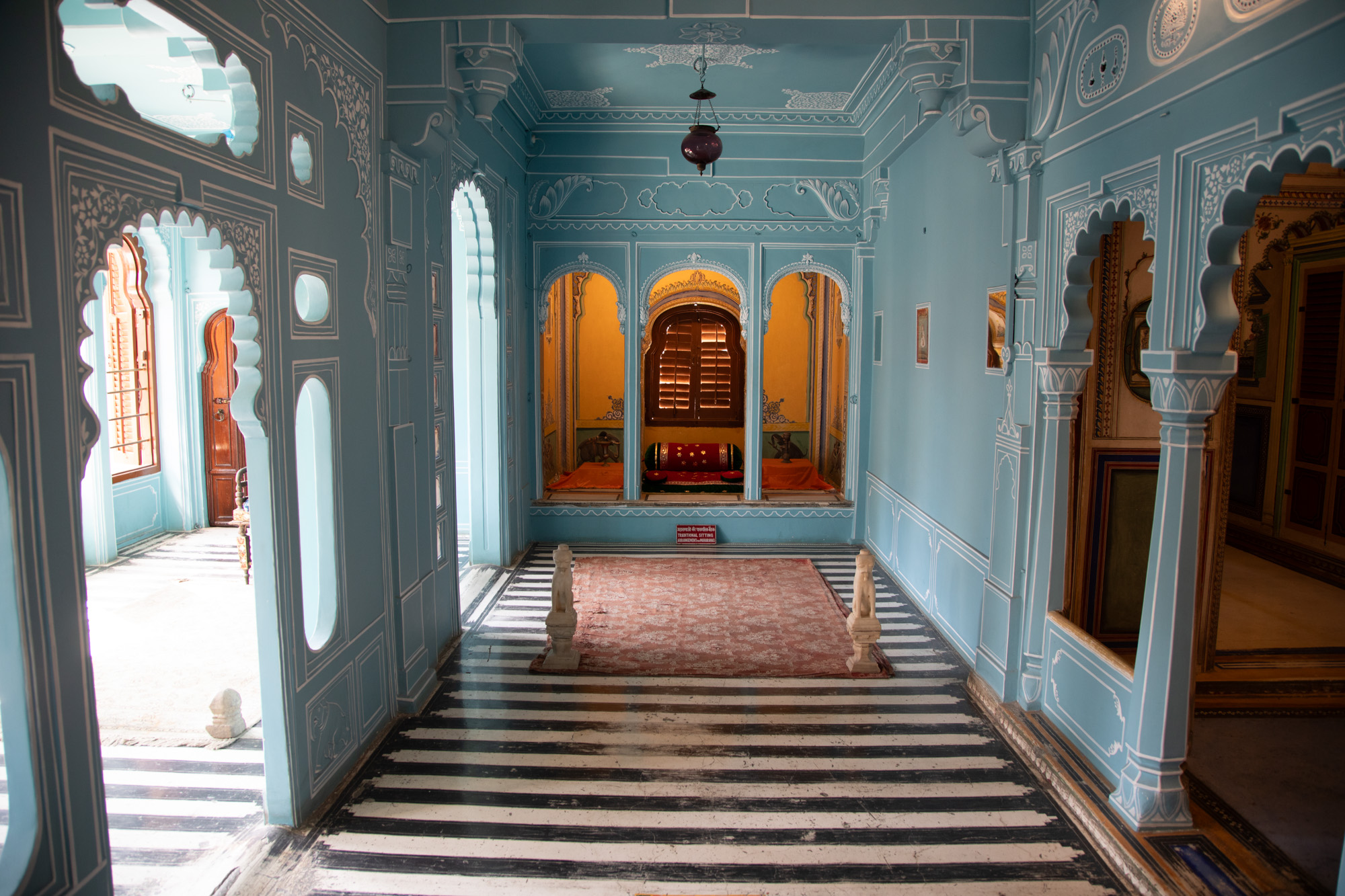 Les pièces du palais sont somptueuses, avec des thèmes et des couleurs différentes, c’est tellement photogénique que l'on s'est fait une belle collection de photos dans ce décor princesse indienne...