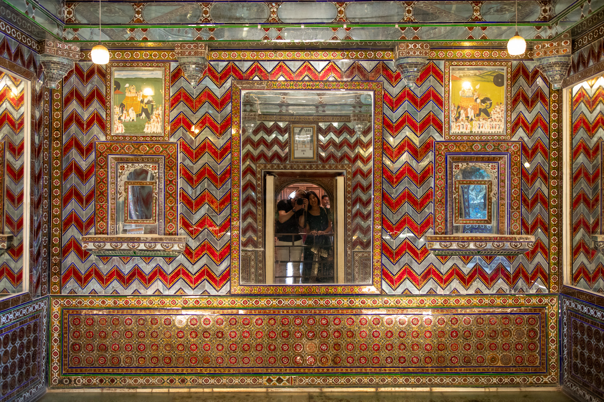 Les pièces sont décorées de fresques, de miroirs, de tellement de couleurs.
