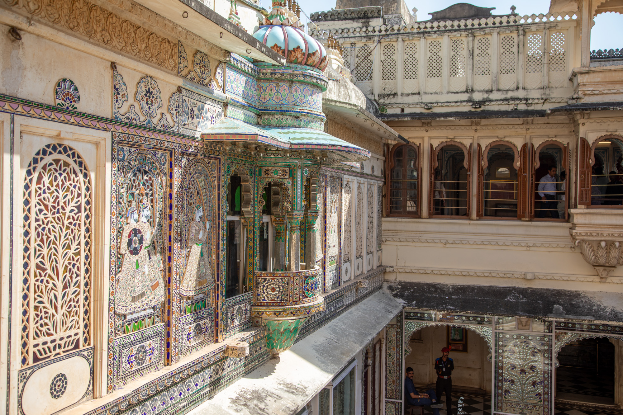 Les balcons des cours intérieures révèlent aussi une splendeur incroyable, des mosaïques, des gravures, des couleurs.