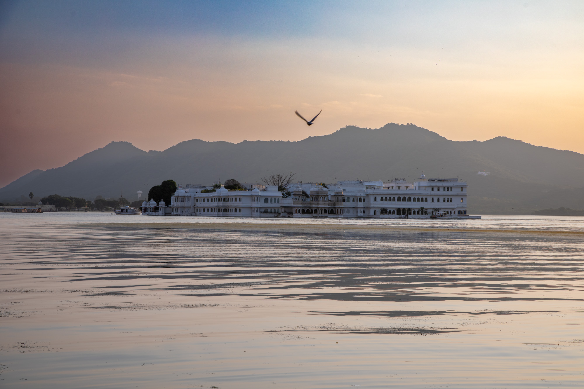 Au milieu du lac se trouve le fameux hotel Taj Palace qui a servi de décor au film de James Bond Octopussy, un lieu mythique du cinéma.