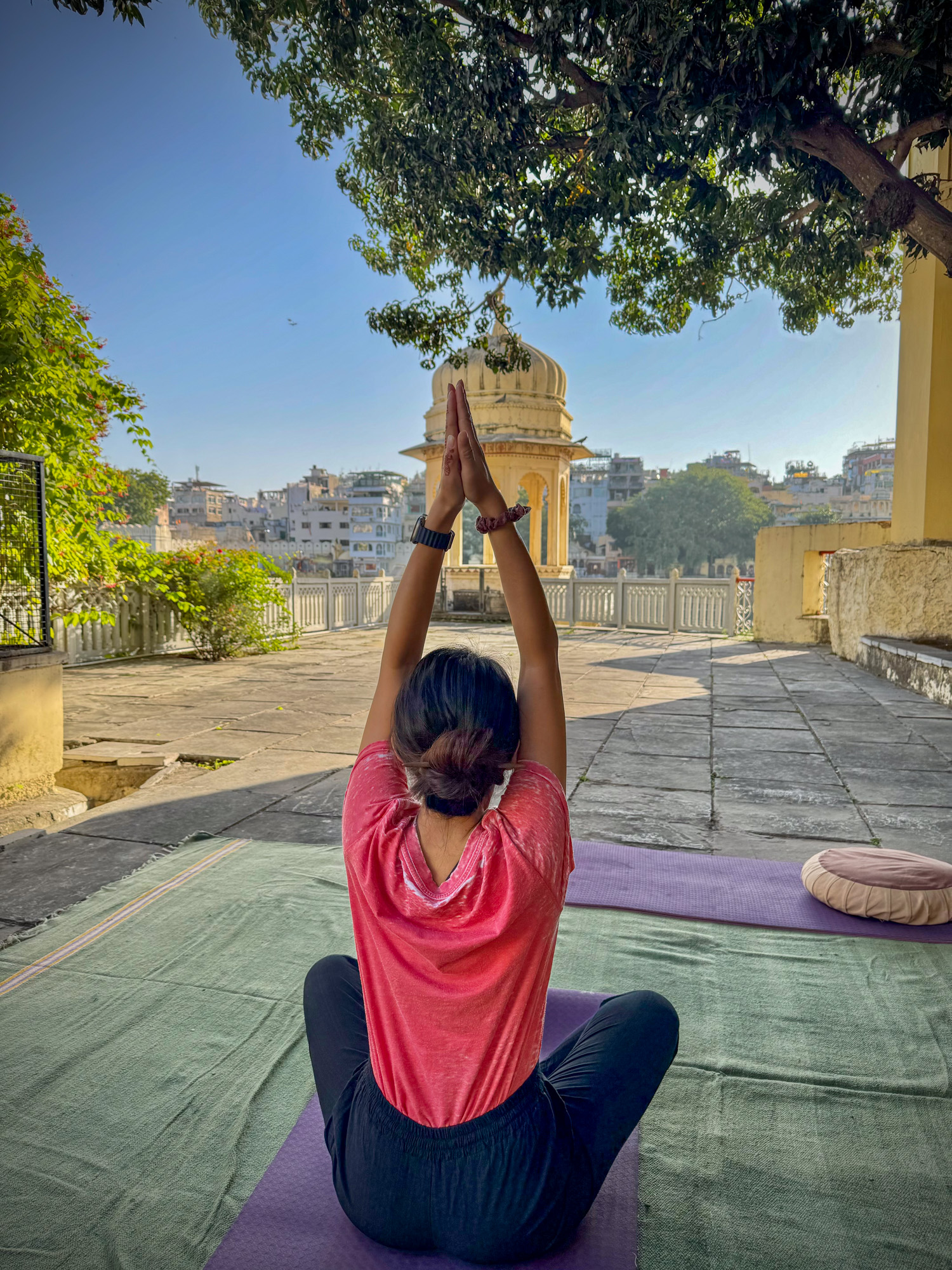 La ville d’Udaipur a une atmosphère très agréable avec un climat bien plus supportable que Jodhpur, on prend un plaisir à parcourir les rues, prendre un café et regarder la vie qui passe. Marcher sur les ghats. La journée démarre par une séance de yoga dans la cour d’un temple de bon matin. Puis s’installer dans un petit café pour nourrir le corps. C’est là que l’on rencontre deux filles des Philippines qui sont tombées amoureuses de la ville et qui ont prolongé leur séjour ici.