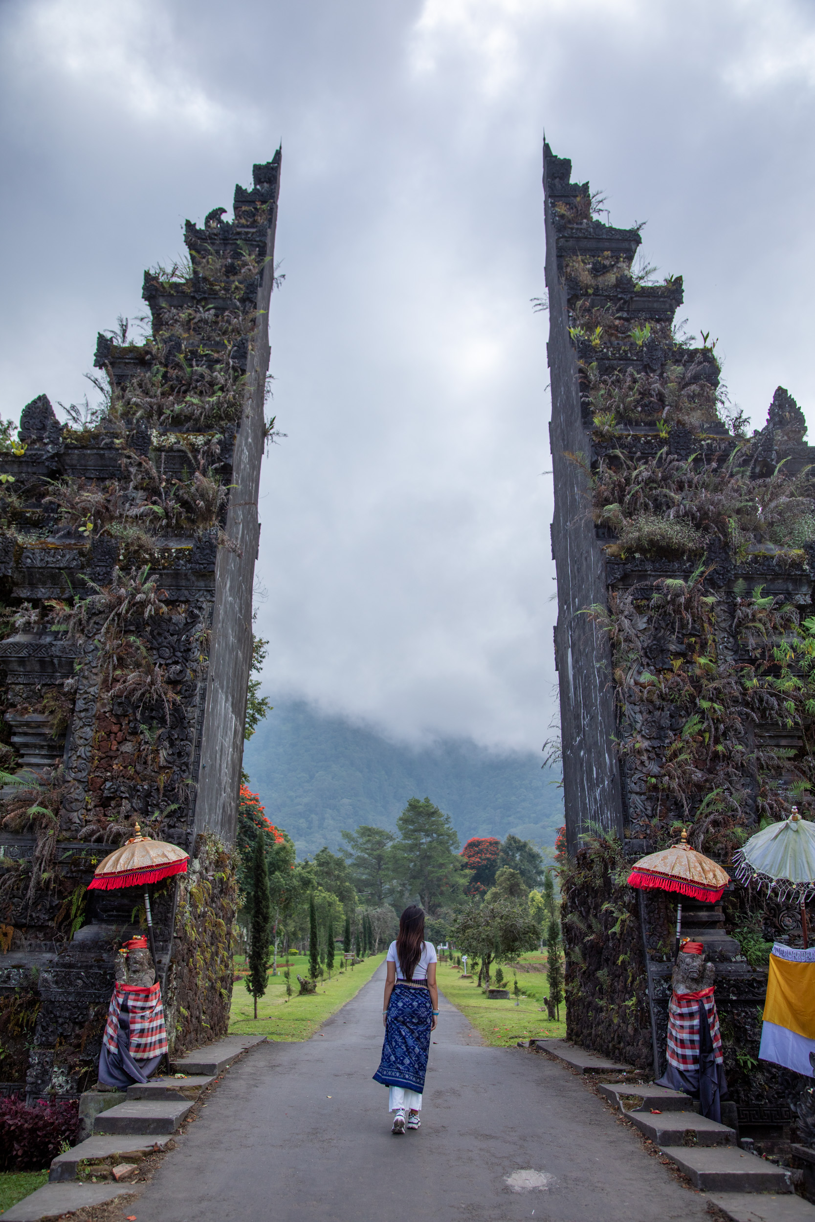 Après cette étape dans le temple le plus connu de Bali, on rejoint en scooter à quelques minutes un autre endroit très connu. Il s’agit étonnamment de la porte d’entrée du golf de Bali Handara. Le design de cette immense porte s’est inspiré de la culture locale et c’est devenu un endroit très prisée pour faire des photos. Il faut même payer pour entrer sur le site et prendre un ticket pour que chacun puisse prendre sa photo chacun son tour.
