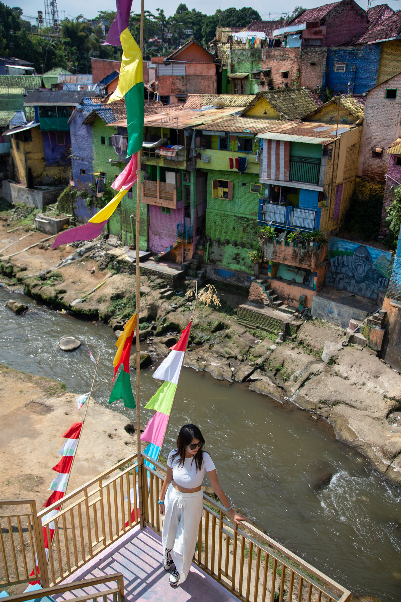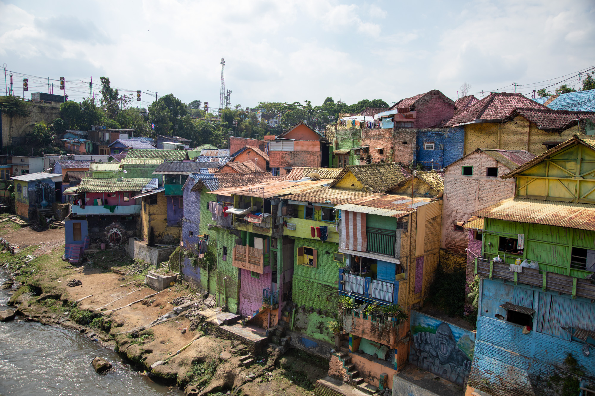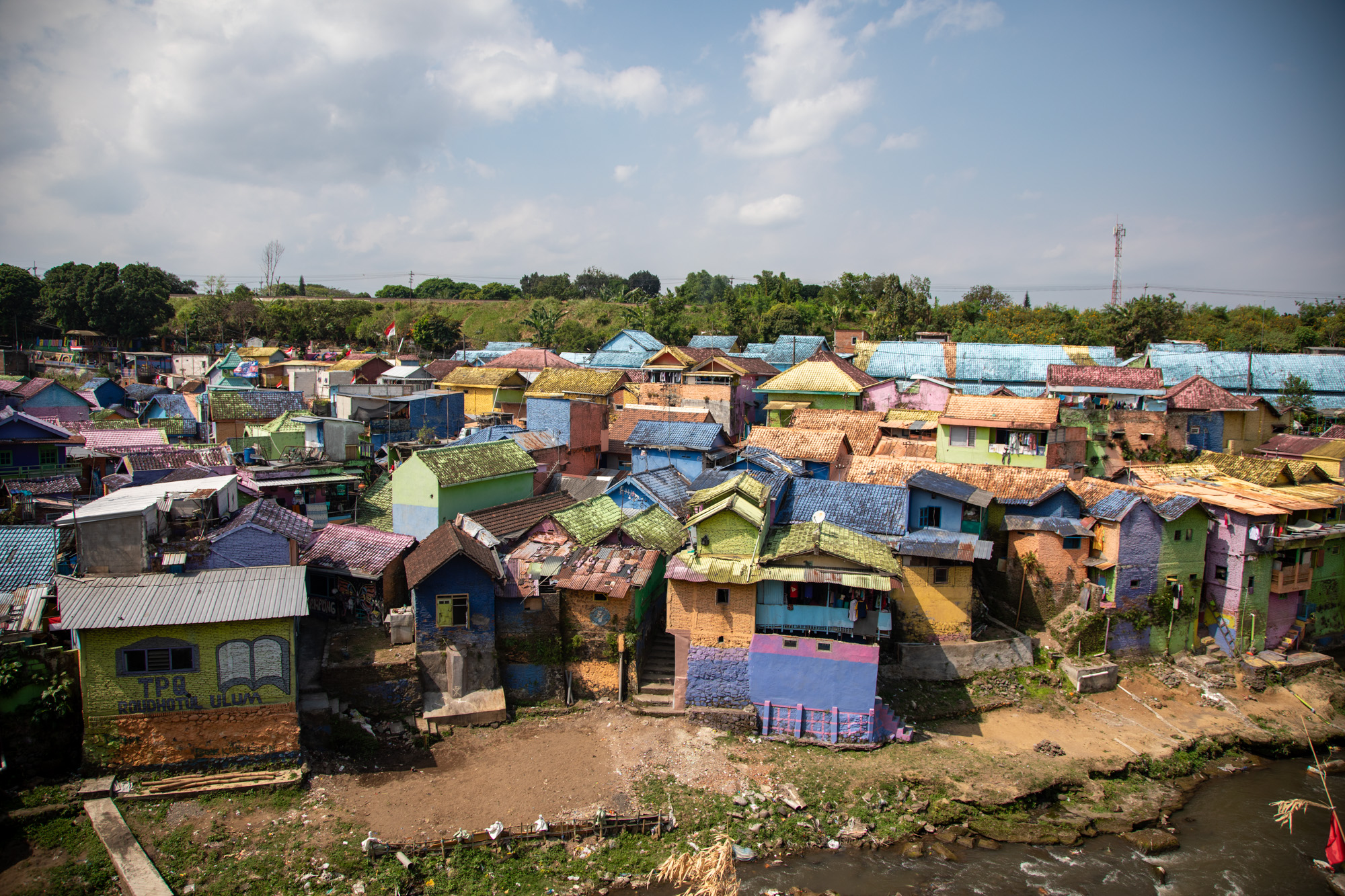 On s’installe dans une petite échoppe qui donne une vue plongeante sur Jodipan. Il y a un petit banc à l’ombre, cela permet de dépenser un peu d’argent dans le quartier.