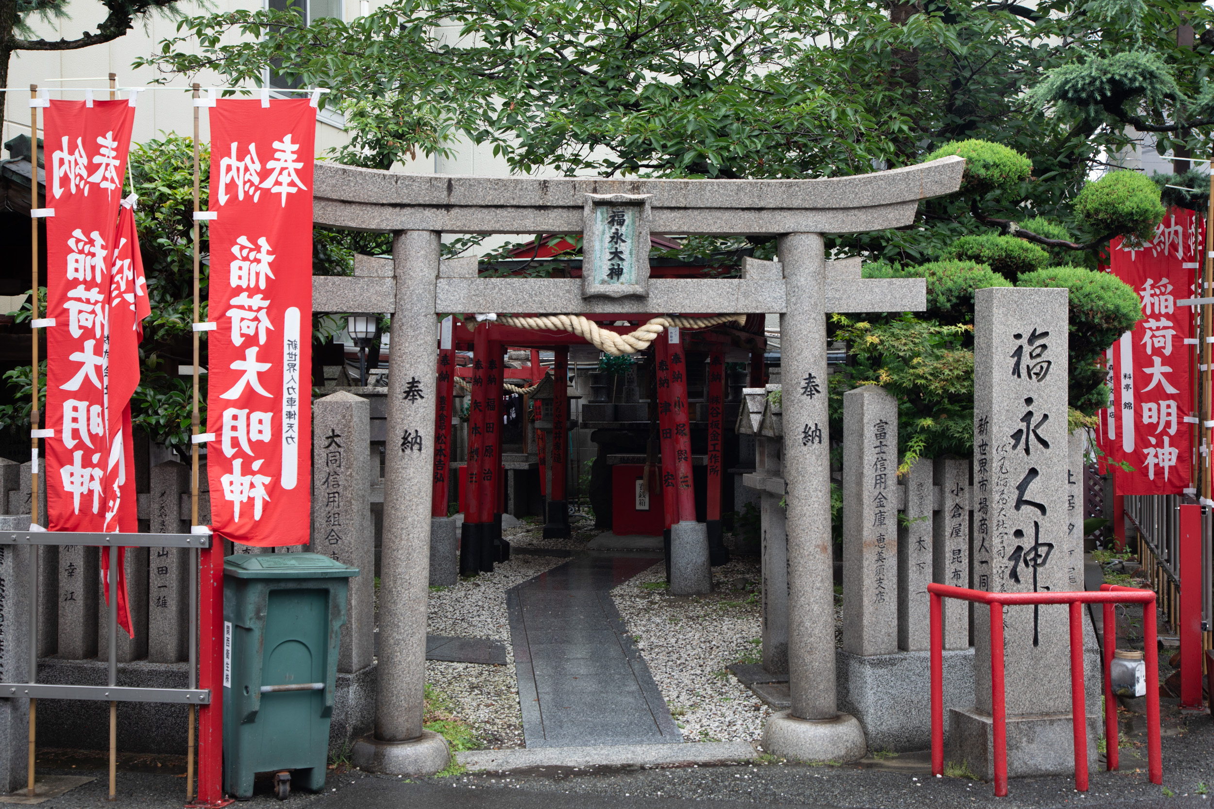 A côté de la tour, changement d’ambiance avec ce temple caché derrière un tori.