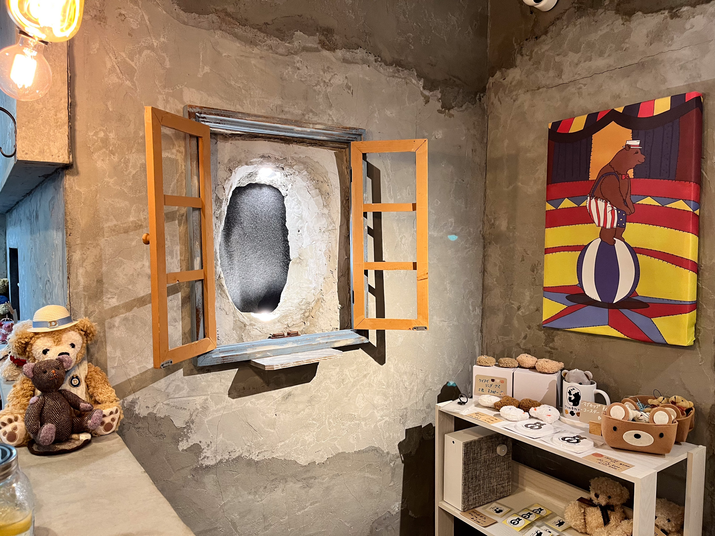 C’est un concept vraiment original, on passe la commande au travers d’un trou dans le mur, il y a un rideau on ne peut pas voir qui se trouve de l’autre côté, puis quelques minutes plus tard, une main toute velue qui ressemble à une patte d’ours nous tend le café par le trou dans le mur.